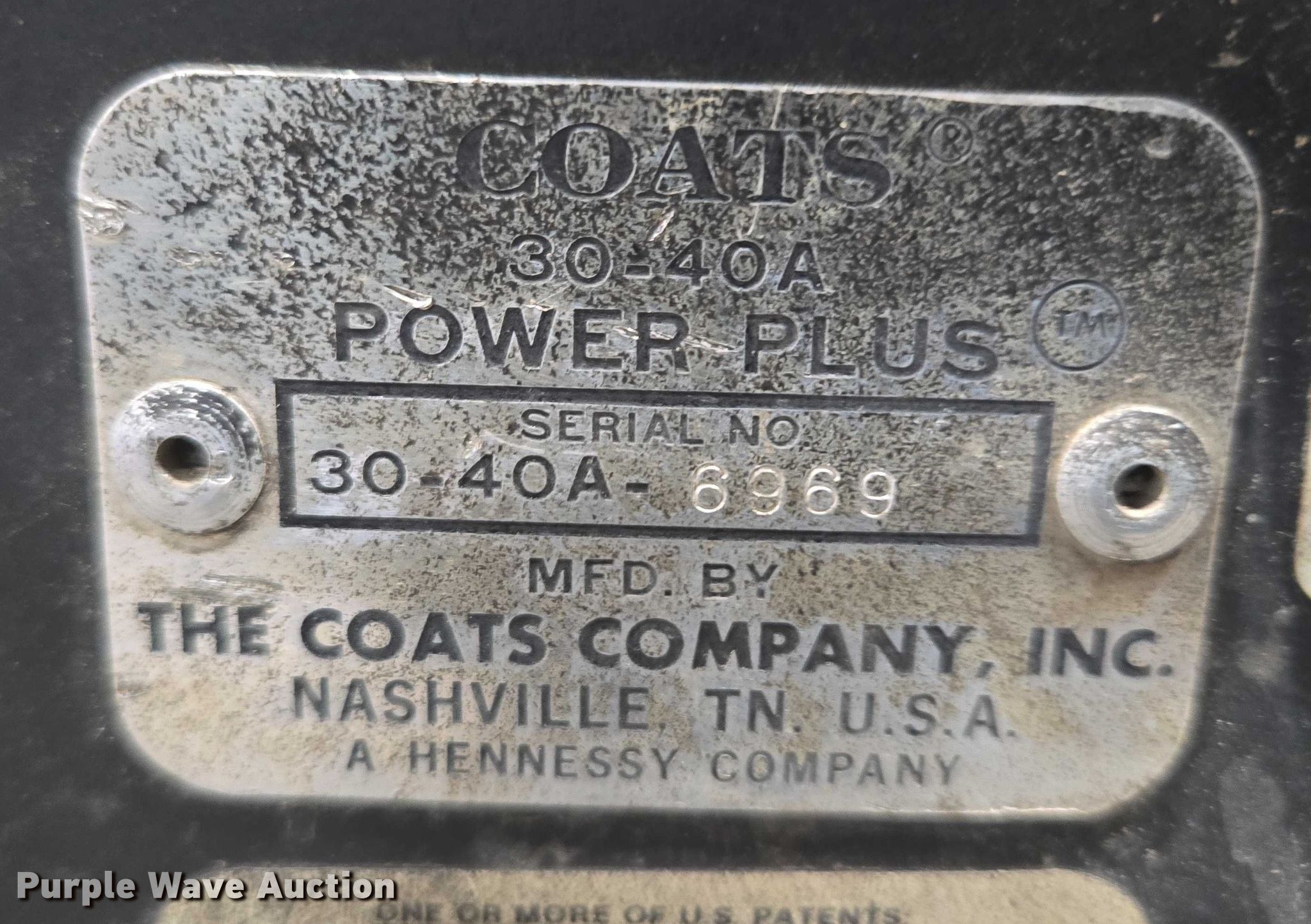 Purple Wave is selling a used Tools in Wyoming. This item is a Coats 30-40A Power Plus tire machine with the following: Serial: 30-40A -6969