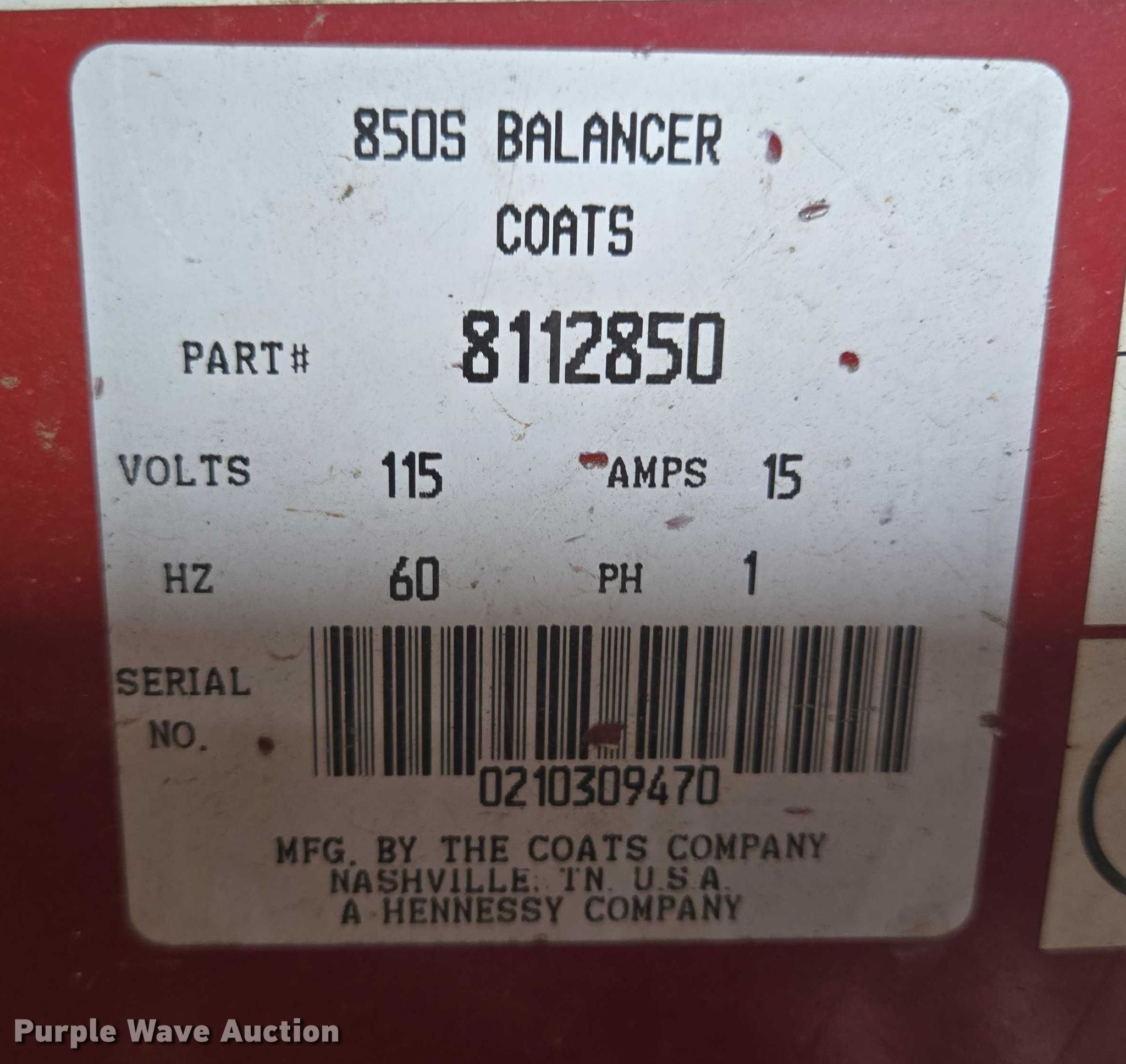 Purple Wave is selling a used Tools in Wyoming. This item is a Coats 850 Solid State wheel balancer with the following: Serial: 0210308470