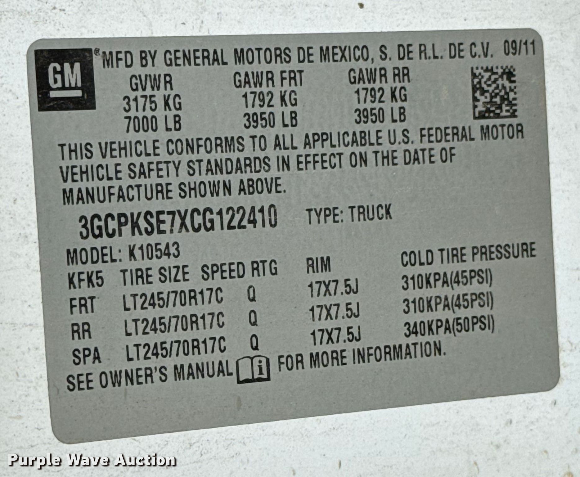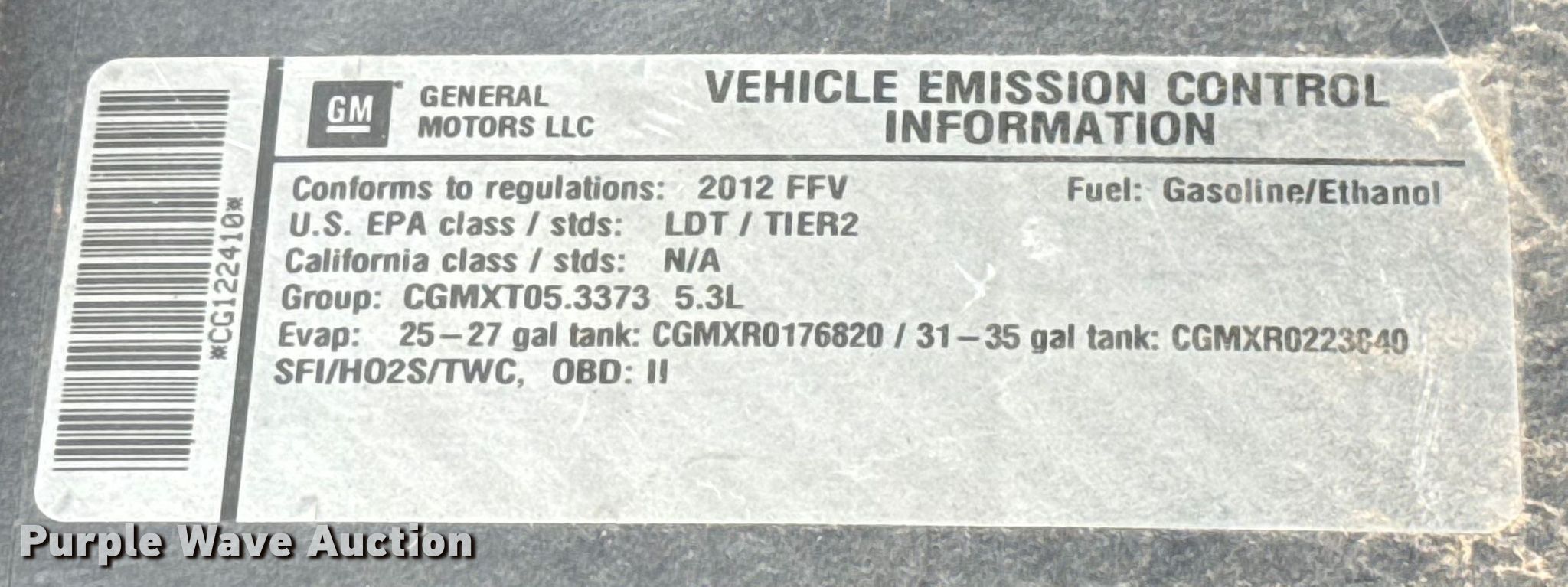 Purple Wave is selling a used 1/2 Ton Pickup or Van in Oklahoma. This item is a 2012 Chevrolet Silverado 1500 Crew Cab pickup truck with the following: Miles: 114,513 on odometer, VIN: 3GCPKSE7XCG122410