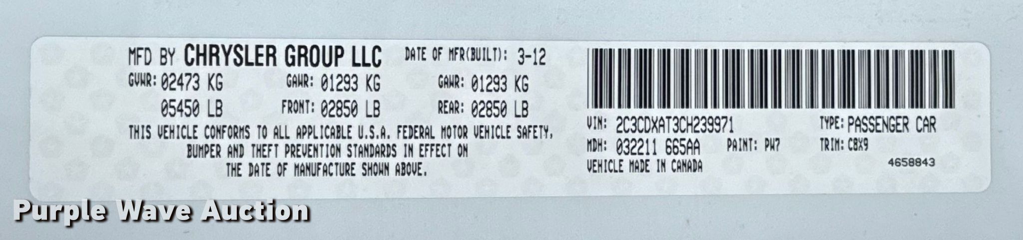 Purple Wave is selling a used Passenger Vehicle in Oklahoma. This item is a 2012 Dodge Charger Police with the following: Miles: 108,660 on odometer, VIN: 2C3CDXAT3CH239971