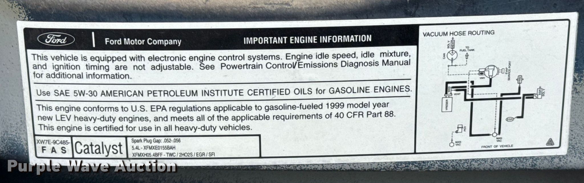 1999 Ford E350 van. Miles: 138,714 on odometer, VIN: 1FBSS31L8XHB83466. Engine Displacement: 5.4L V8 SOHC, Cylinders: 8, Fuel type: Gas. Transmission Automatic. Interior AC, Heat, Cruise control. Tires Size: LT245/75R16. Notes Windshield chipped or cracked. Oklahoma title. Seller is a government entity who will be assigning and distributing the title. Please contact the seller for distribution questions. Shawnee Police Department. Shawnee, OK 74804