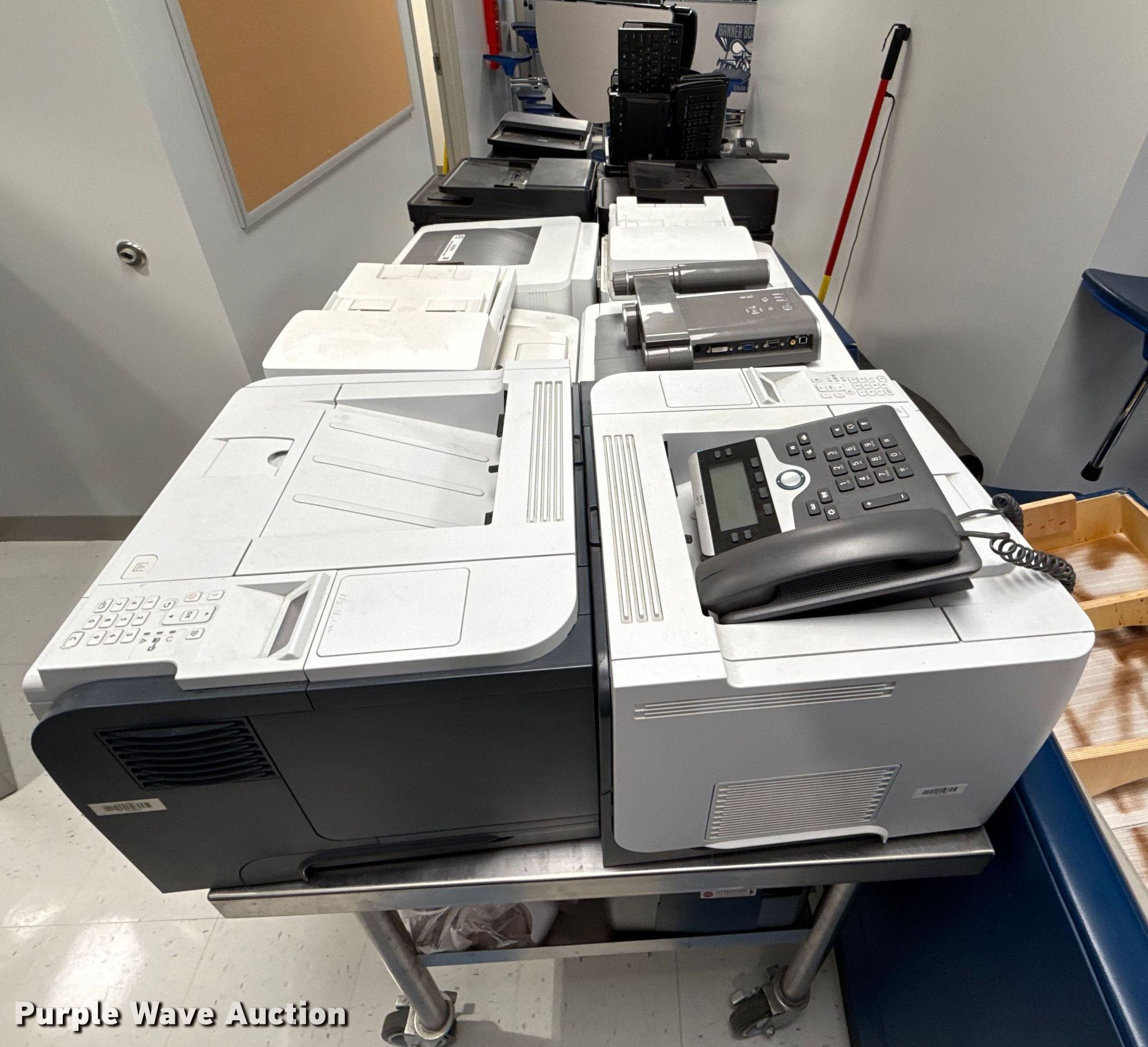 Purple Wave is selling a used Office Supplies and Equip. in Oklahoma. This item is a Electronics with the following: (11) printers, Approx. 30 MagOne walkie talkies, RFID card printer
