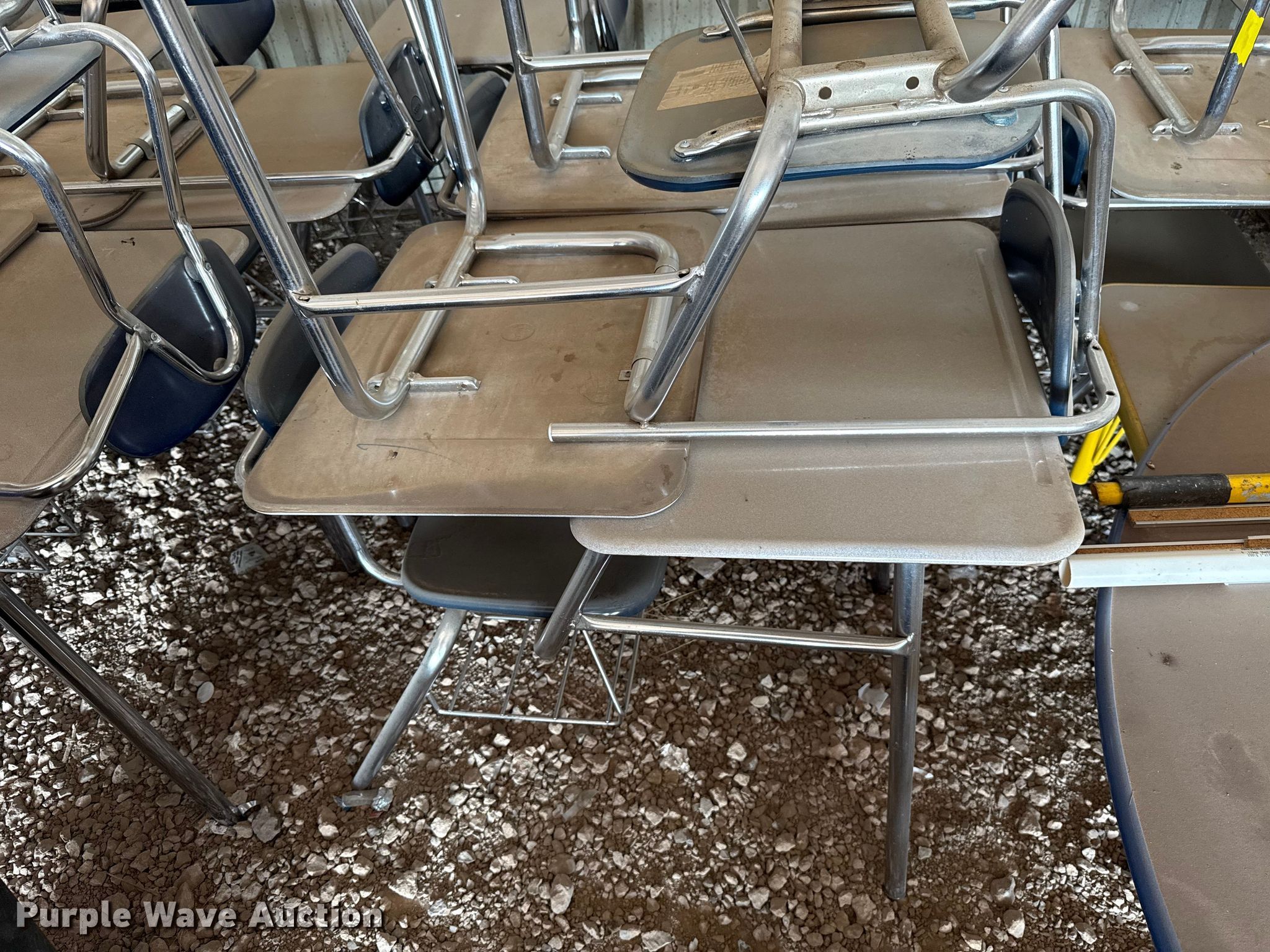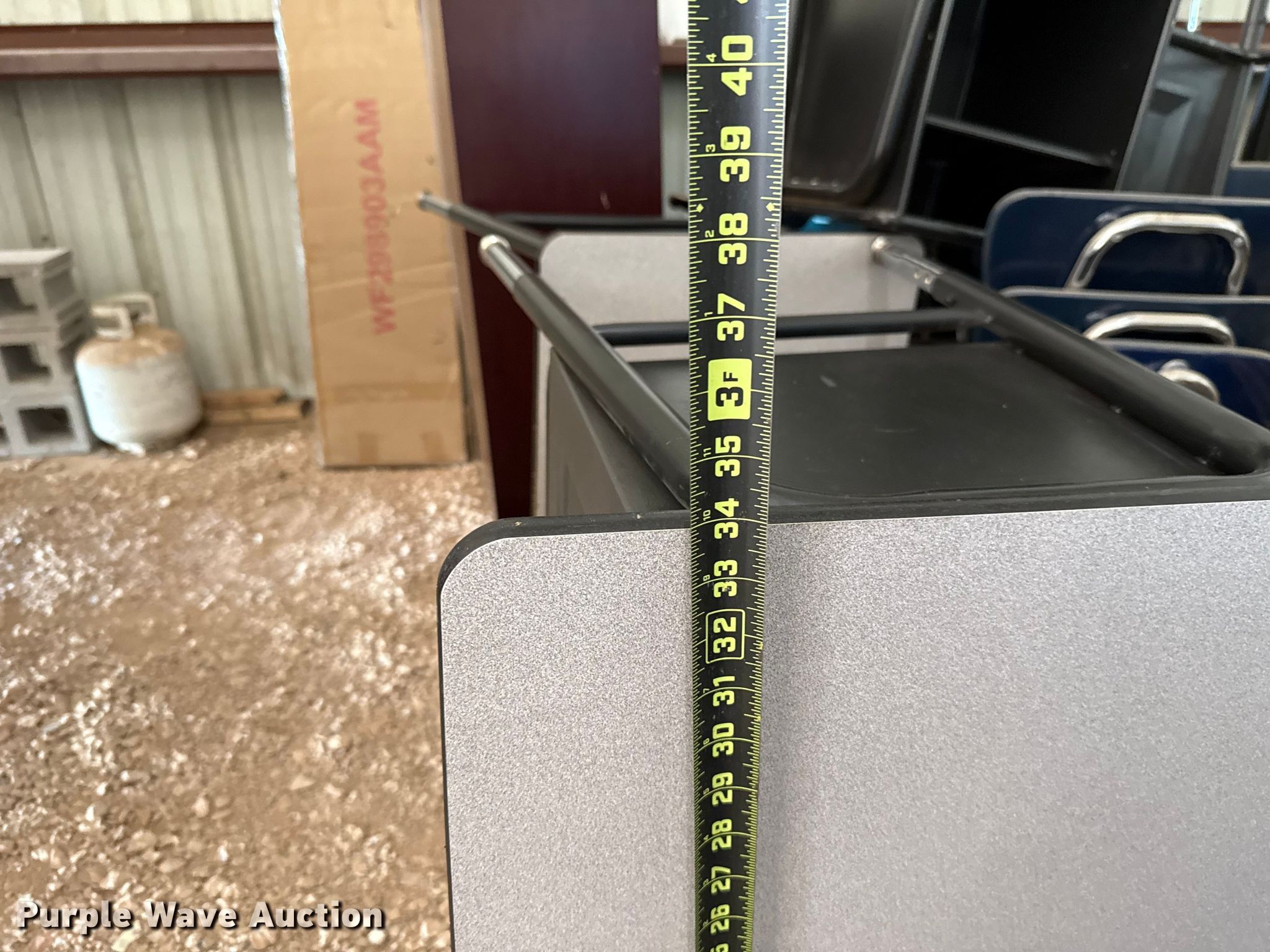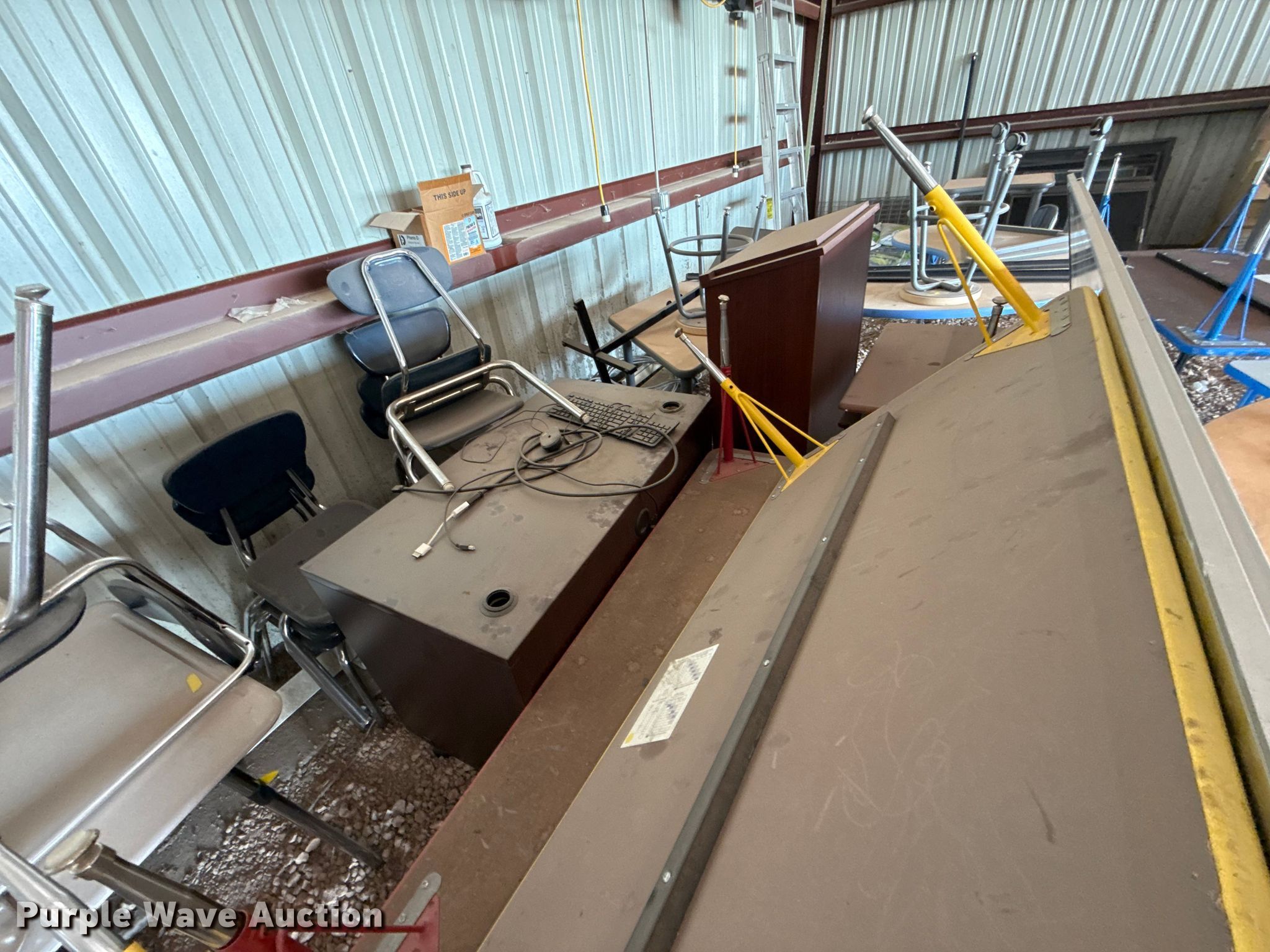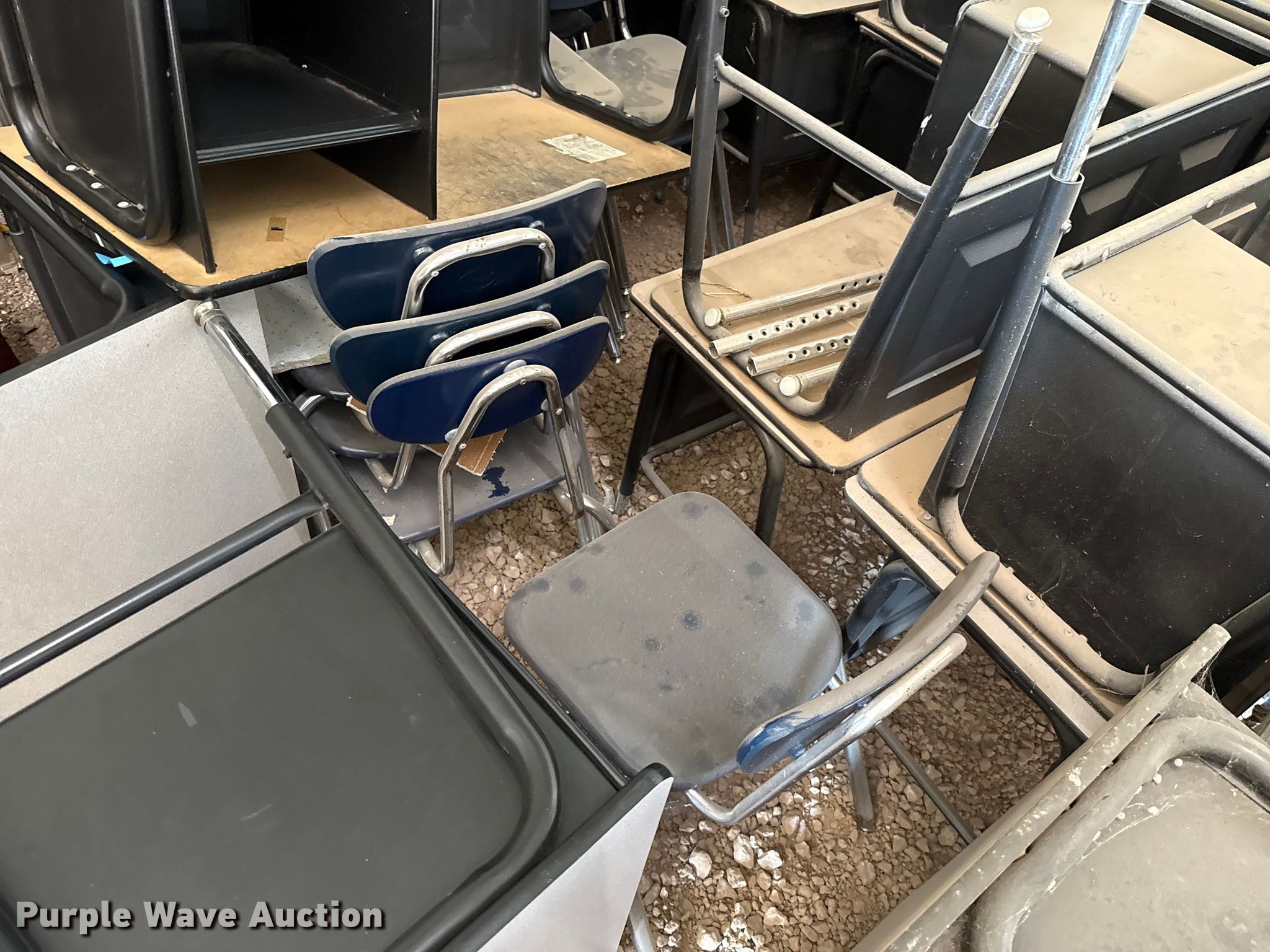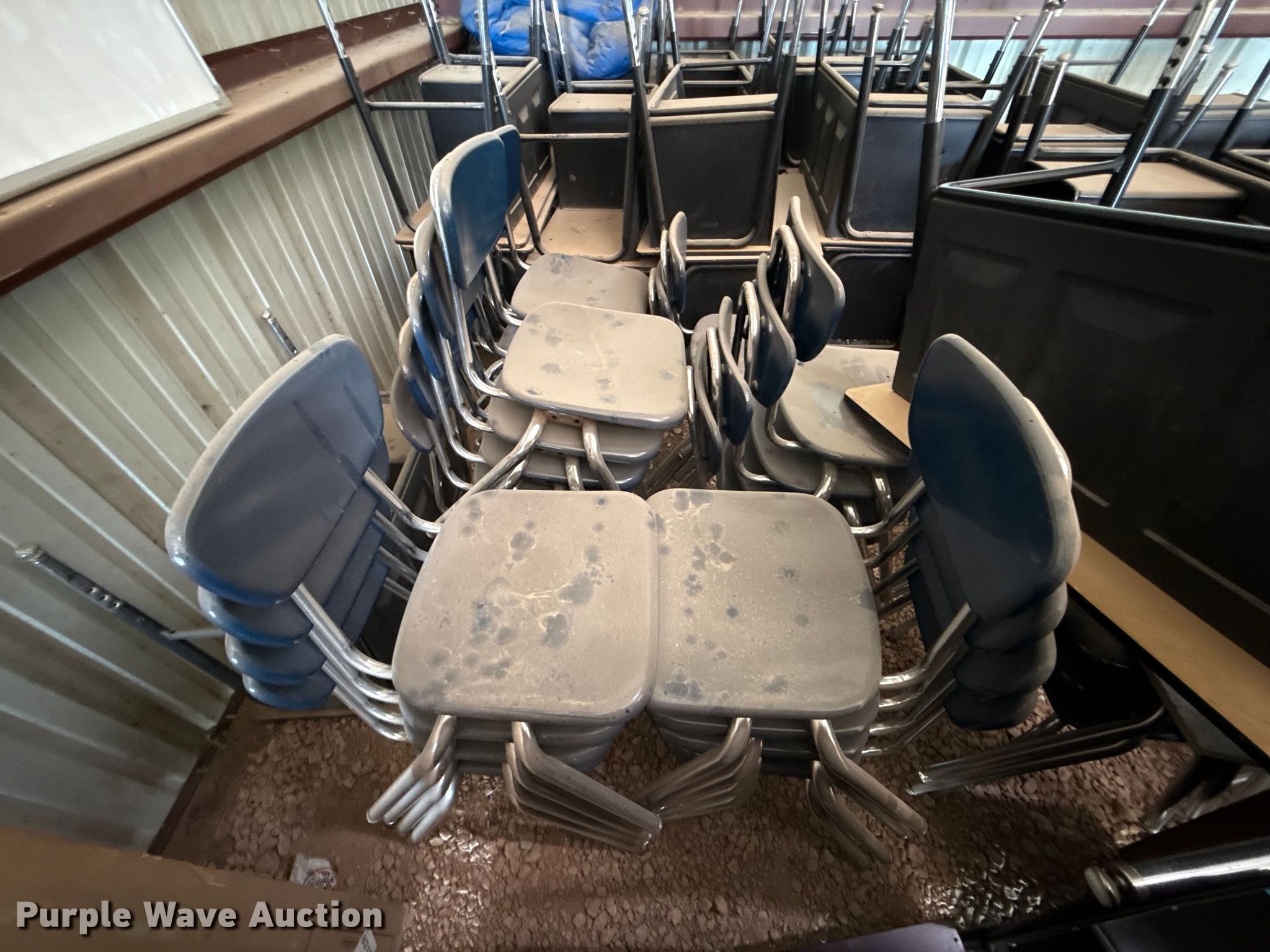 Purple Wave is selling a used Furniture in Oklahoma. This item is a Furniture with the following: Chairs: 50, Desks: 86, Filing cabinets: 1, Lockers: 9, Tables: 13, (5) trash cans, (2) dry erase boards, Cafeteria lunch bar, Janitorial supplies, Campbell Hausfeld air compressor, Unknown operating condition, Generac Speed Wash pressure washer, Unknown operating condition