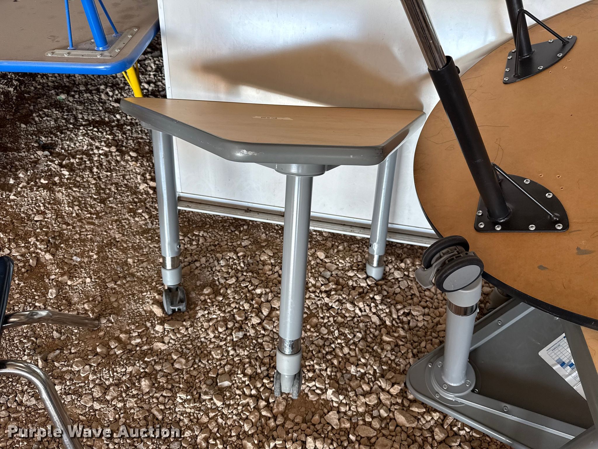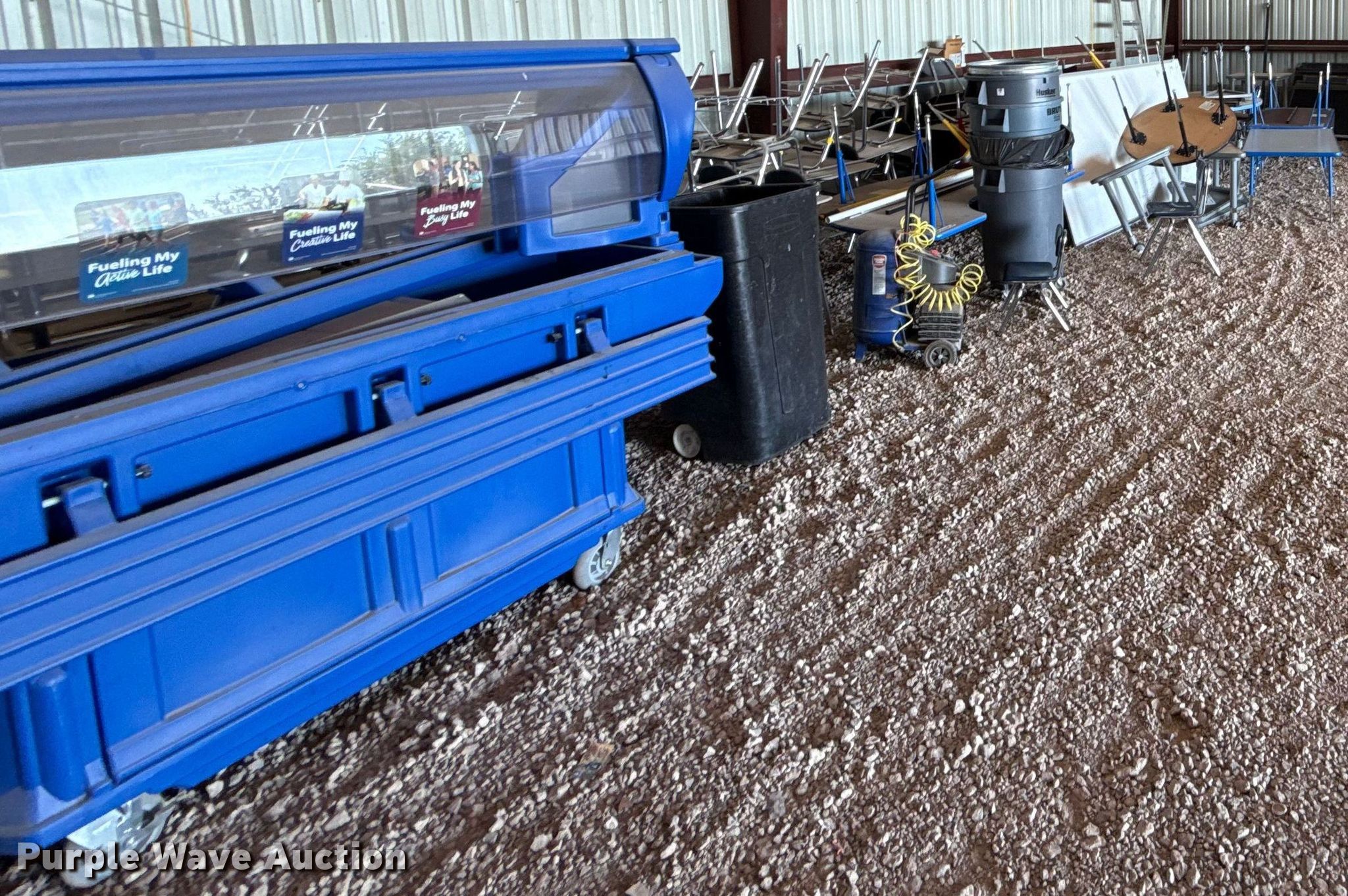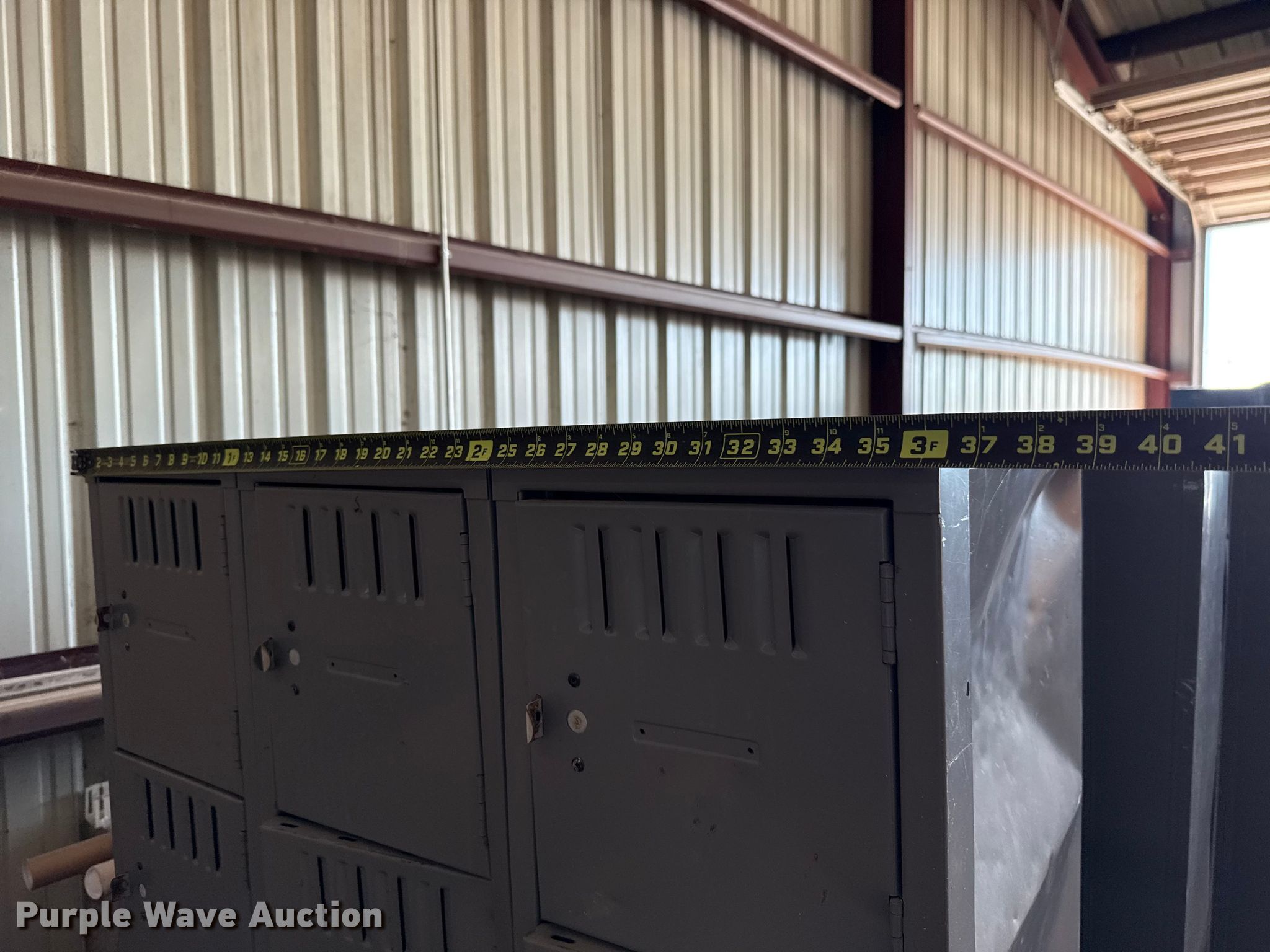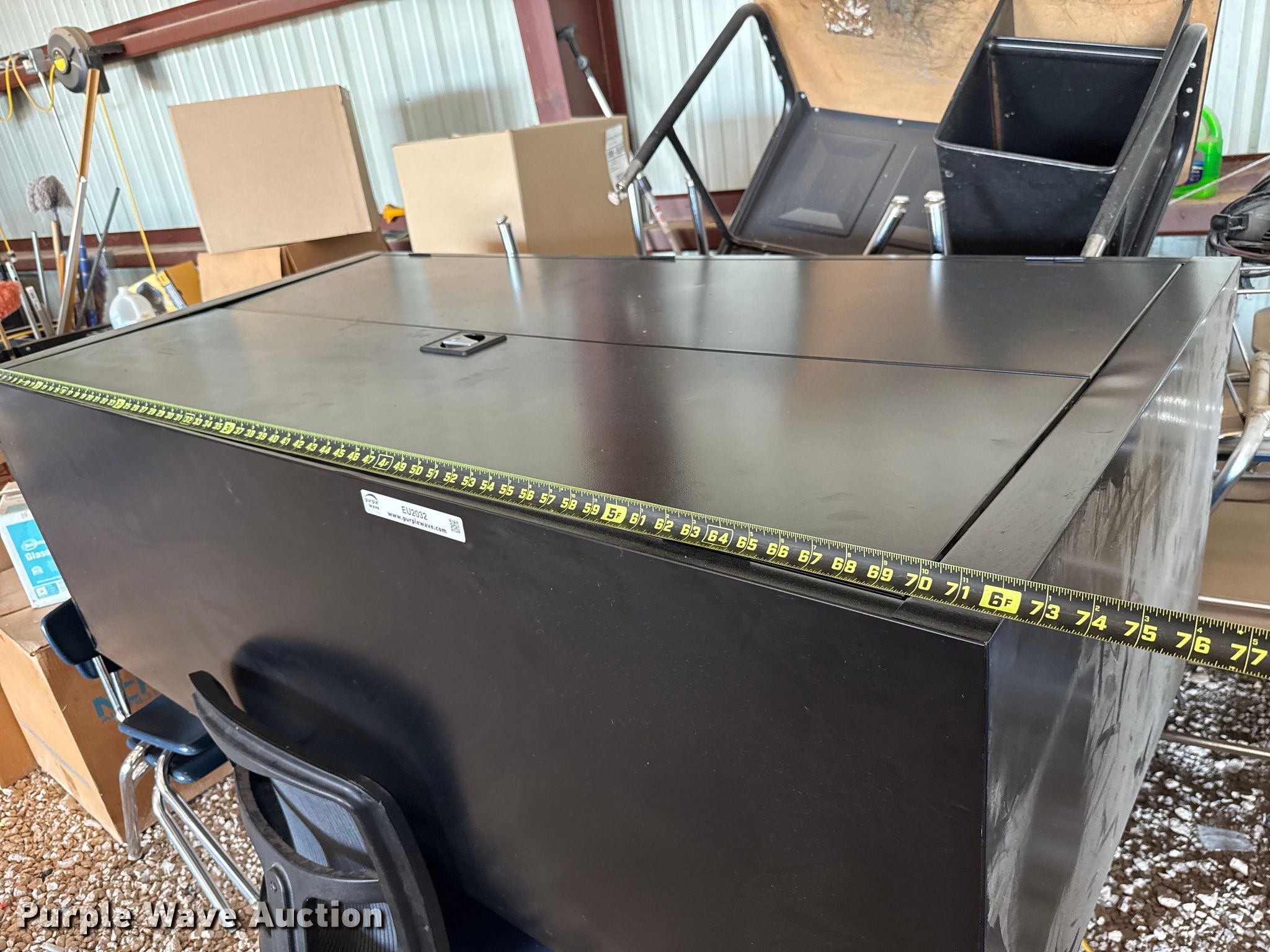 Purple Wave is selling a used Furniture in Oklahoma. This item is a Furniture with the following: Chairs: 50, Desks: 86, Filing cabinets: 1, Lockers: 9, Tables: 13, (5) trash cans, (2) dry erase boards, Cafeteria lunch bar, Janitorial supplies, Campbell Hausfeld air compressor, Unknown operating condition, Generac Speed Wash pressure washer, Unknown operating condition