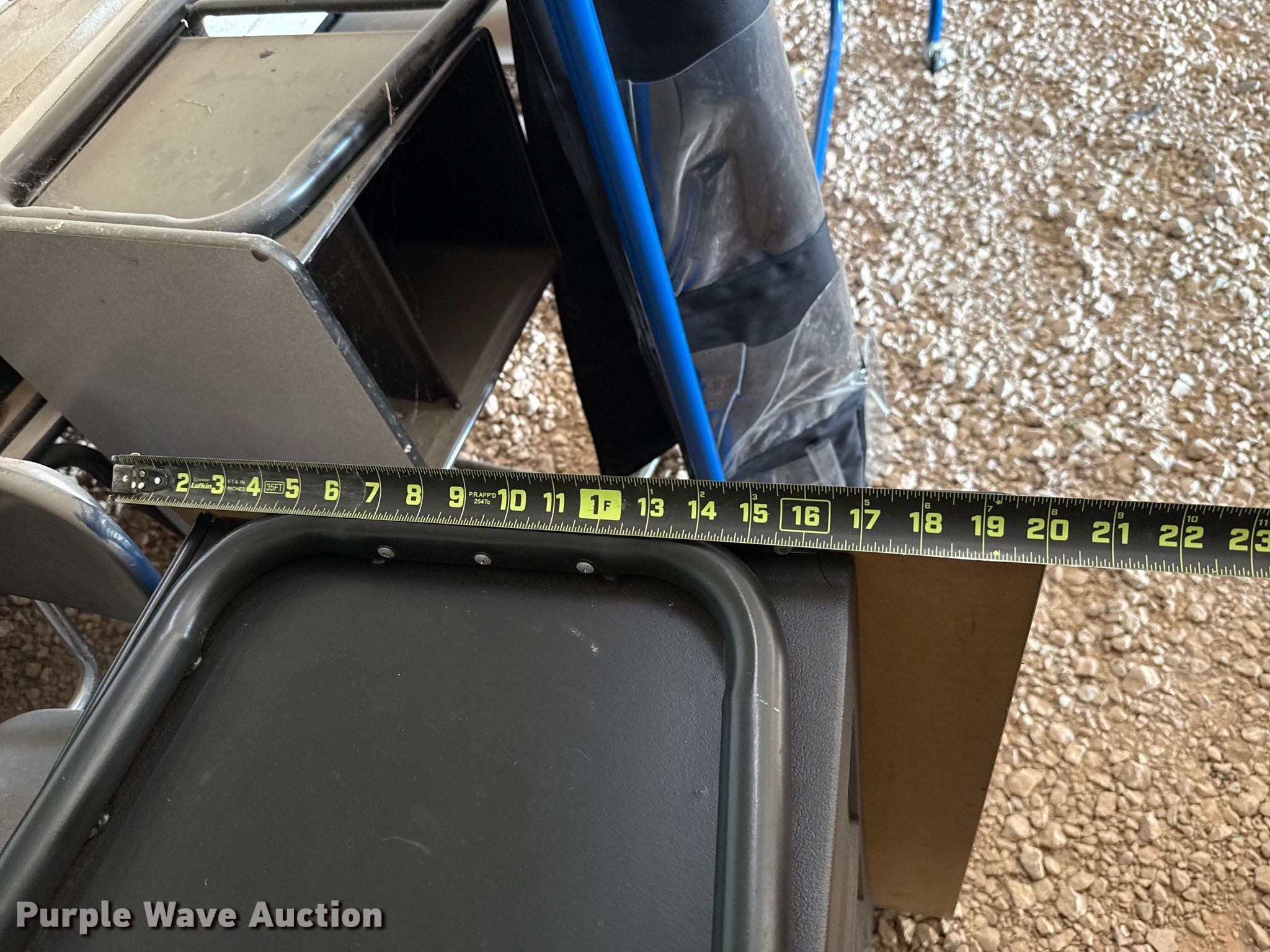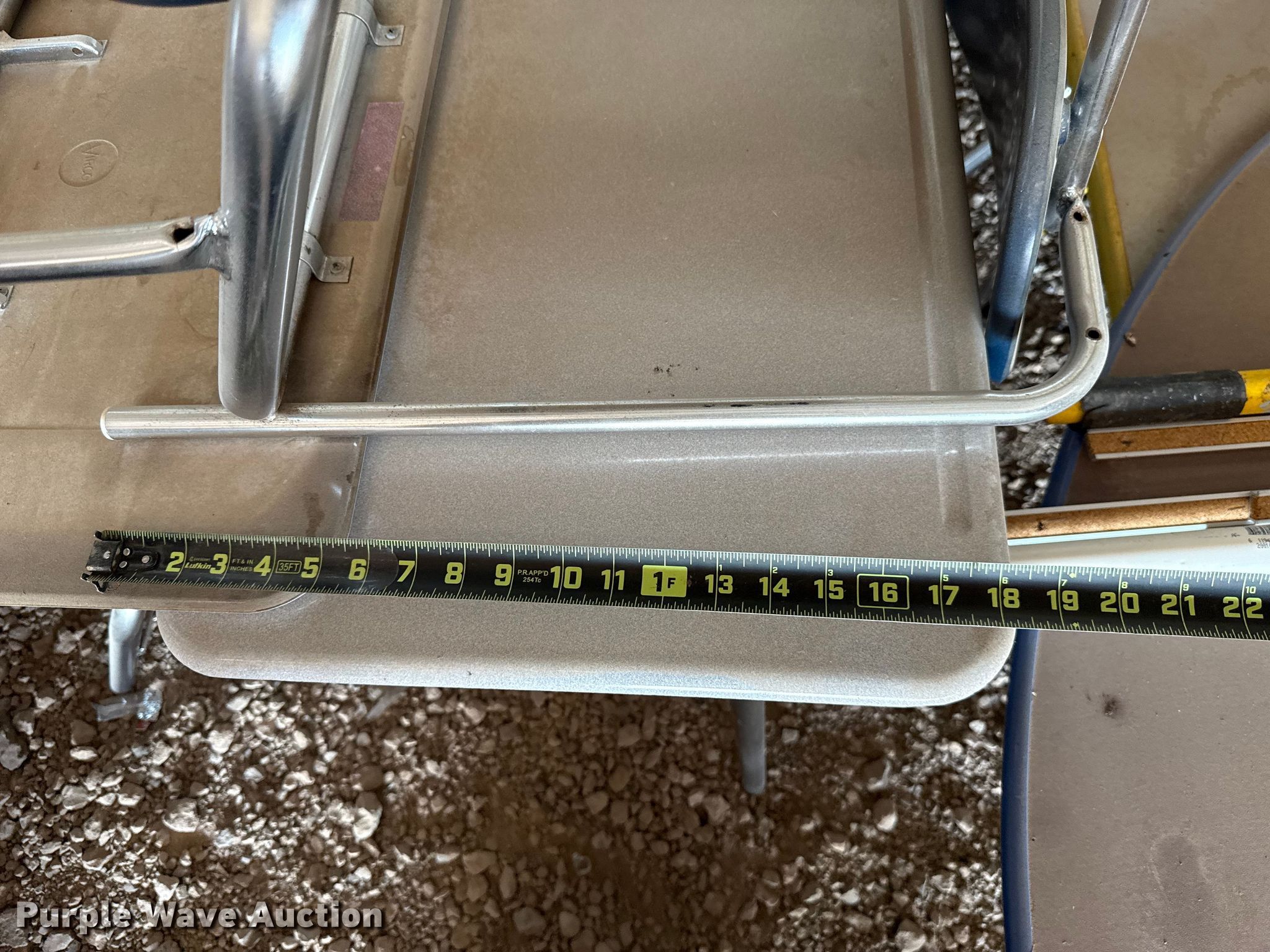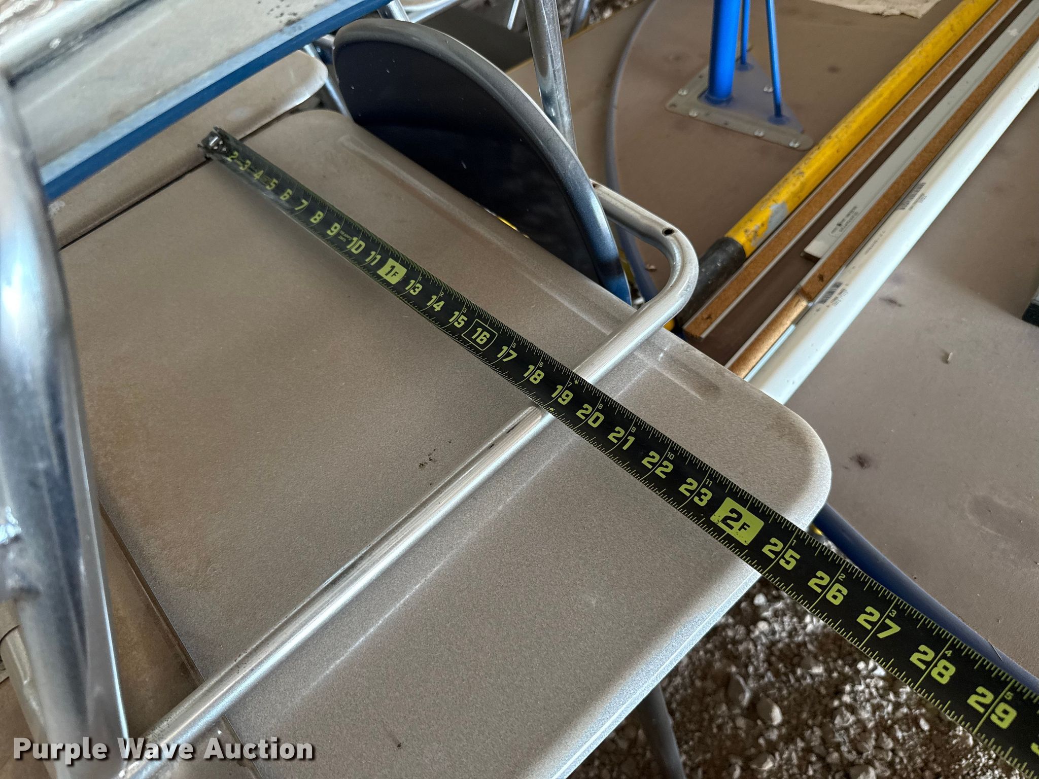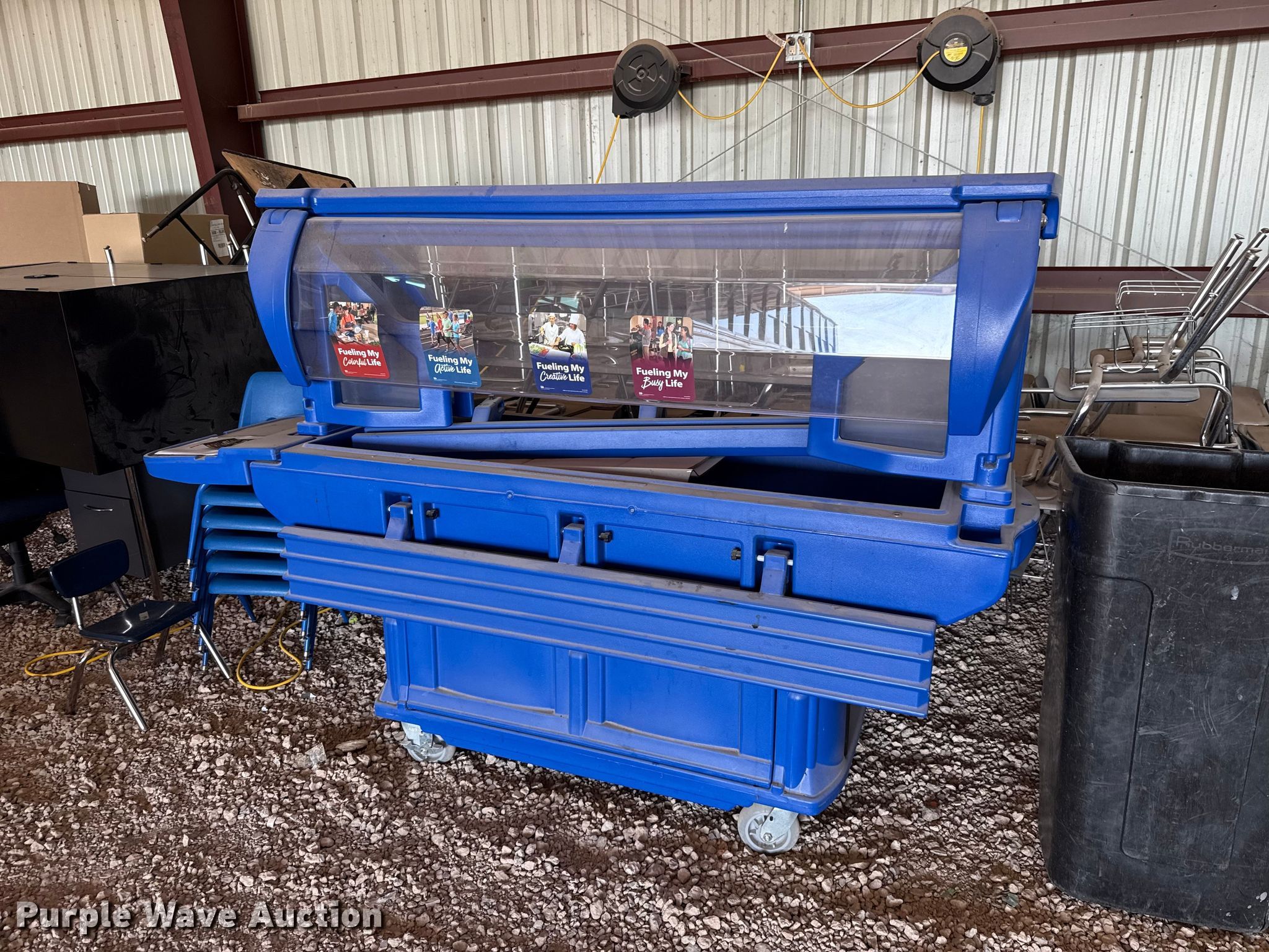 Purple Wave is selling a used Furniture in Oklahoma. This item is a Furniture with the following: Chairs: 50, Desks: 86, Filing cabinets: 1, Lockers: 9, Tables: 13, (5) trash cans, (2) dry erase boards, Cafeteria lunch bar, Janitorial supplies, Campbell Hausfeld air compressor, Unknown operating condition, Generac Speed Wash pressure washer, Unknown operating condition