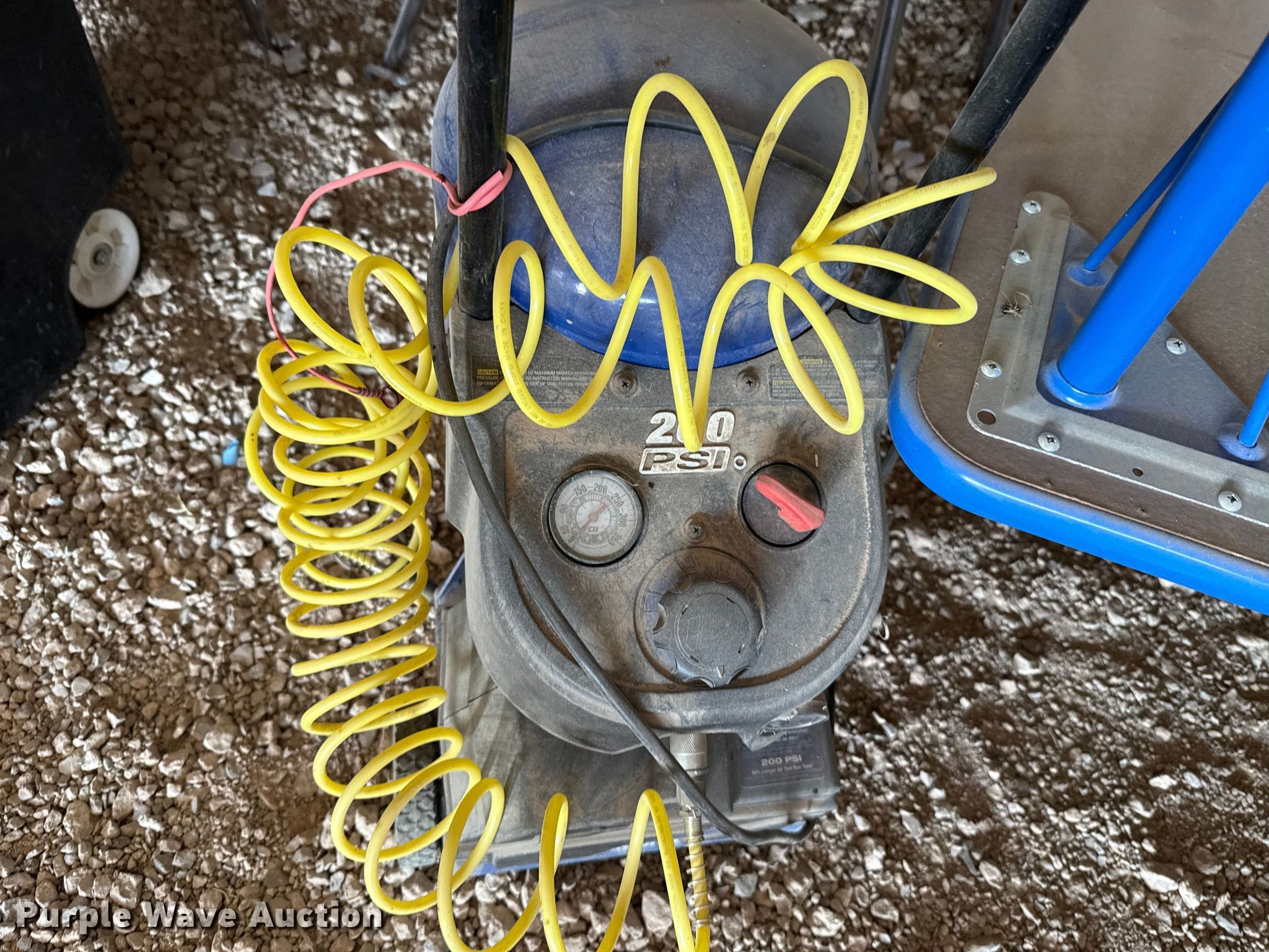 Furniture. Chairs: 50, Desks: 86, Filing cabinets: 1, Lockers: 9, Tables: 13, (5) trash cans, (2) dry erase boards, Cafeteria lunch bar, Janitorial supplies, Campbell Hausfeld air compressor Unknown operating condition, Generac Speed Wash pressure washer Unknown operating condition. Banner Public Schools. El Reno, OK 73036