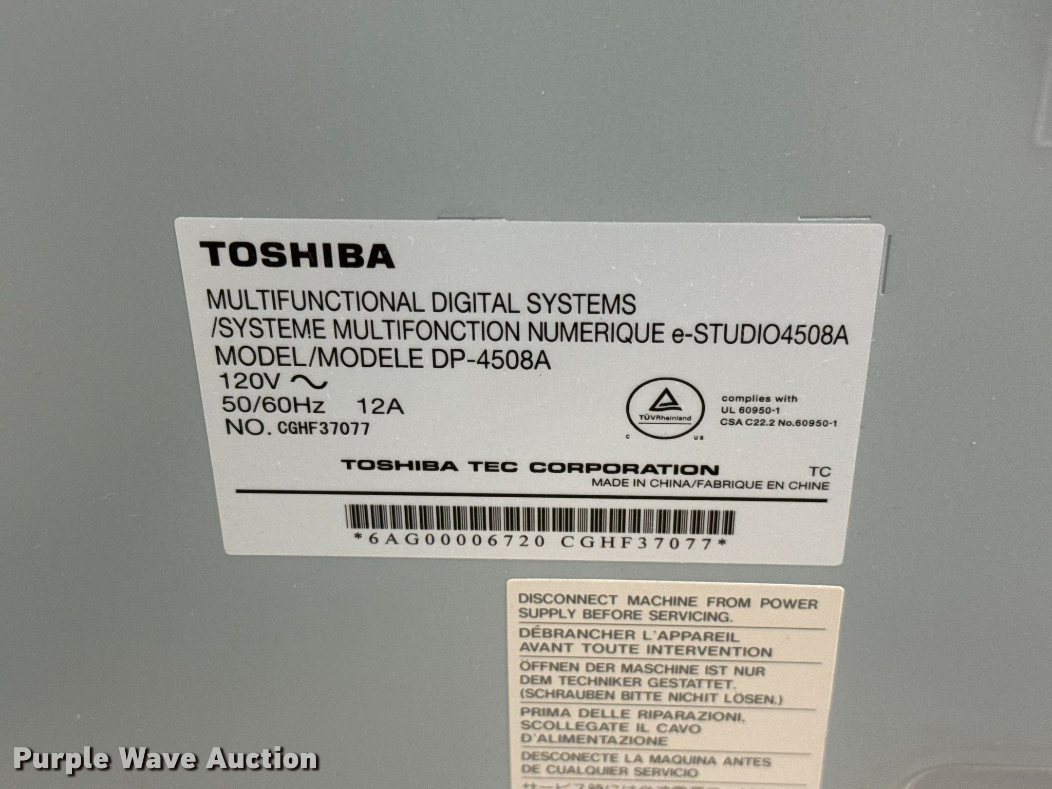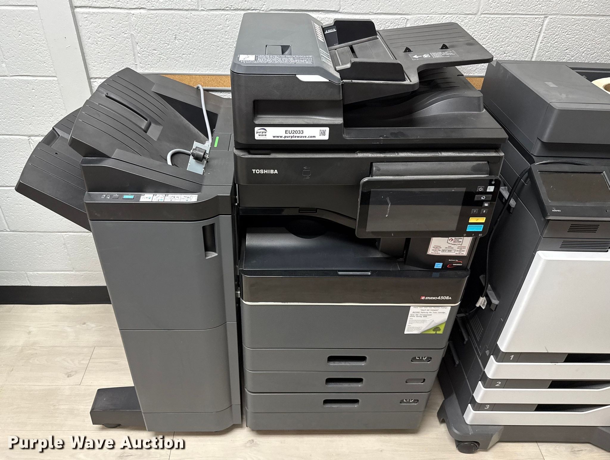 Purple Wave is selling a used Copy or Printing Machine in Oklahoma. This item is a (2) copy machines with the following: Toshiba E-Studio 4508A copier, Lexmark XC6152 copier