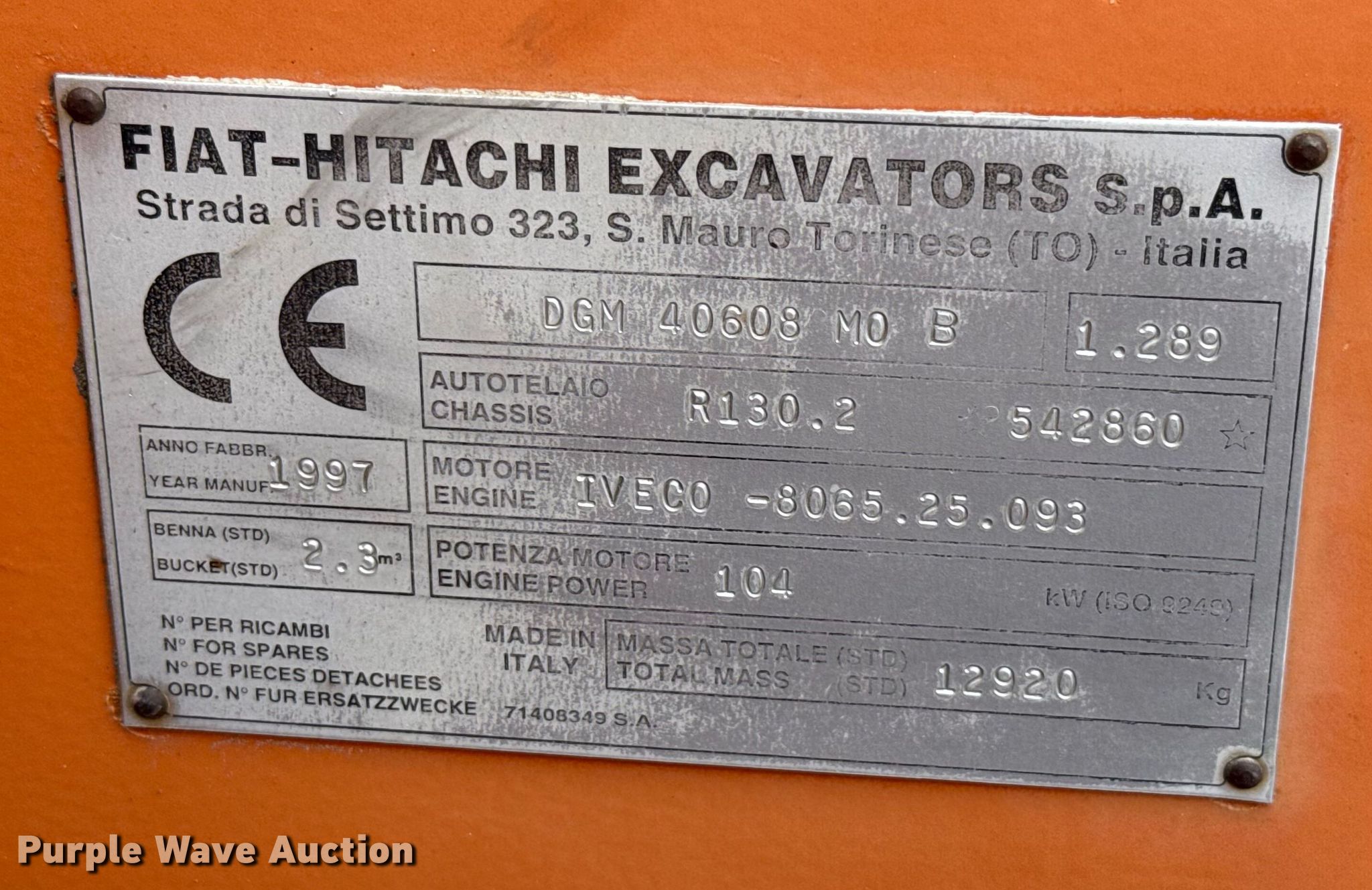 1997 Fiat-Hitachi FR130.2 wheel loader. Hours: 4,764 on meter, Serial: R1302542860. Engine Iveco 8065.25.093, Cylinders: 6, Fuel type: Diesel. Transmission Powershift, 4F - 3R. Operators station Enclosed cab, Heat, Bucket controls: Joystick. Features Auxiliary hydraulics: Front, Bucket Width: 105", Cutting edge: Bolt-on. Tires Size: 20.5R25, Other: Pneumatic. Notes Glass cracked, Kill switch issues. Creek County District 3, OK. Bristow, OK 74010