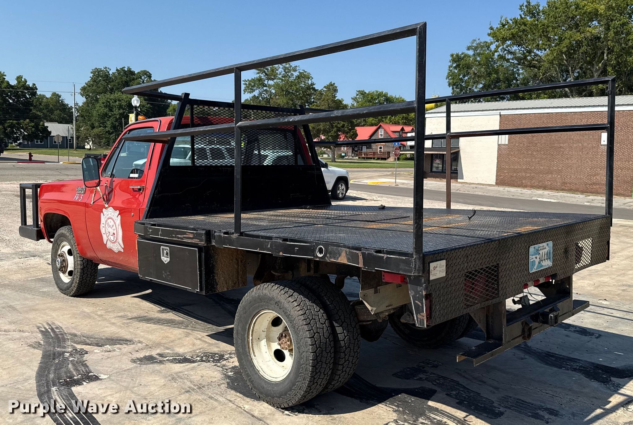 1980 Chevrolet C30 flatbed pickup truck. Miles: 38,043 on odometer, VIN: CKM33AJ119655. Engine Cylinders: 8, Fuel type: Gas. Transmission Manual, Speed: 4, Four wheel drive. Interior Heat, Auxiliary controls. Features Bed Flatbed, Length: 9', Width: 92", Height: 39", Hitch: Gooseneck. Tires Size: LT245/75R16. Notes Jump start required during on-site data collection. Oklahoma title. Seller is a government entity who will be assigning and distributing the title. Please contact the seller for distribution questions. City of Okemah. Okemah, OK 74859