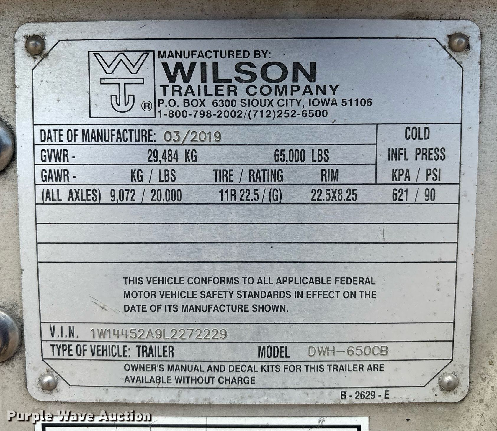 2020 Wilson DWH-650CB grain trailer has sold in Amarillo, Texas for $25850. Item DX8055 sold on September 3rd, 2025.