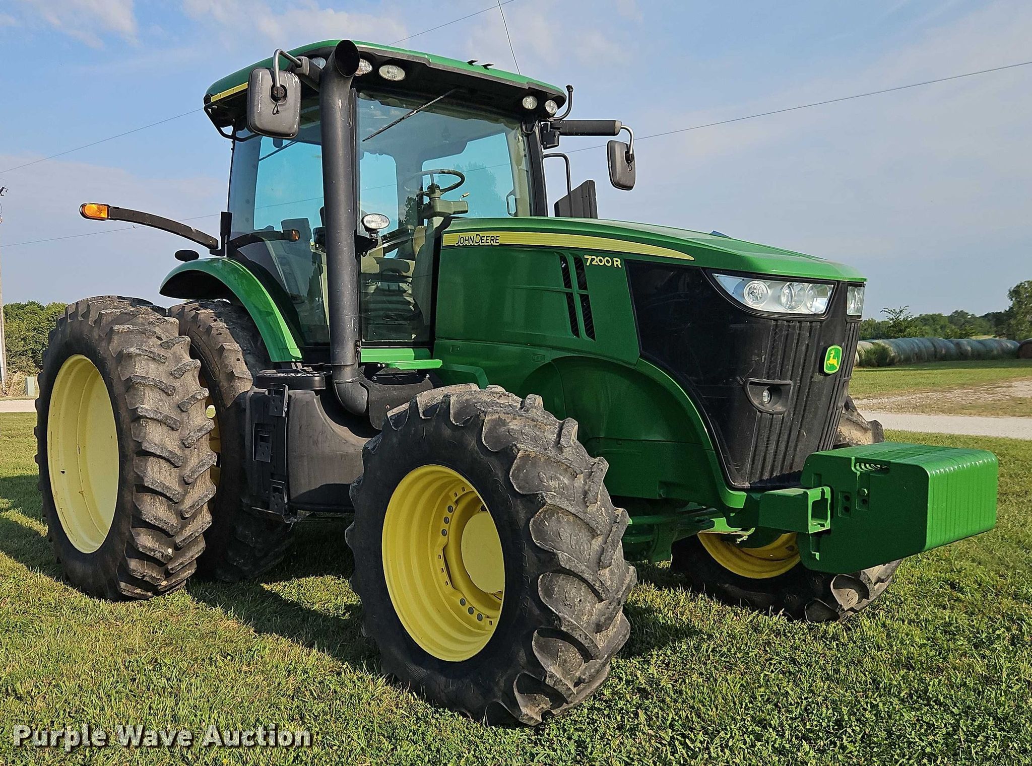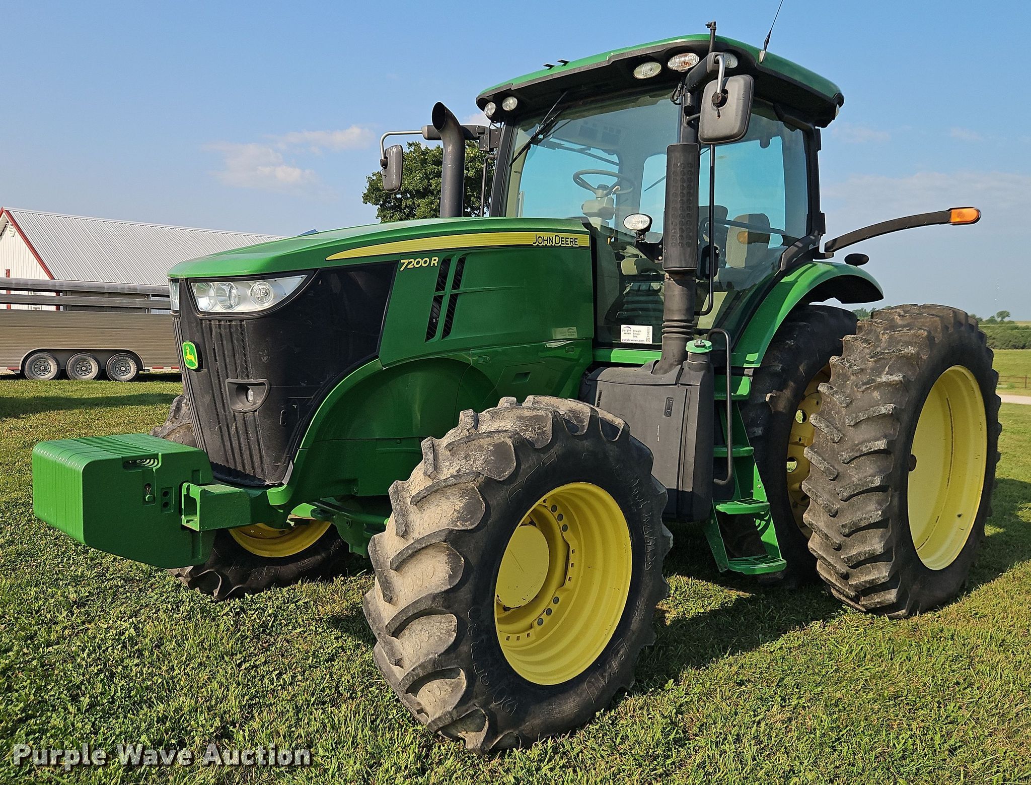 Purple Wave is selling a used Tractor in Kansas. This item is a 2013 John Deere 7200R MFWD tractor with the following: Hours: 5,069 on meter, Serial: 1RW7200RTCA010388