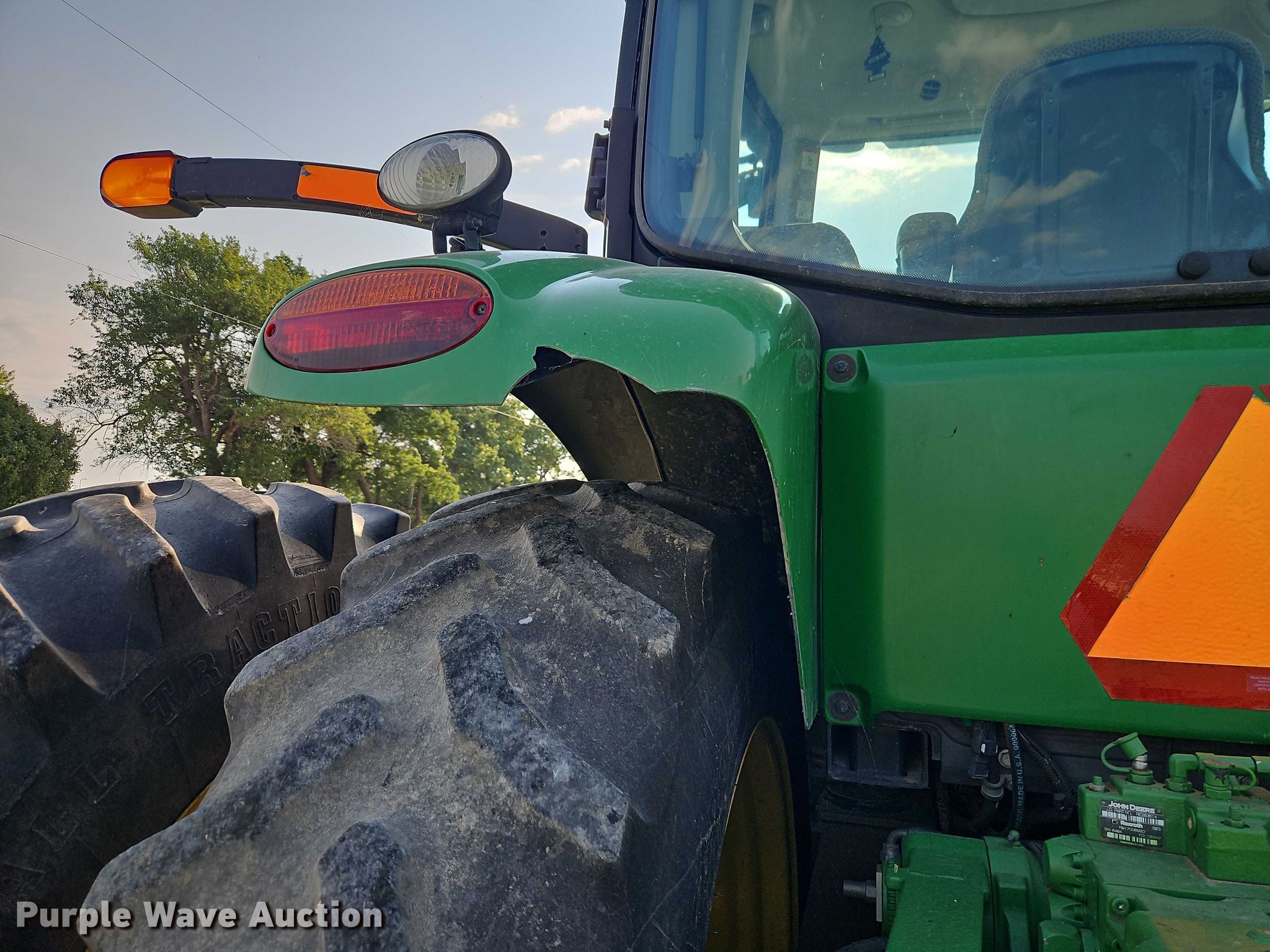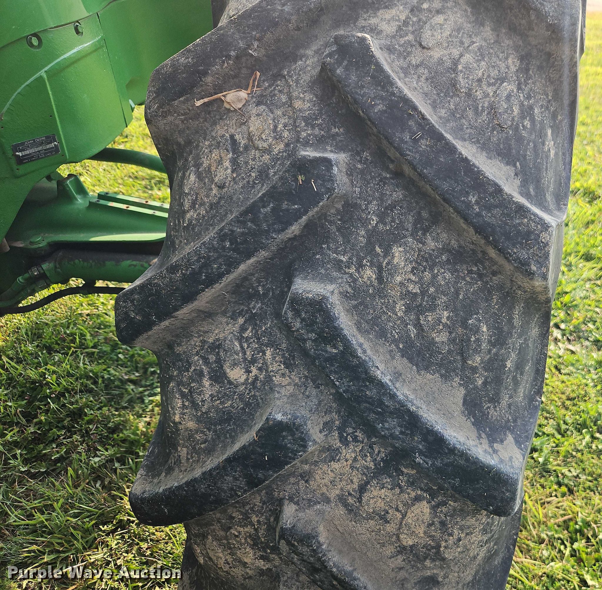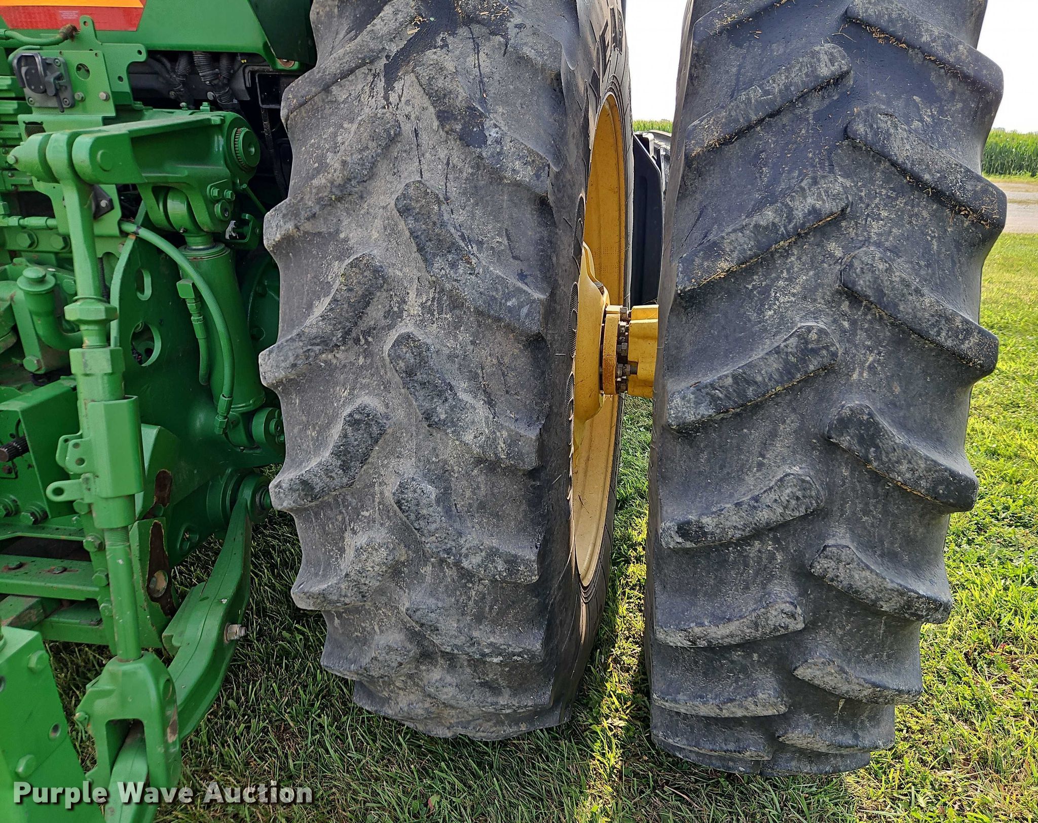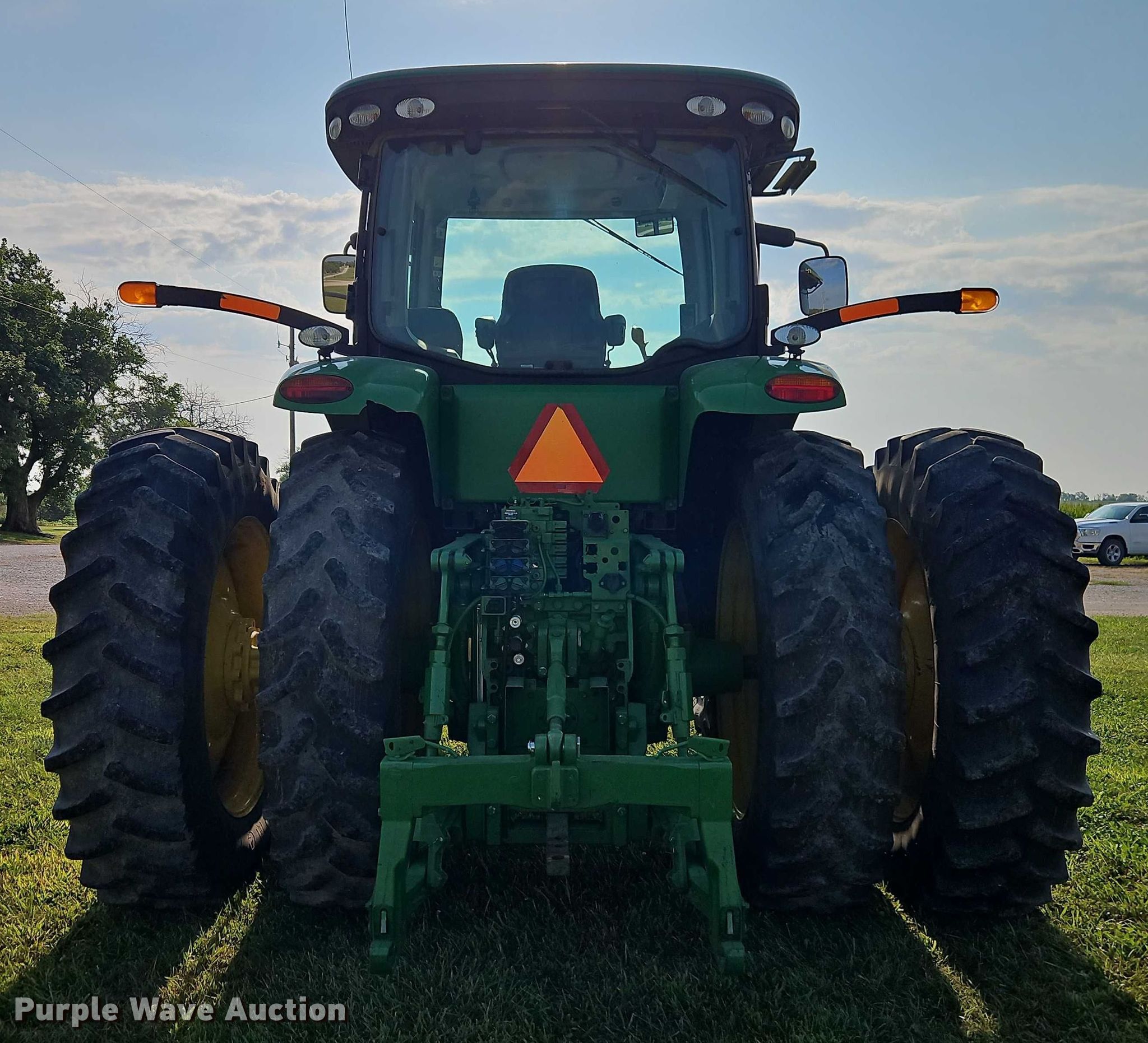 2013 John Deere 7200R MFWD tractor. Hours: 5,069 on meter, Serial: 1RW7200RTCA010388. Engine John Deere, Displacement: 6.8L, Cylinders: 6, Fuel type: Diesel. Transmission Powershift, 20F - 20R, Left-hand reverser, Differential lock. Operators station AC, Heat. Features PTO: 540, 1000, Three point Top link, Quick attach, Seven pin outlet, ISOBUS outlet, Hydraulic remote sets Rear: 5, Power beyond (hydraulics), Suitcase weights: 16. Tires Front: 420/85R30, Rear: 480/80R46, Duals. Rantoul, KS 66079