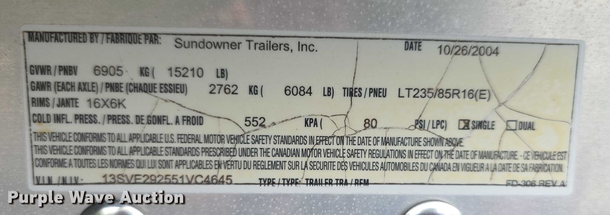 Purple Wave is selling a used Livestock Trailer in Kansas. This item is a 2005 Sundowner Sunlite 727 horse trailer with the following: VIN: 13SVE292551VC4645