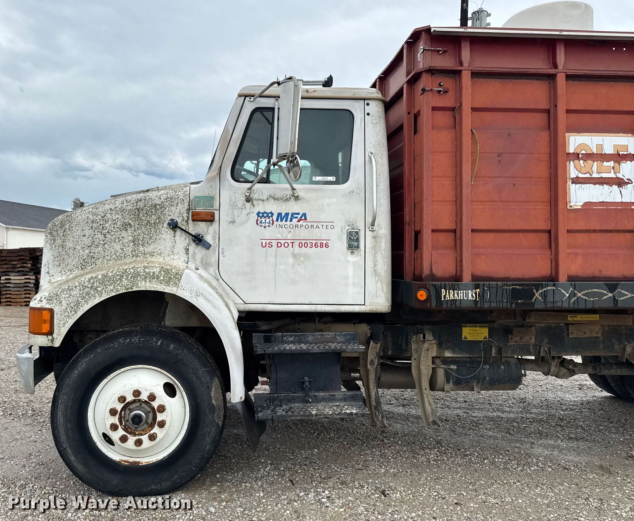 1993 International 8100 grain truck. Miles: 469,774 on odometer, VIN: 1HTHBBEN5PH498000. Engine Cummins, Displacement: 10.0L, Cylinders: 6, Fuel type: Diesel. Transmission Eaton fuller, Manual, Speed: 9. Chassis Axles: Single, Gear ratio: 3.73, Suspension: Spring, Brakes: Air, PTO. Interior AC, Heat, Heated mirrors, Brake controller. Features Bed Dump bed, Parkhurst, Length: 16', Width: 96", Side height: 60", Bed type: Steel, Ram: Dual, End gate: Manual. Tires Size: 11R22.5. Notes Jump start required during on-site data collection, Bed contents not included. Missouri title. Title distribution may be delayed up to 30 days from verification of funds. MFA Incorporated. Lancaster, MO 63548