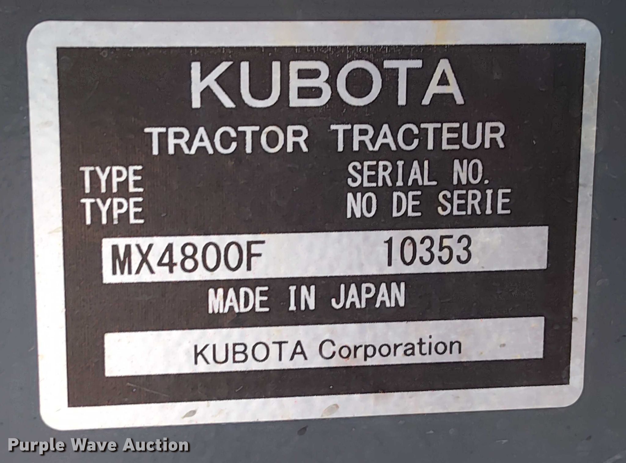 Purple Wave is selling a used Tractor in Kansas. This item is a 2019 Kubota MX4800 tractor with the following: Hours: 728 on meter, Serial: 10353