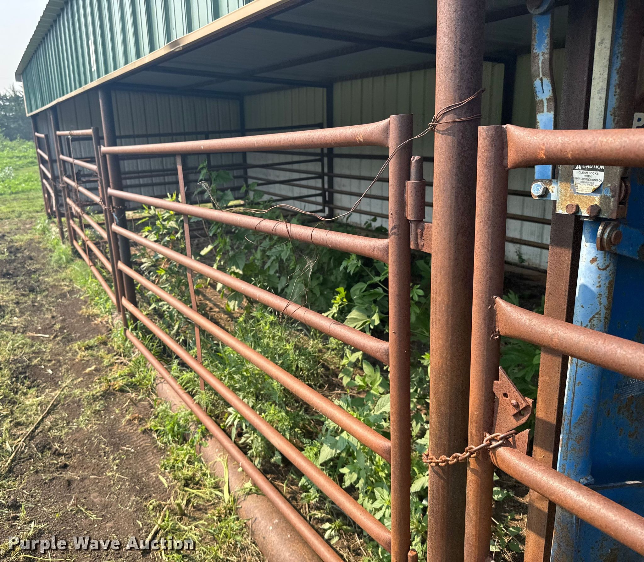 Purple Wave is selling a used Livestock Equip. in Kansas. This item is a Livestock shed with the following: Dimensions: 39� 5� x 12� x 8�, Skid mounted, Gates: 4, Livestock head gate