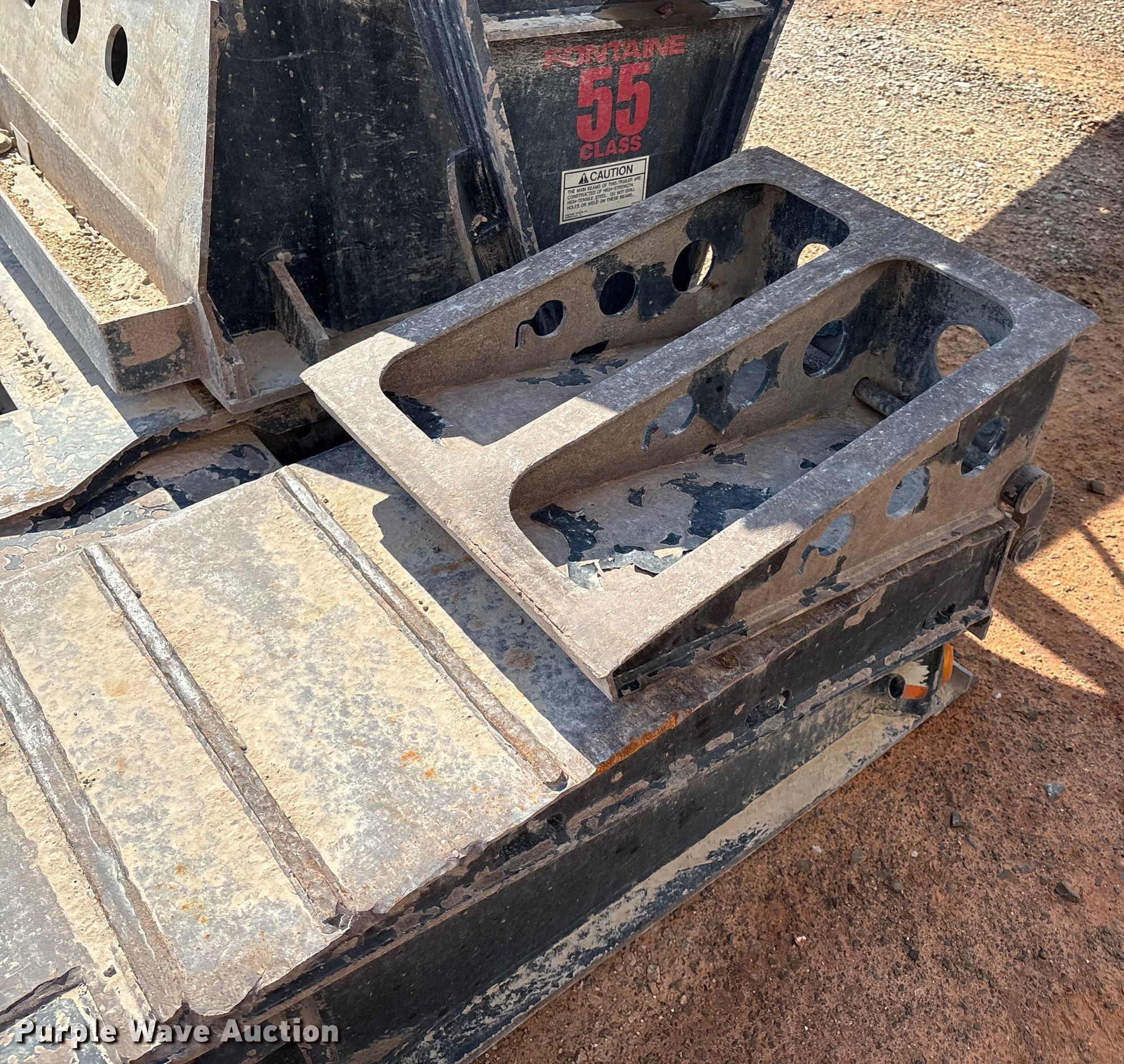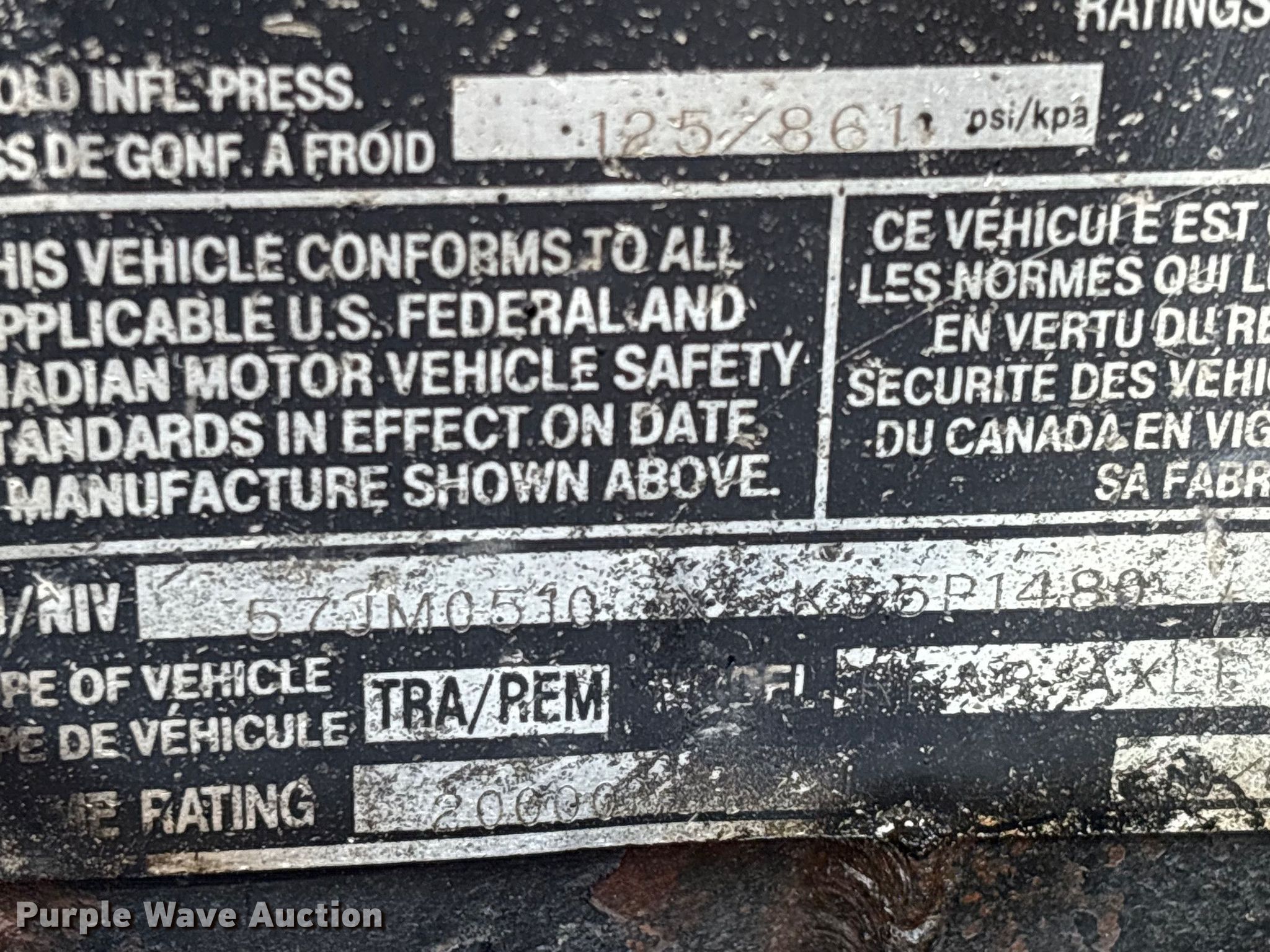 2019 Fontaine Magnitude HFLD lowboy equipment trailer. VIN: 57JE54300K3576037. Dimensions Overall Length: 52', Width: 102", Deck Length: 29', Width: 102", Rear deck length: 14', Deck height: 22", Ramps: Manual Length: 26". Features Deck type: Wood, Neck type: Detachable. Chassis Suspension: Air, Brakes: Air, Axles: Triple, GVWR: 134,000 lbs, GAWR: 23,000 lbs. Tires Steel wheels, Size: 275/70R22.5. 2019 Fontaine flip axle VIN: 57JM0510XK35P1480. Dimensions Length: 4' 6". Features Deck type: Steel. Chassis Suspension: Air, Brakes: Air, GVWR: 23,000 lbs. Tires 275/70R22.5. Trailer: Oklahoma title. Flip axle: Bill of Sale. Title and Bill of Sale distribution may be delayed up to 14 days from verification of funds. Kauk Construction LLC. Leedey, OK 73654