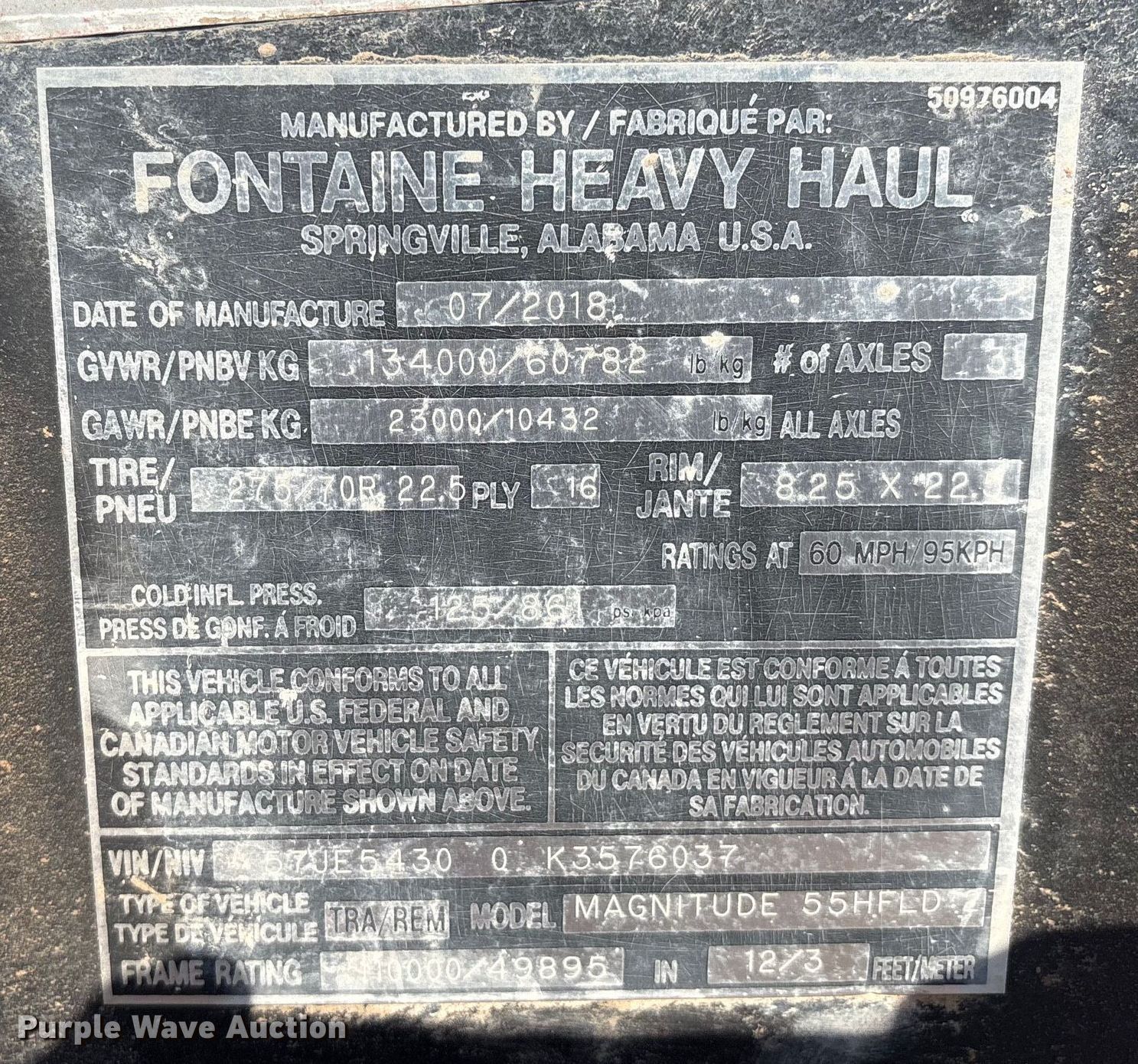 Purple Wave is selling a used Equip. Trailer in Oklahoma. This item is a 2019 Fontaine Magnitude HFLD lowboy equipment trailer with the following: VIN: 57JE54300K3576037