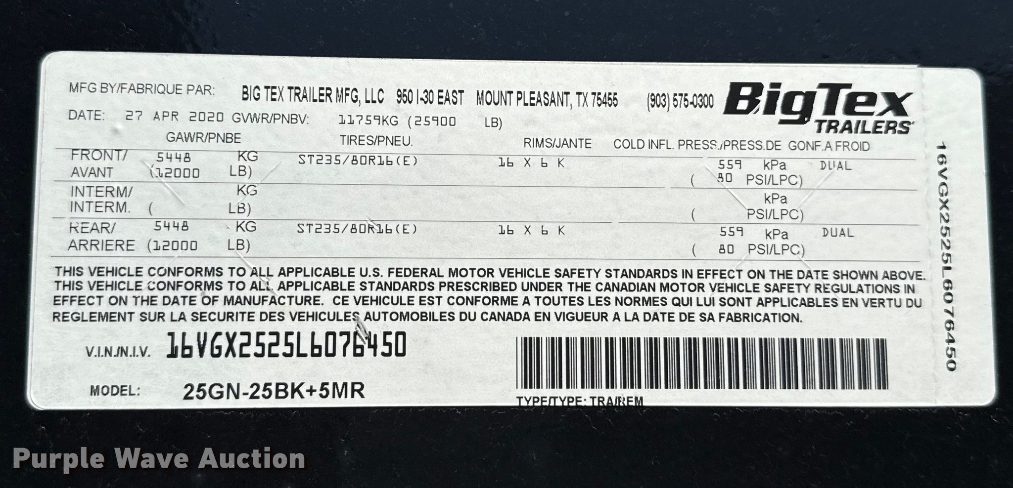 2020 Big Tex 25GN-25BK+5MR equipment trailer
