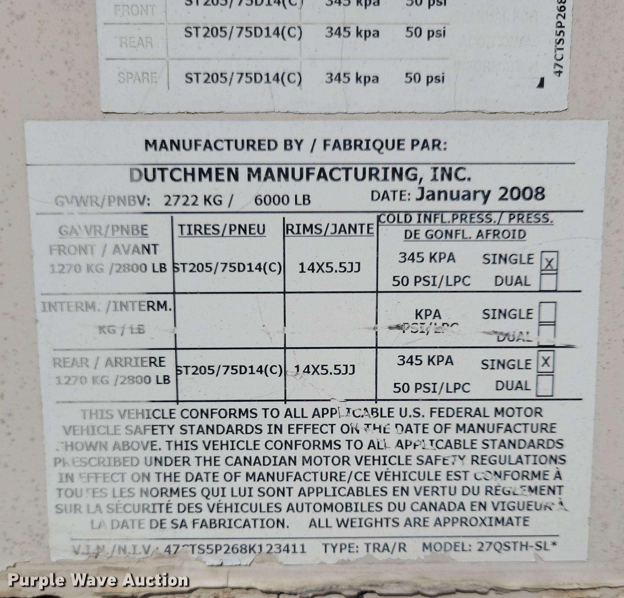Purple Wave is selling a used RV or Camper in South Dakota. This item is a 2008 Kodiak camper with the following: Camper length: 26', VIN: 47CTS5P268K123411, Unit #: 1389-24A