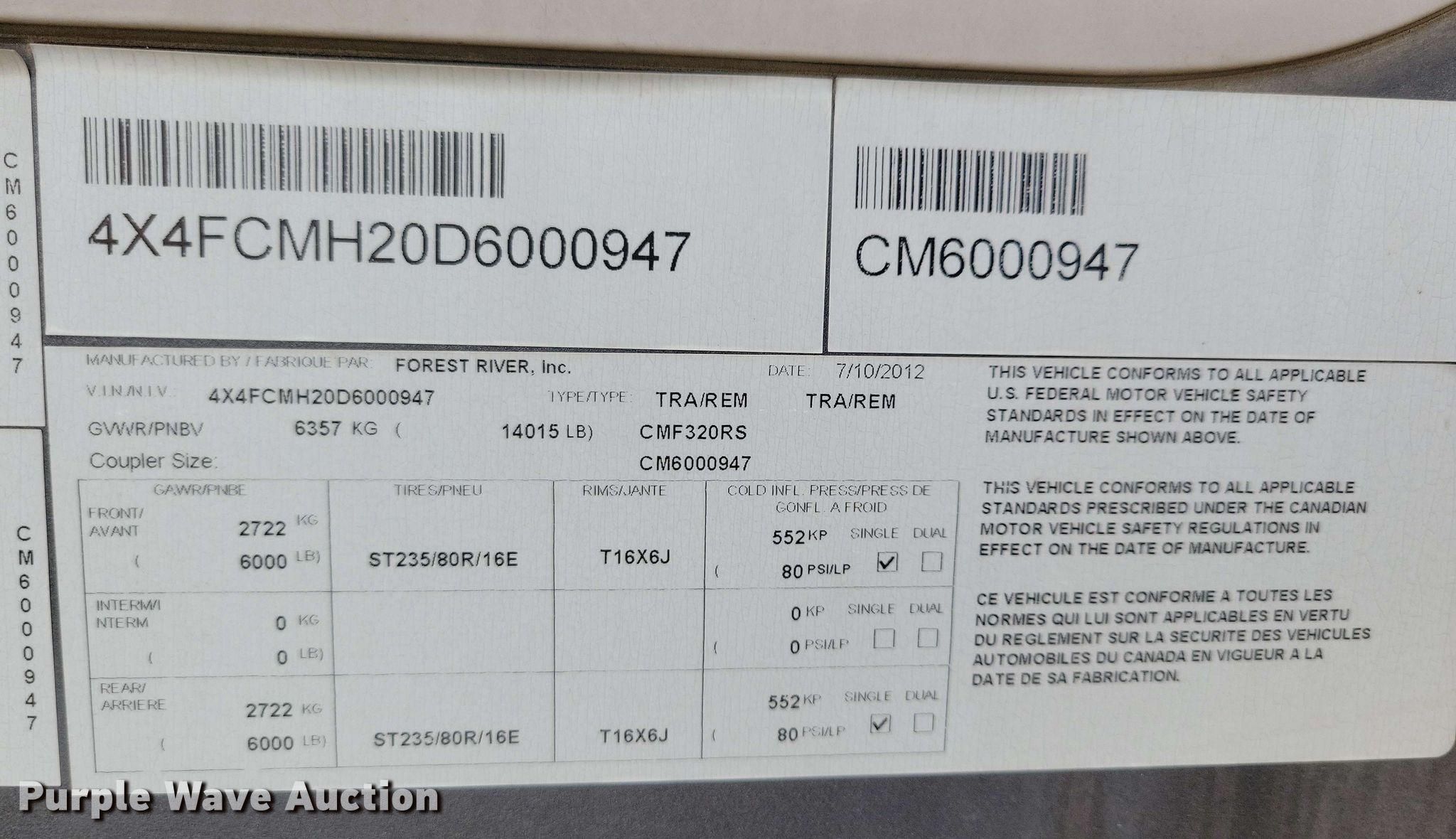 Purple Wave is selling a used RV or Camper in South Dakota. This item is a 2013 Forest River Columbus camper with the following: Camper length: 36' 6", VIN: 4X4FCMH20D6000947, Unit #: U283-24A