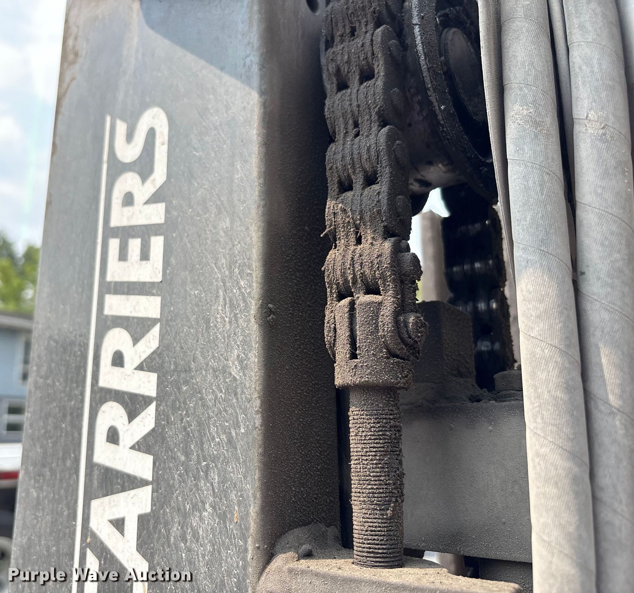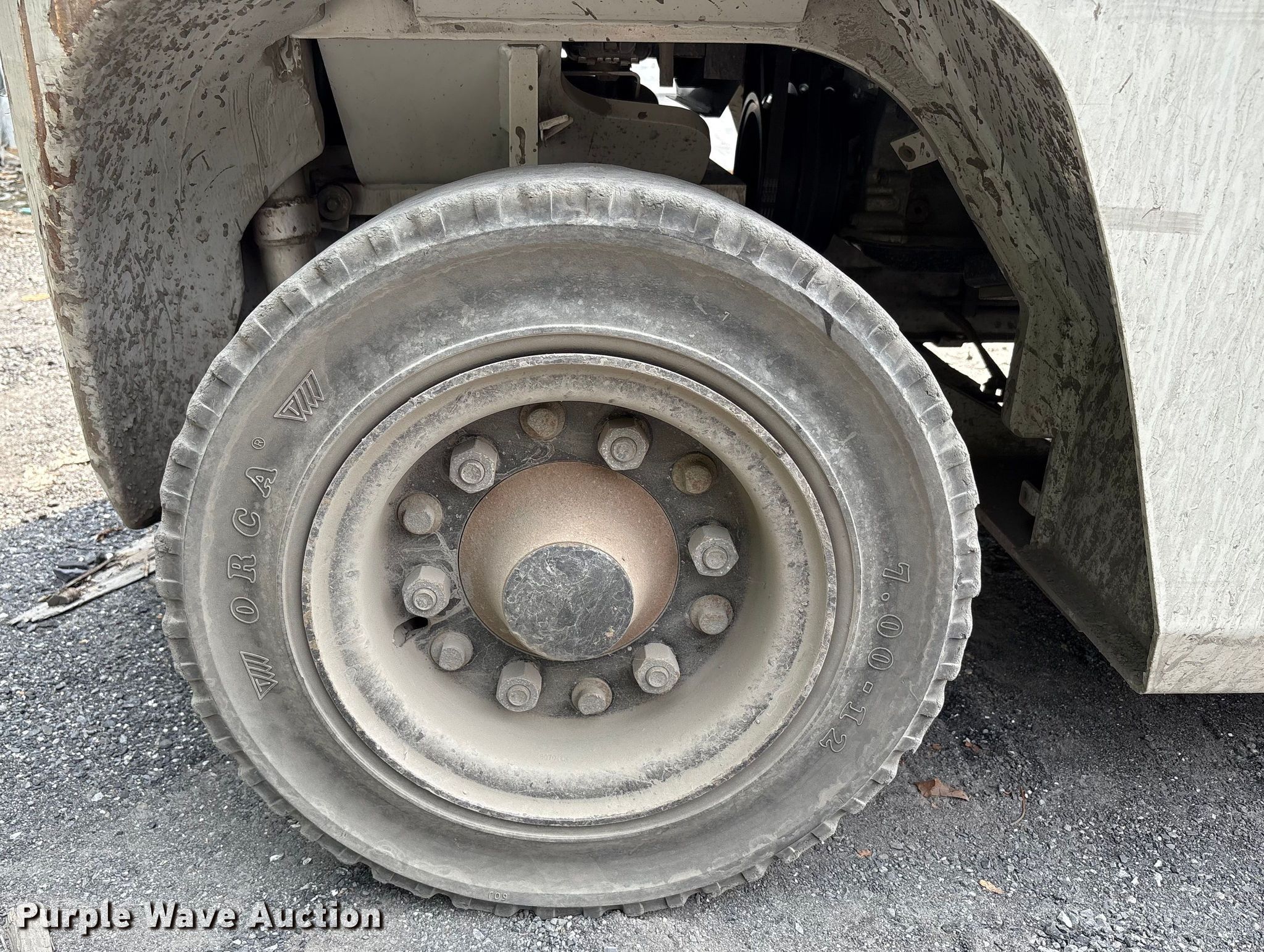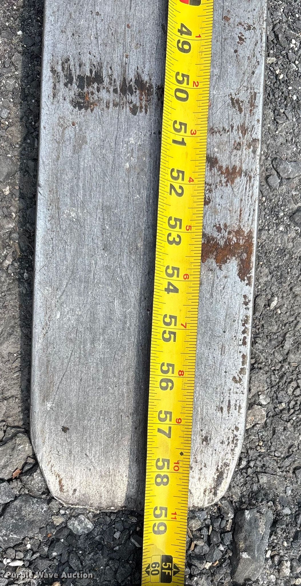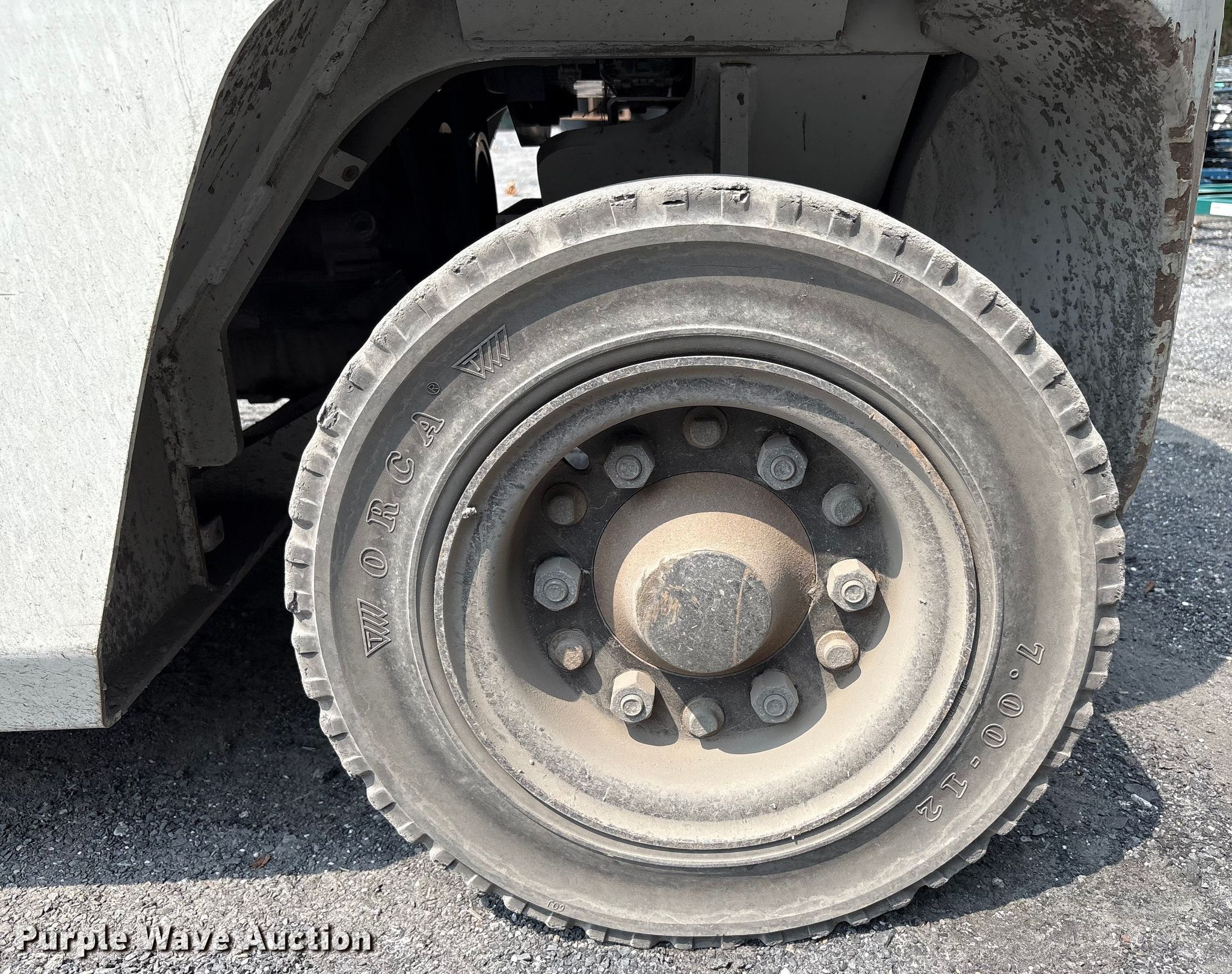 2014 Nissan PF80YLP forklift. Hours: 2,999 on meter, Serial: J1F4-980973, Unit #: SFS2292. Engine Cylinders: 6, Fuel type: LPG LP bottle: Not included. Transmission Automatic. Operators station OROPS. Features Maximum lift height: 187", Collapsed mast height: 89", Mast stages: 3, Side shift, Mast tilt, Fork positioner, Fork length: 59". Tires Front: 7.50-16, Rear: 7.00-12, Solid. Notes Warning indicator: Warning. Ferguson. Fullerton, PA 18052