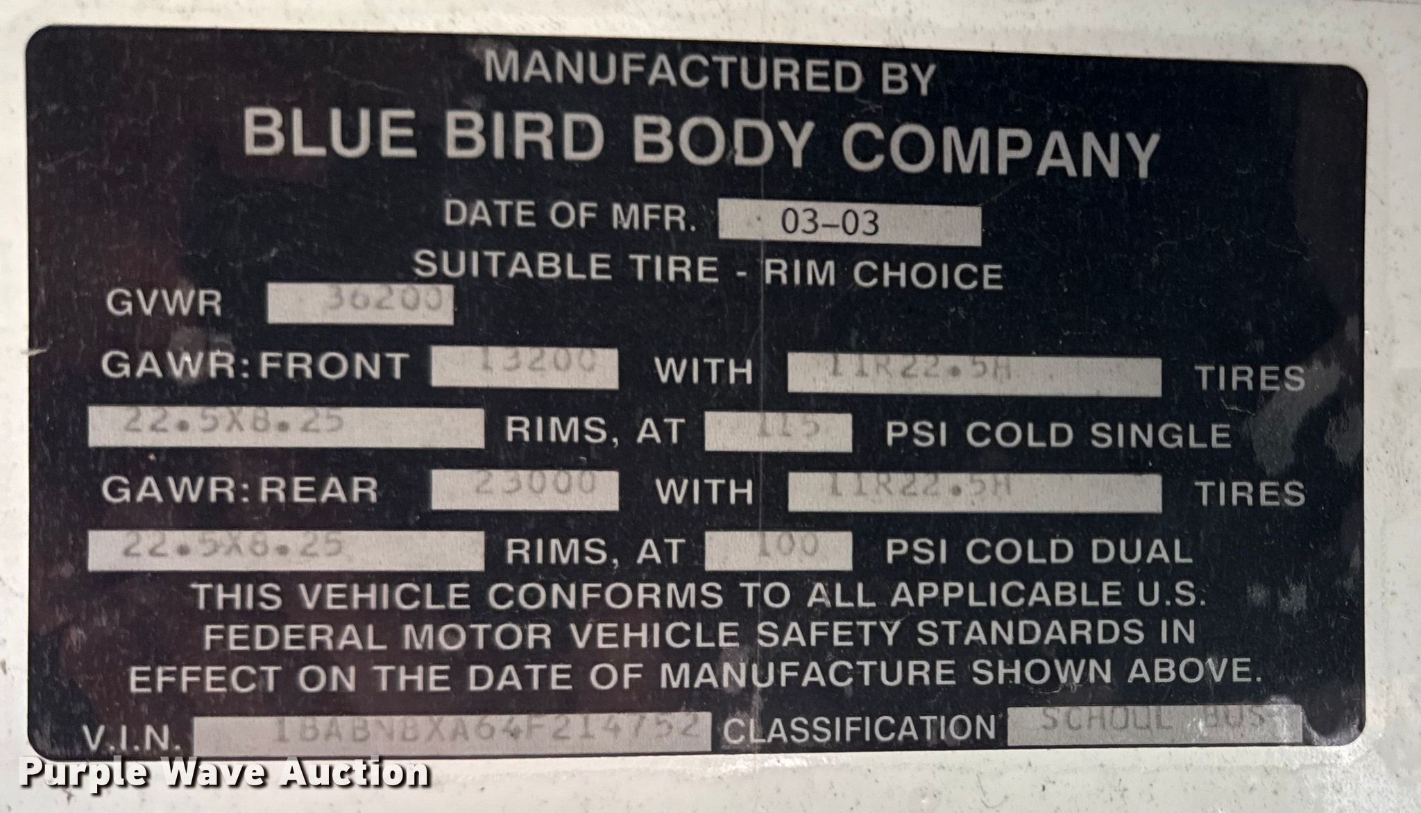 Purple Wave is selling a used Bus in Oklahoma. This item is a 2004 Blue Bird school bus with the following: Miles: 120,549 on odometer, VIN: 1BABNBXA64F214752