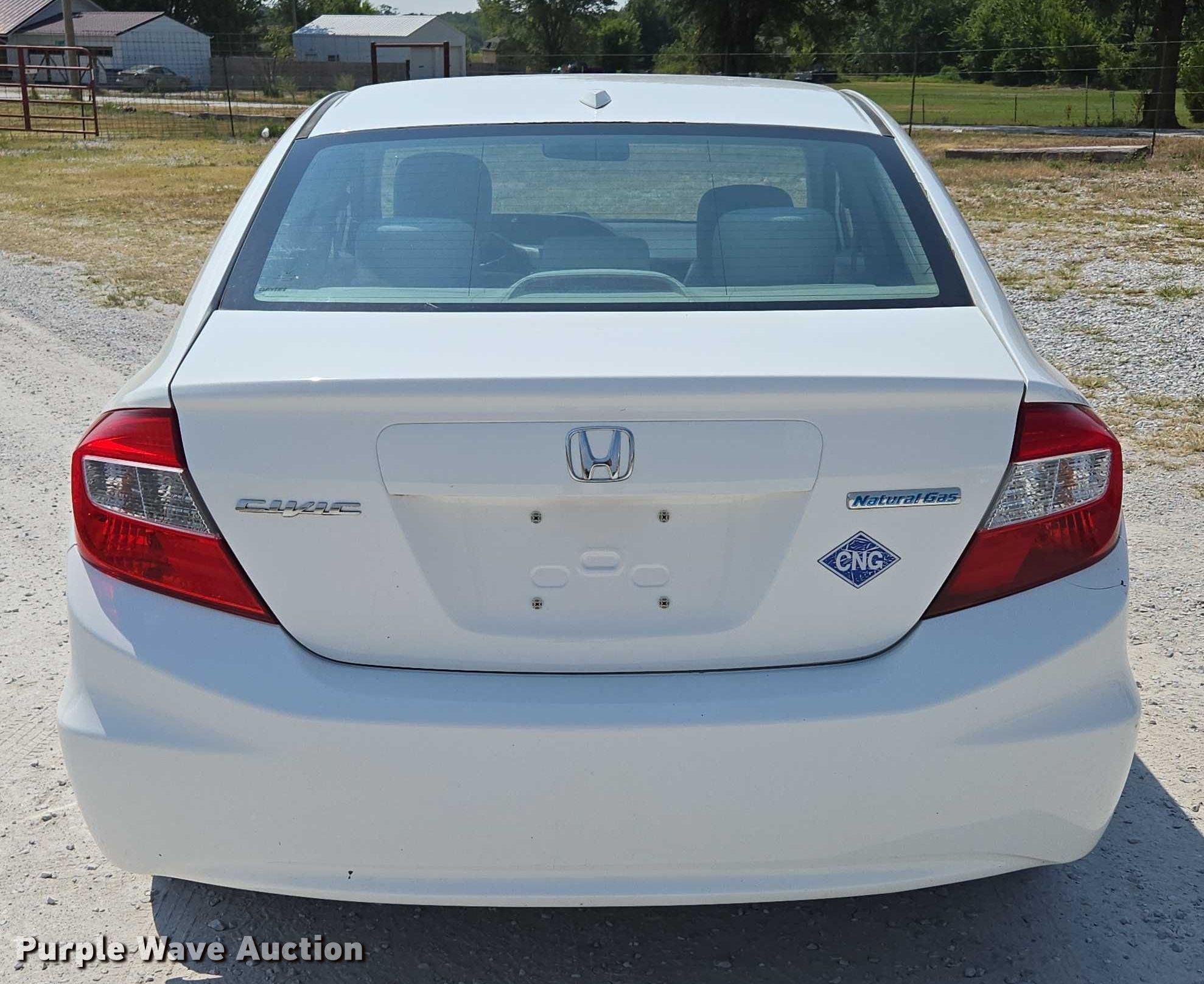 2012 Honda Civic. Miles: 137,983 on odometer, VIN: 19XFB5F55CE003248. Engine Displacement: 1.8L L4 SOHC, Cylinders: 4, Fuel type: CNG. Transmission Automatic. Interior AC, Heat, Power windows, Power locks, Cruise control. Tires Size: 195/65R15. Notes Hail damage. Oklahoma title. Seller is an Oklahoma licensed motor vehicle dealer. Title will be assigned and distributed by the dealer. Please contact the seller for distribution questions. Cummings Investment Properties. Carl Junction, MO 64834
