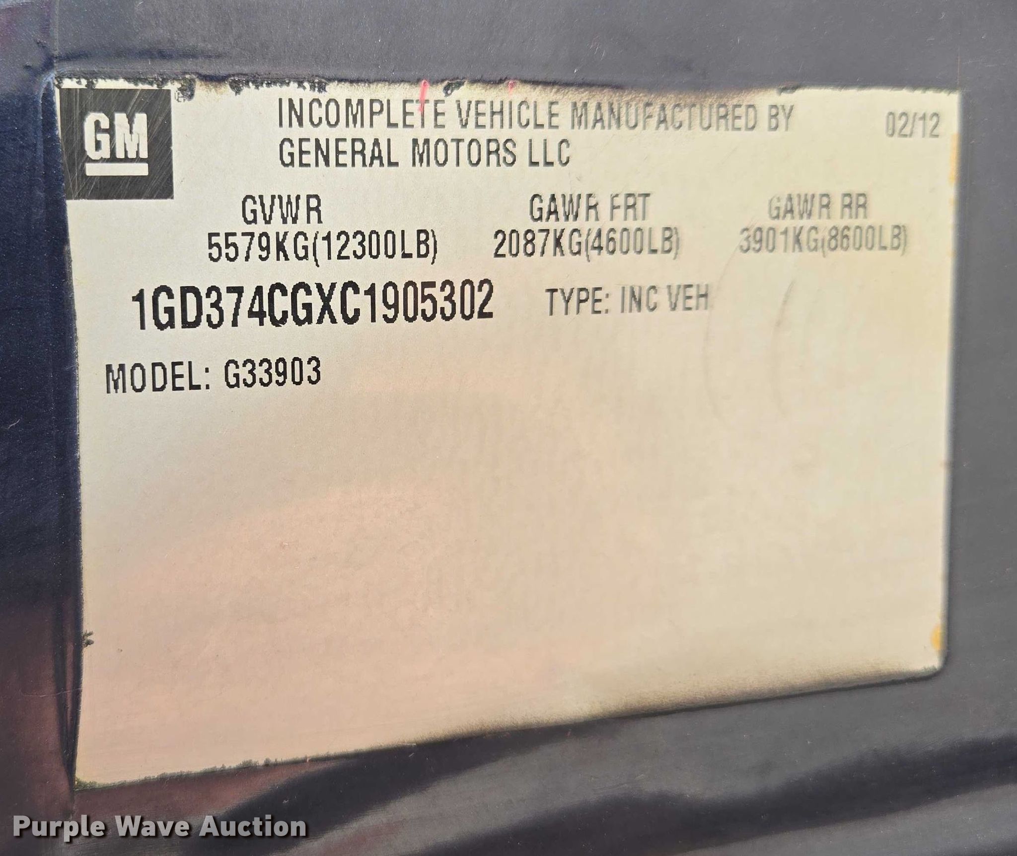 - VIN: 1GD374CGXC1905302