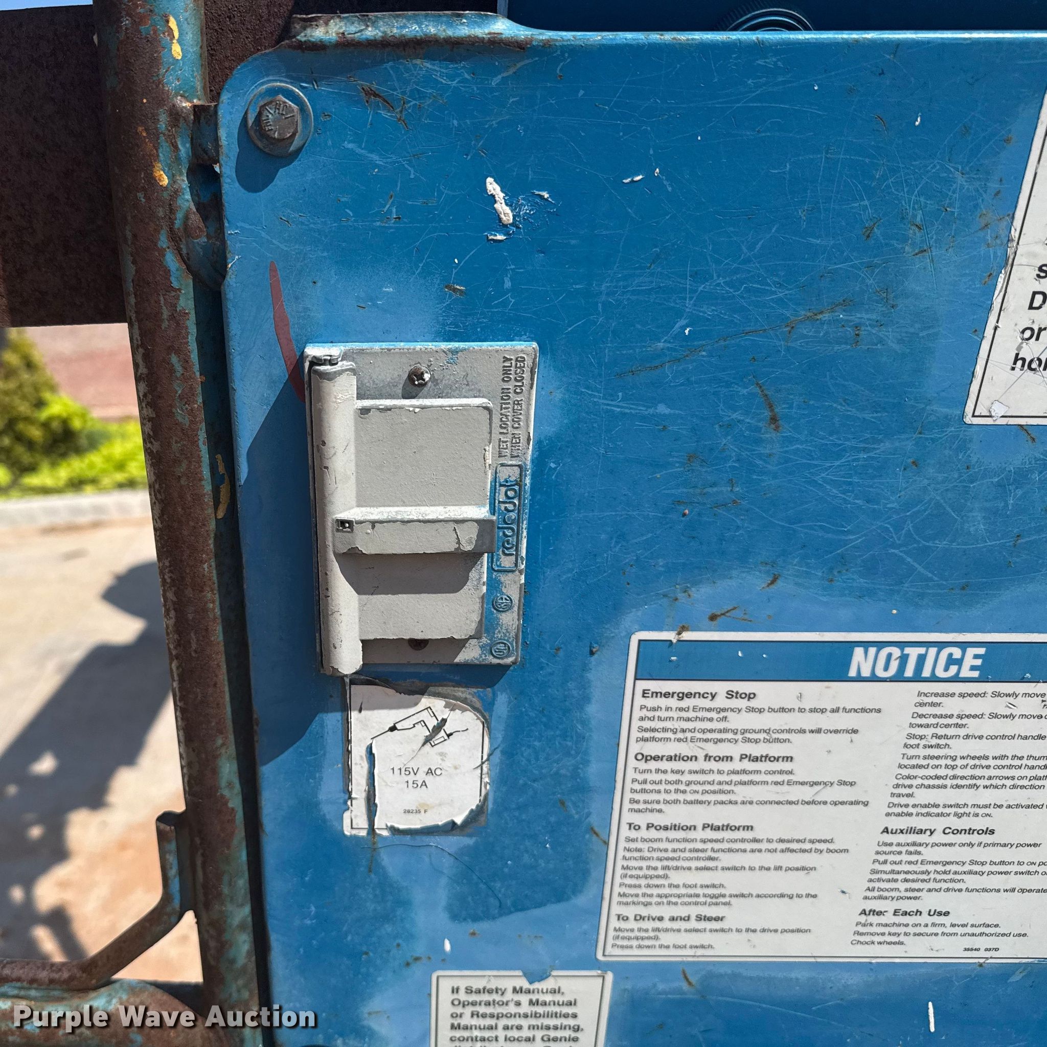 2007 Genie Z-30/20N boom lift. Hours: 689 on meter, Serial: Z30N07-10342. Electric Motor Volts: 48. Features Rough terrain, Boom type: Articulating, Telescopic, Maximum lift capacity: 500 lbs, Maximum reach length: 20' 8", Maximum lift height: 28' 10", Platform: 43" L x 28" W, AC power outlet, Controls: Platform, Ground. Tires Tire size: 22X7, Solid. SWH Construction. Norman, OK 73072
