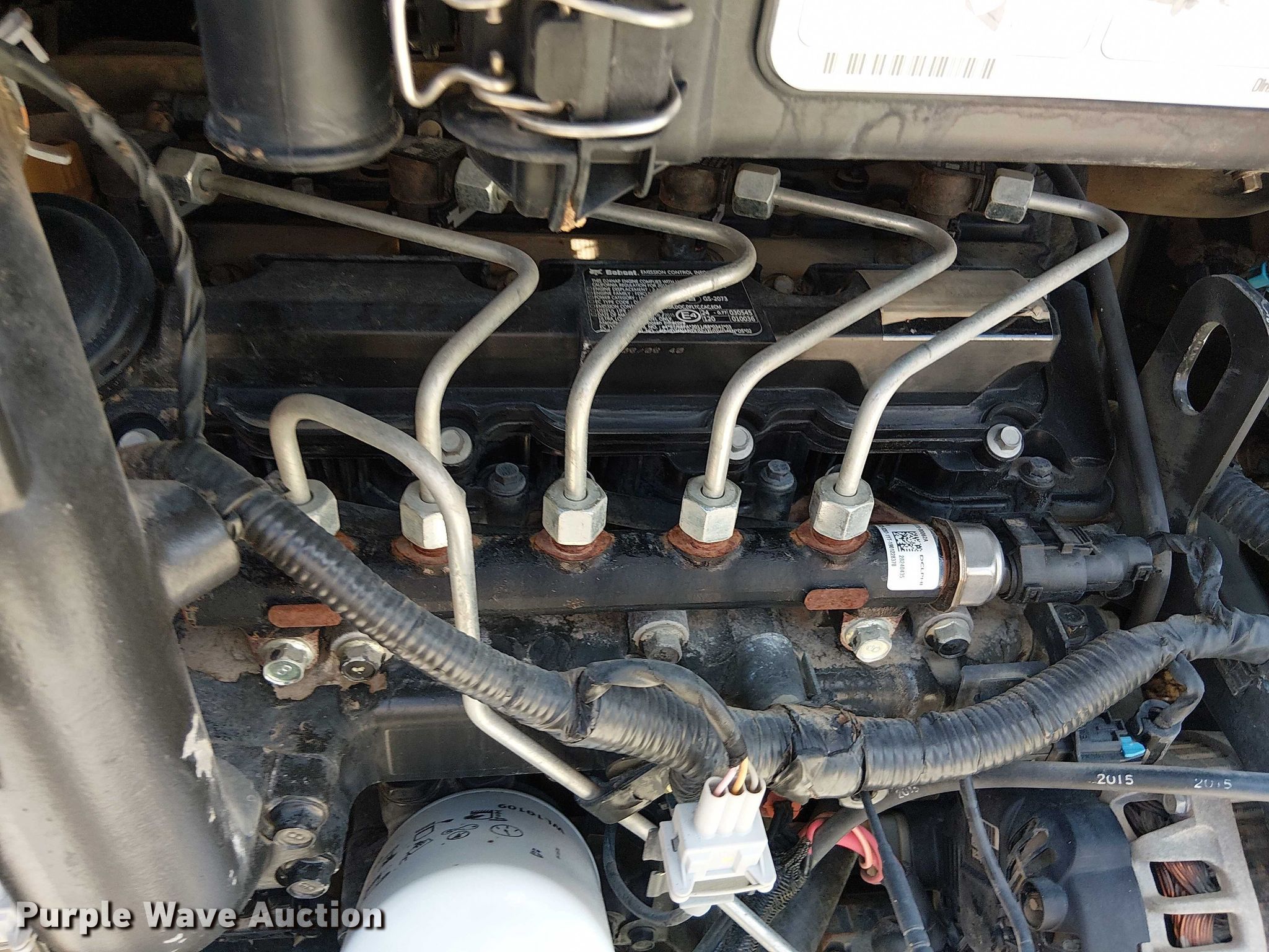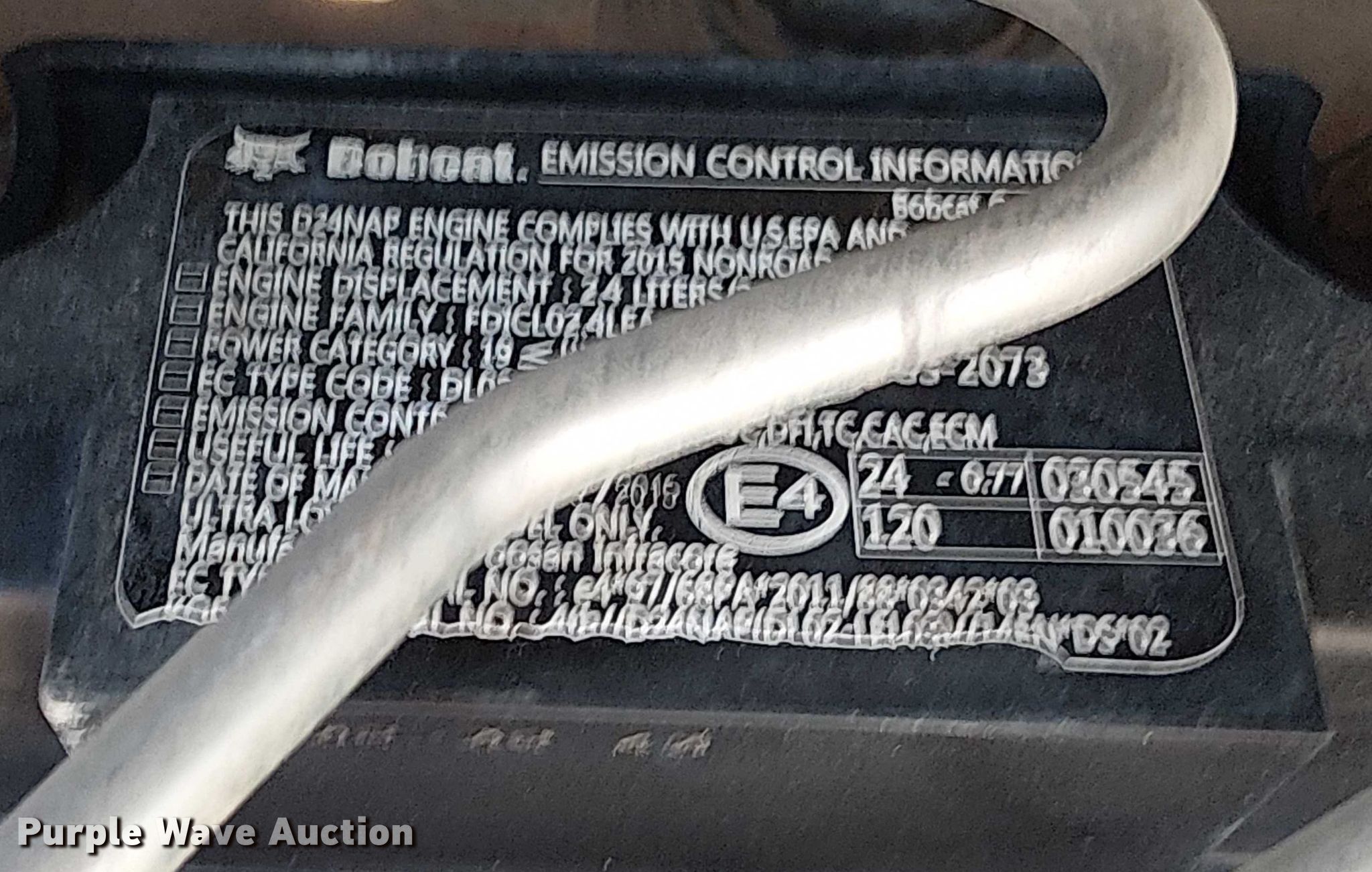 2015 Bobcat T650 tracked skid steer loader. Hours: 2,770 on meter, Serial: ALJG16124. Engine Bobcat, Displacement: 2.4L, Cylinders: 4, Fuel type: Diesel. Transmission Hydrostatic, Two speed travel. Operators station Enclosed cab, AC, Heat, Bucket control: Hand, Electronic Monitoring System panel. Features Auxiliary hydraulics, Quick coupler: Hydraulic, Bucket Width: 80", Cutting edge: Bolt-on. Tracks Width: 18". Notes Glass cracked. TLS, LLC. Tulsa, OK 74107