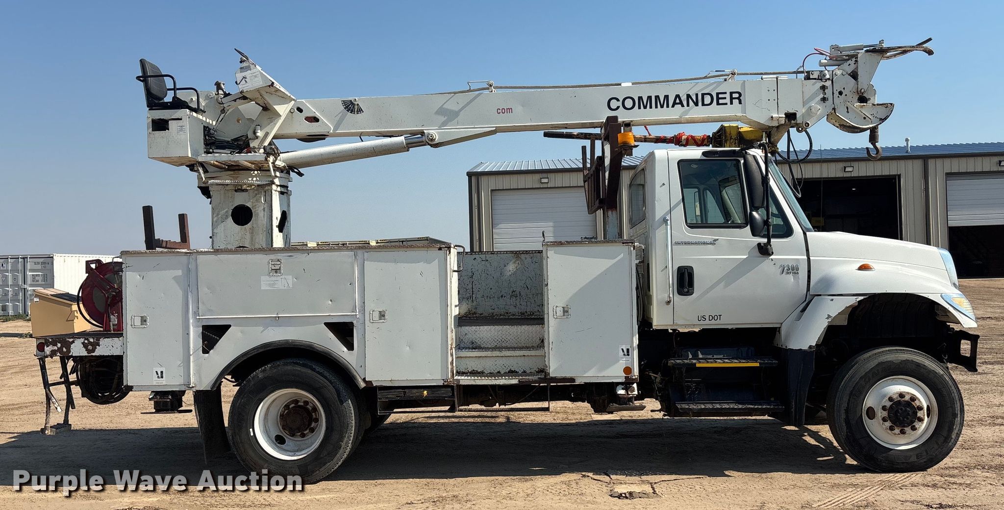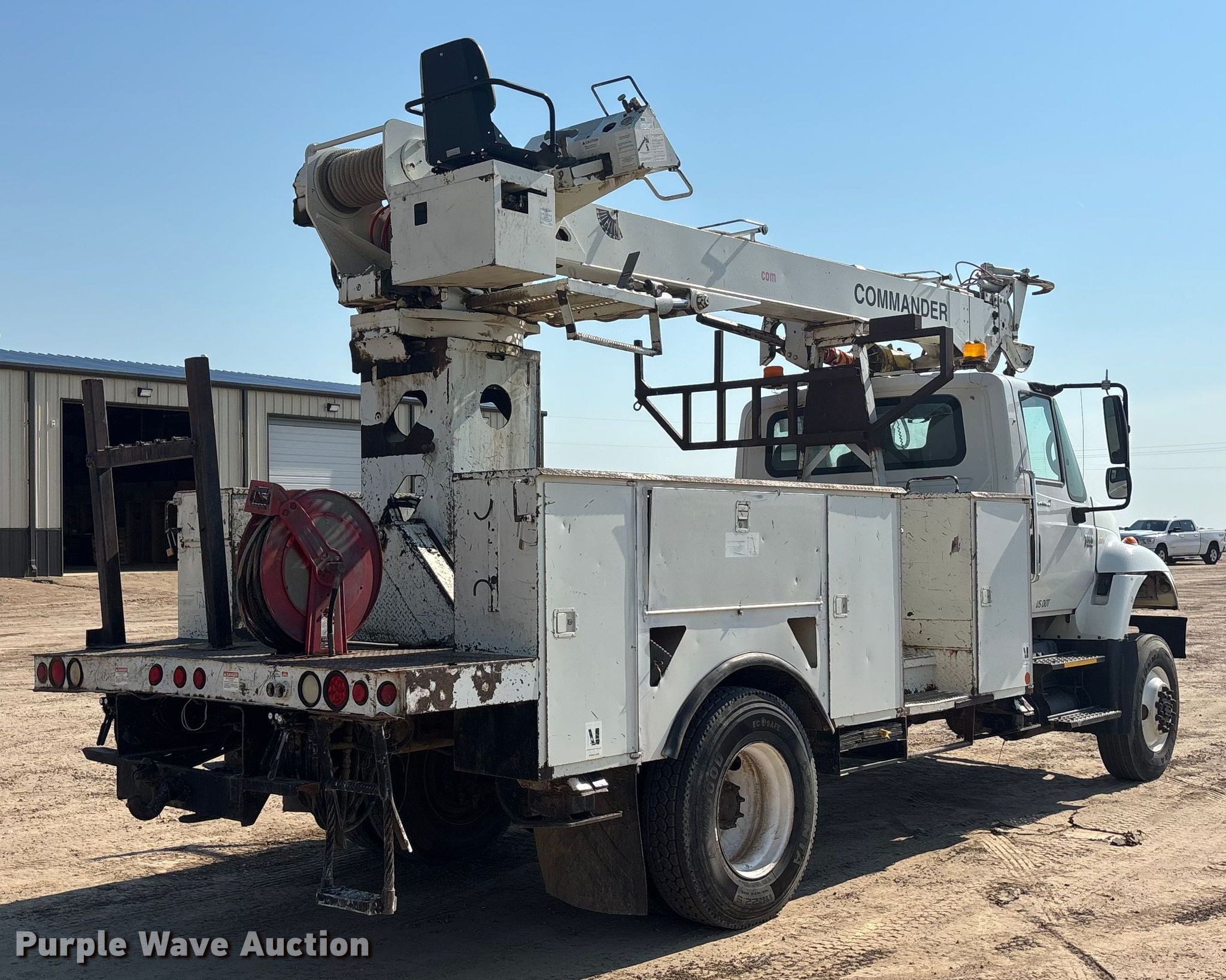 2006 International WorkStar 7300 digger derrick truck. Miles: 125,301 on odometer, Hours: 29,705 on meter, VIN: 1HTWBAAN76J210265. Engine International DT466, Displacement: 7.6L, Cylinders: 6, Fuel type: Diesel. Transmission Eaton Fuller, Manual, Speed: 6. Chassis Four wheel drive, Axles: Single, Suspension: Spring, Brakes: Air, PTO, Wheelbase: 195". Interior AC, Heat, Cruise control, Brake controller. Features Bed Terex Utilities IN10642, Length: 16' 5", Width: 94", Height: 12' 1", Boom 2005 Commander C4047, Serial: 2050426981, Boom length: 34', Maximum lift capacity: 23,680 lbs, Boom type: Insulated, Telescopic, Boom controls Platform/ basket, Material handler, Pole guide. Tires Size: 11R22.5. Colorado title. Title distribution may be delayed up to 14 days from verification of funds. Stampede Services. Wiley, CO 81092