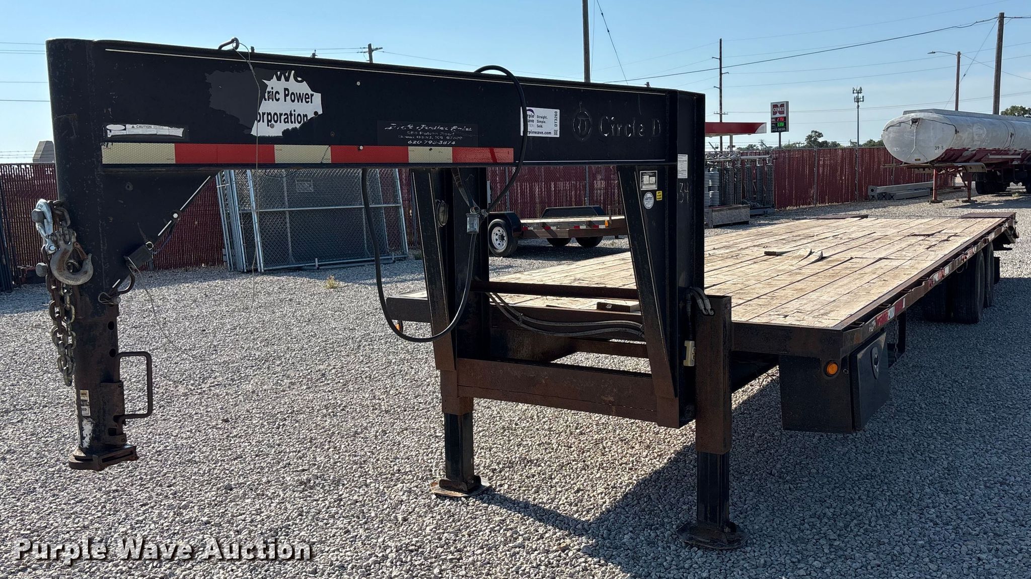 2009 Circle D equipment trailer. VIN: 4D3FG392291013714. Dimensions Overall Length: 42', Deck Length: 33' 3", Top deck length: 28', Ramps: Manual Length: 57". Features Deck type: Wood. Chassis Hitch: Gooseneck, Landing gear: Dual, Suspension: Spring, Brakes: Electric, Axles: Tandem, GVWR: 10,673 lbs. Tires Steel wheels, Size: 235/85R16. Kansas title. Title distribution may be delayed up to 14 days from verification of funds. Sunflower Electric Power Coop. Great Bend, KS 67530