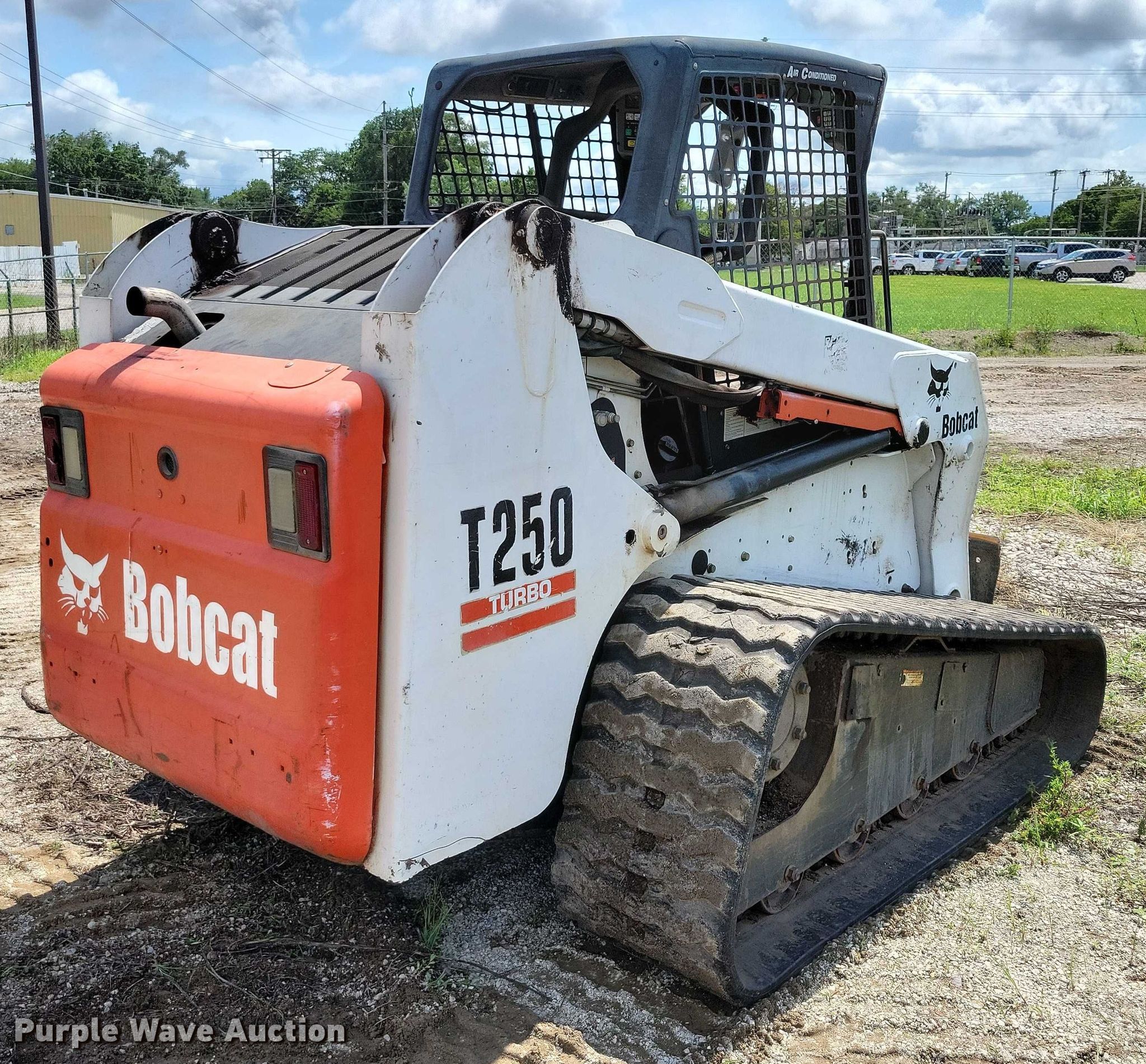 Purple Wave is selling a used Tracked Skid Steer Loader in Iowa. This item is a 2005 Bobcat T250 tracked skid steer loader with the following: Hours: 2,112 on meter, Serial: 525613708