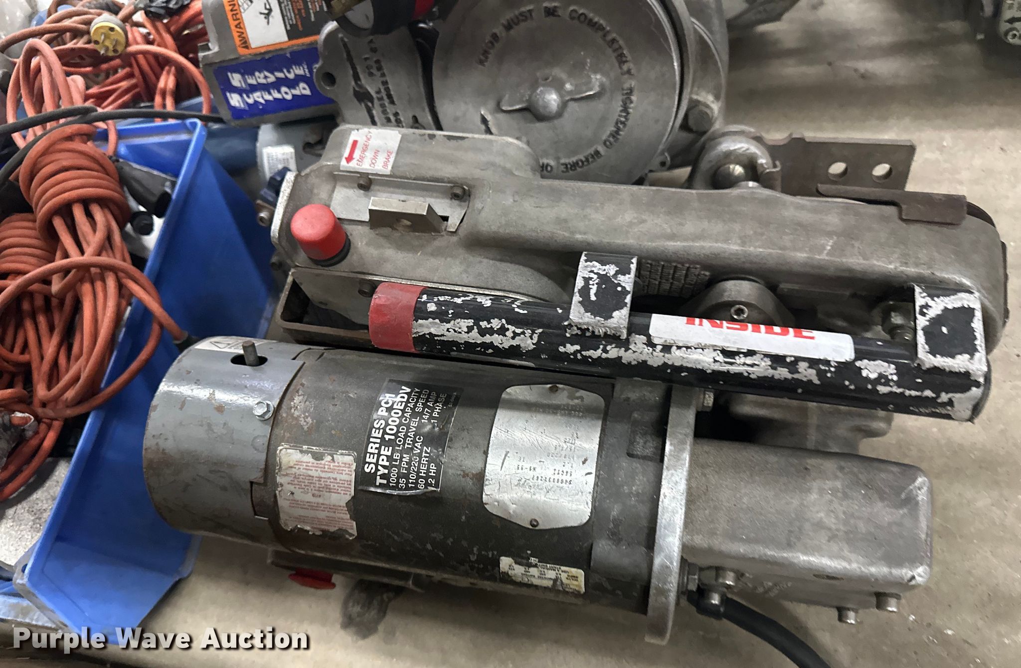 Purple Wave is selling a used Tools in Minnesota. This item is a (5) Power climber PC1 1000EDV scaffold climbers with the following: Baldor electric motor, Volts: 208-240, Phase: Single