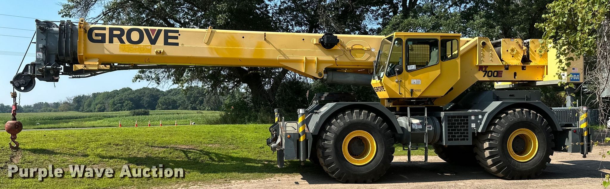 Purple Wave is selling a used Rough or All Terrain Crane in Minnesota. This item is a 2006 Grove RT700E crane with the following: Hours: 8,798 on meter, Serial: 225310