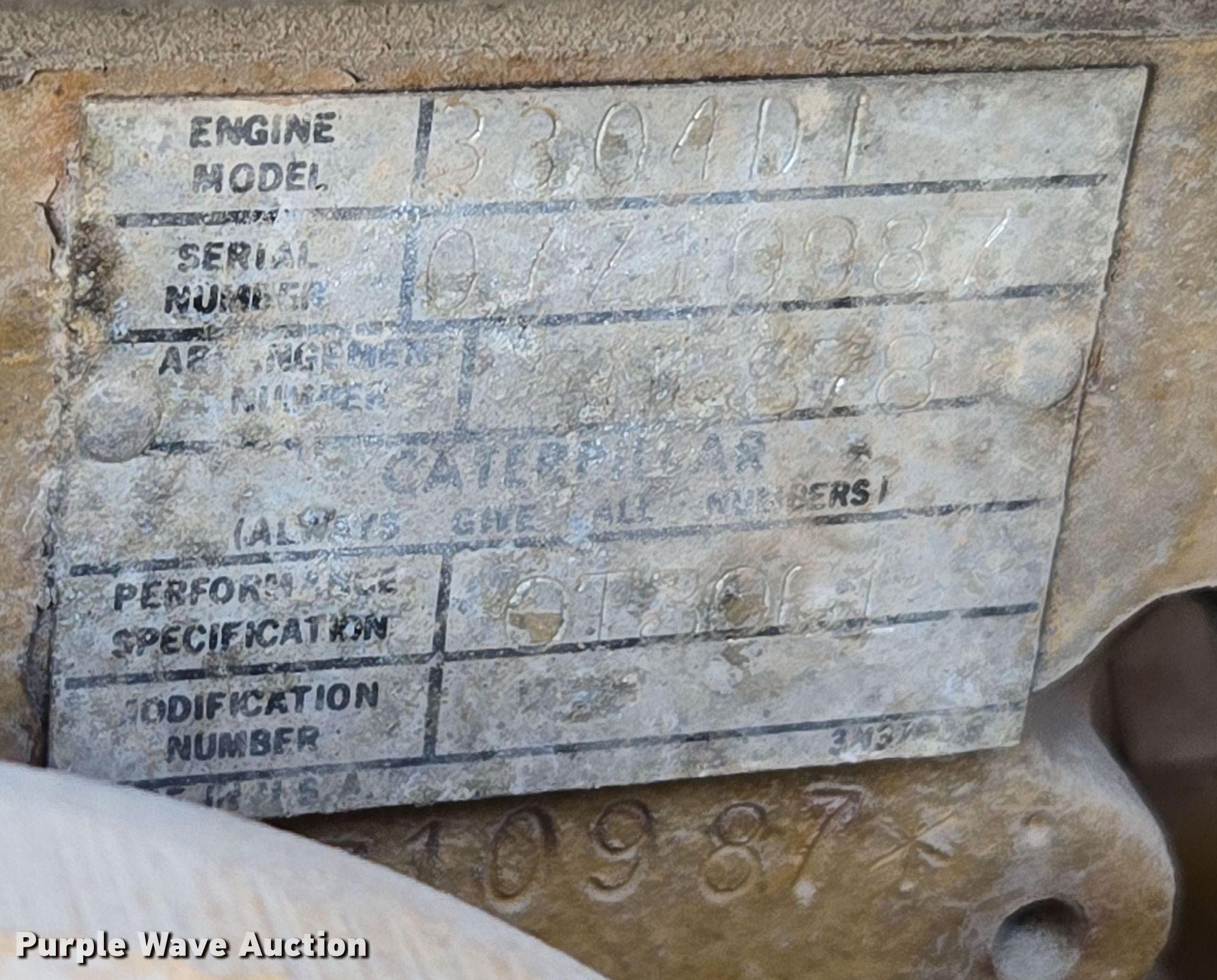 1984 Caterpillar 950B wheel loader. Hours: 9,568 on meter, Serial: 31R02065. Engine Caterpillar 3304D1, Serial: 07710987, Fuel type: Diesel. Transmission Powershift, 4F - 4R. Operators station Enclosed cab, Heat, Bucket controls: Two-lever. Features Auxiliary hydraulics: Front, Quick coupler: Manual, Bucket Width: 110", Cutting edge: Bolt-on, Scale PAT EI 65 P. Tires Size: 20.5R25. Notes Left rear hub oil leak, Glass cracked. T Swanson Construction. Pocatello, ID 83202