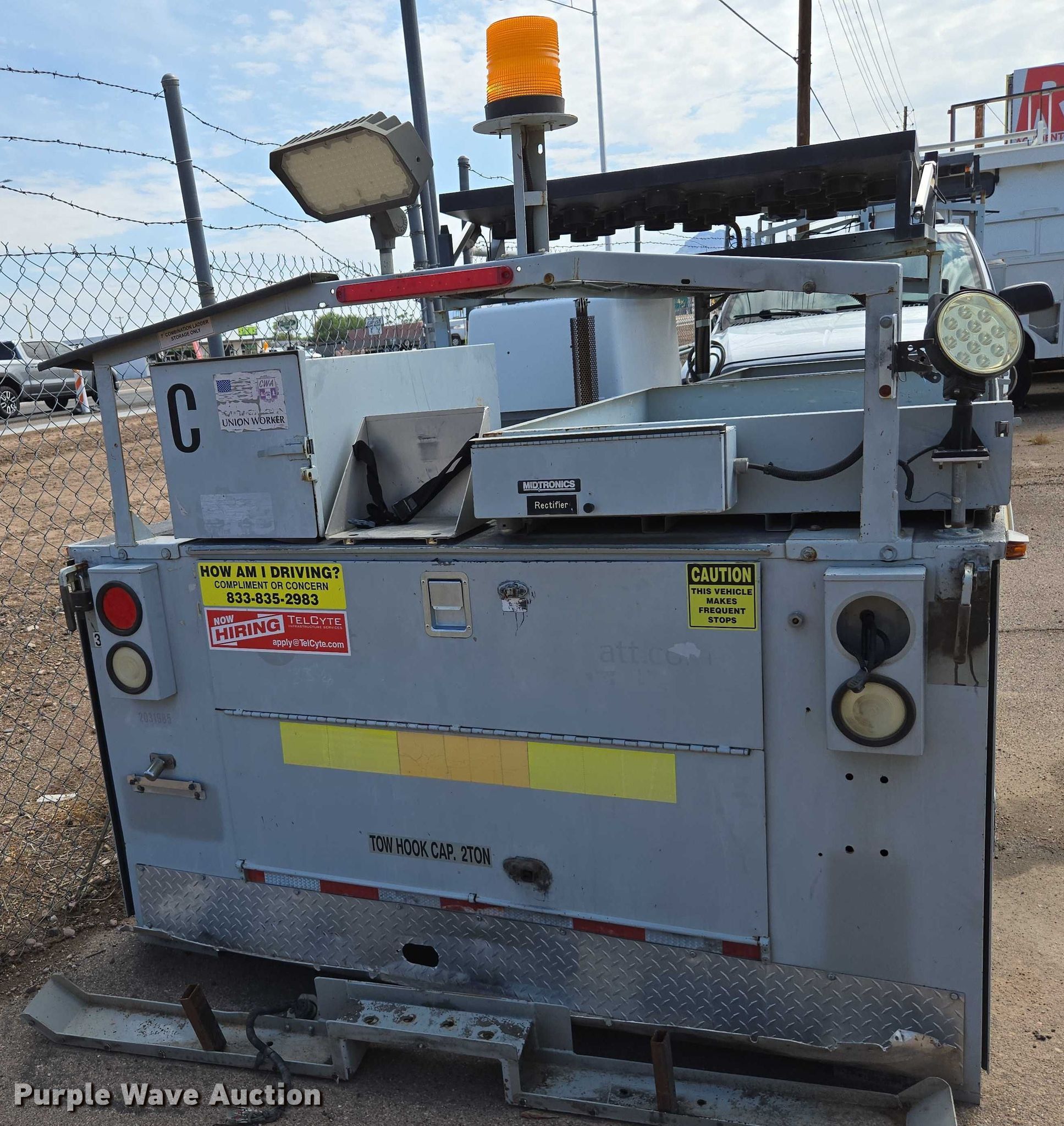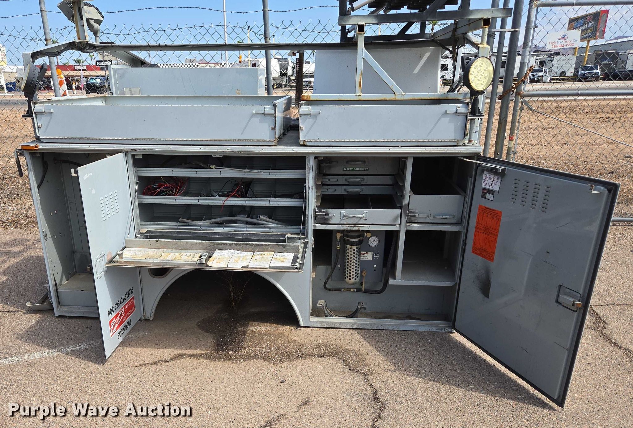 2006 Steelweld pickup truck utility bed. Serial: 2525, Unit #: M3342MVH. Features Bed Utility bed, Length: 8', Width: 80", Height: 74", Side height: 48", Bed type: Steel, Generator Generator Onan, 240V outlets: 1, 120V outlets: 4, Arrow board. Apache Junction, AZ 85120
