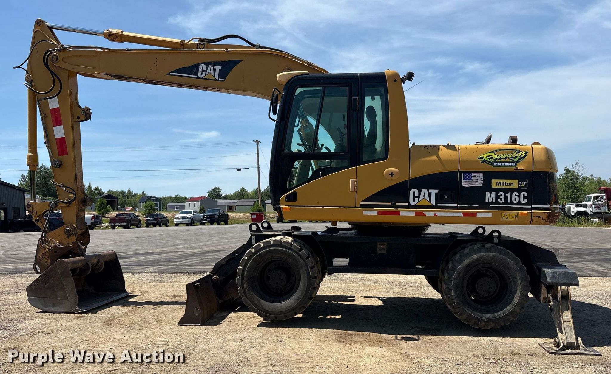 Purple Wave is selling a used Wheeled Excavator in Maine. This item is a 2004 Caterpillar M316C wheeled excavator with the following: Hours: 6,076 on meter, Serial: CATM316CLBDX00717