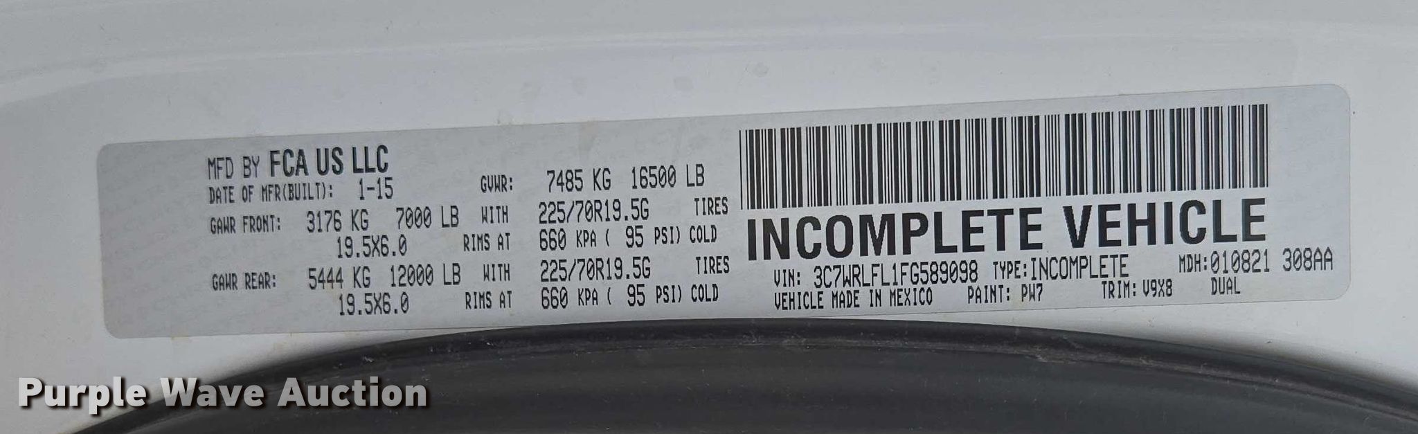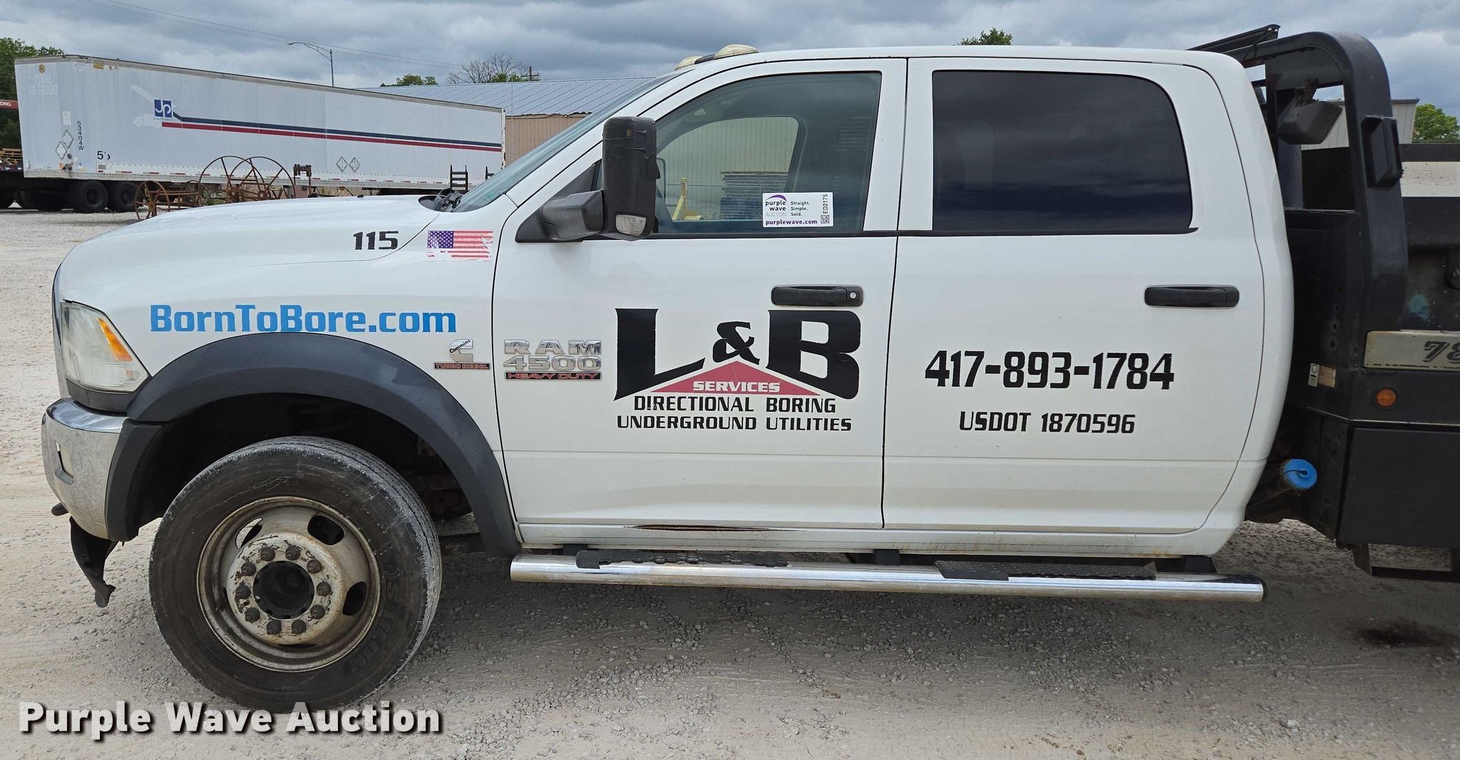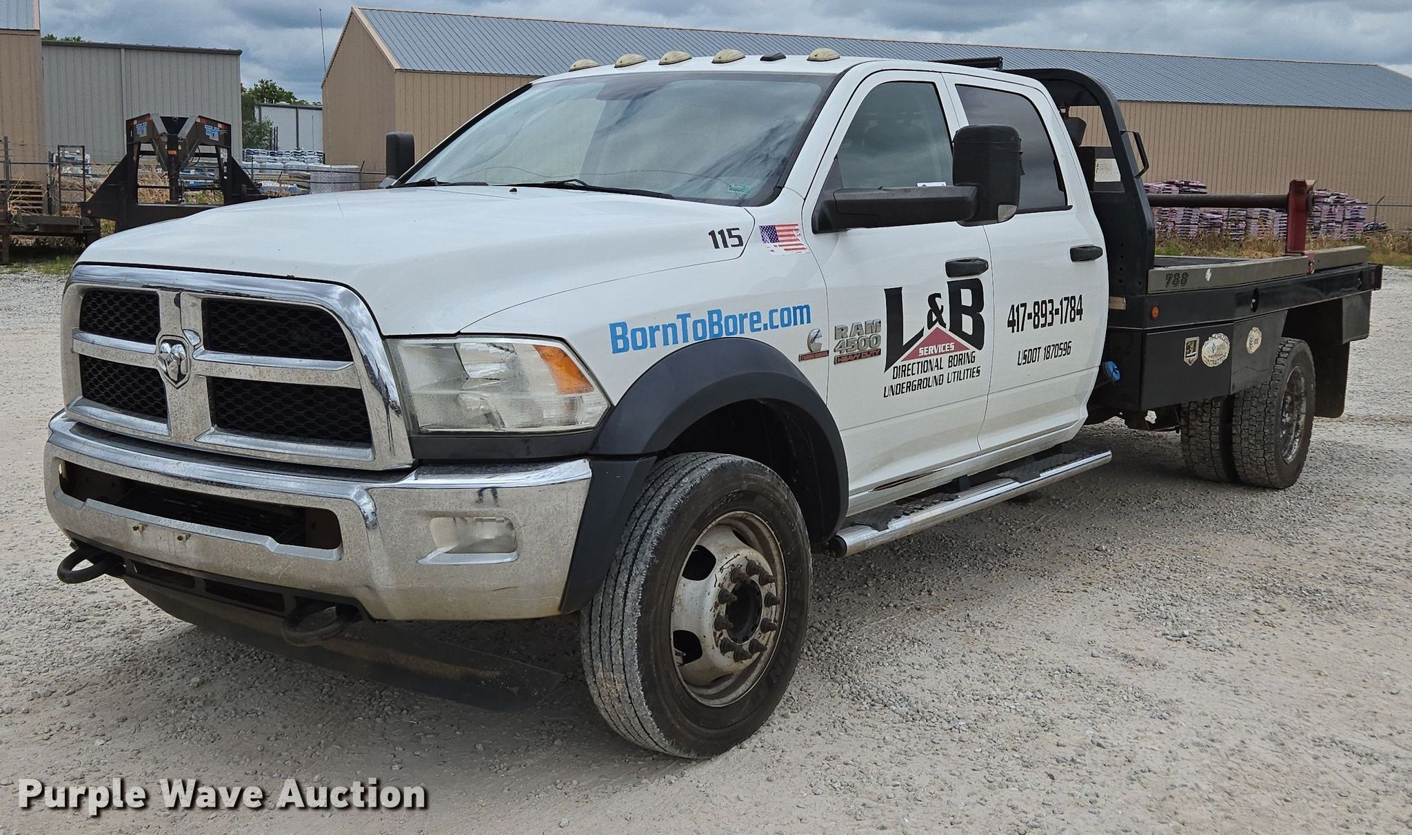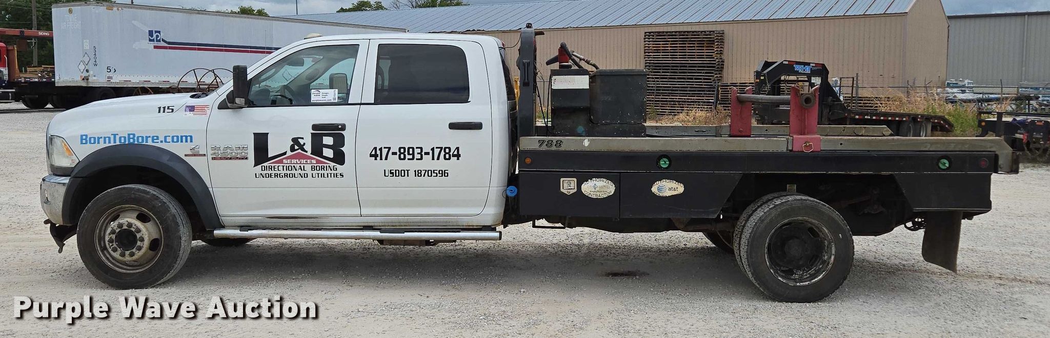 Purple Wave is selling a used Flat Bed Truck in Missouri. This item is a 2015 Dodge Ram 4500 Crew Cab flatbed truck with the following: Miles: 141,766 on odometer, Miles or hours may vary, unit still in use, VIN: 3C7WRLFL1FG589098, Unit #: 115