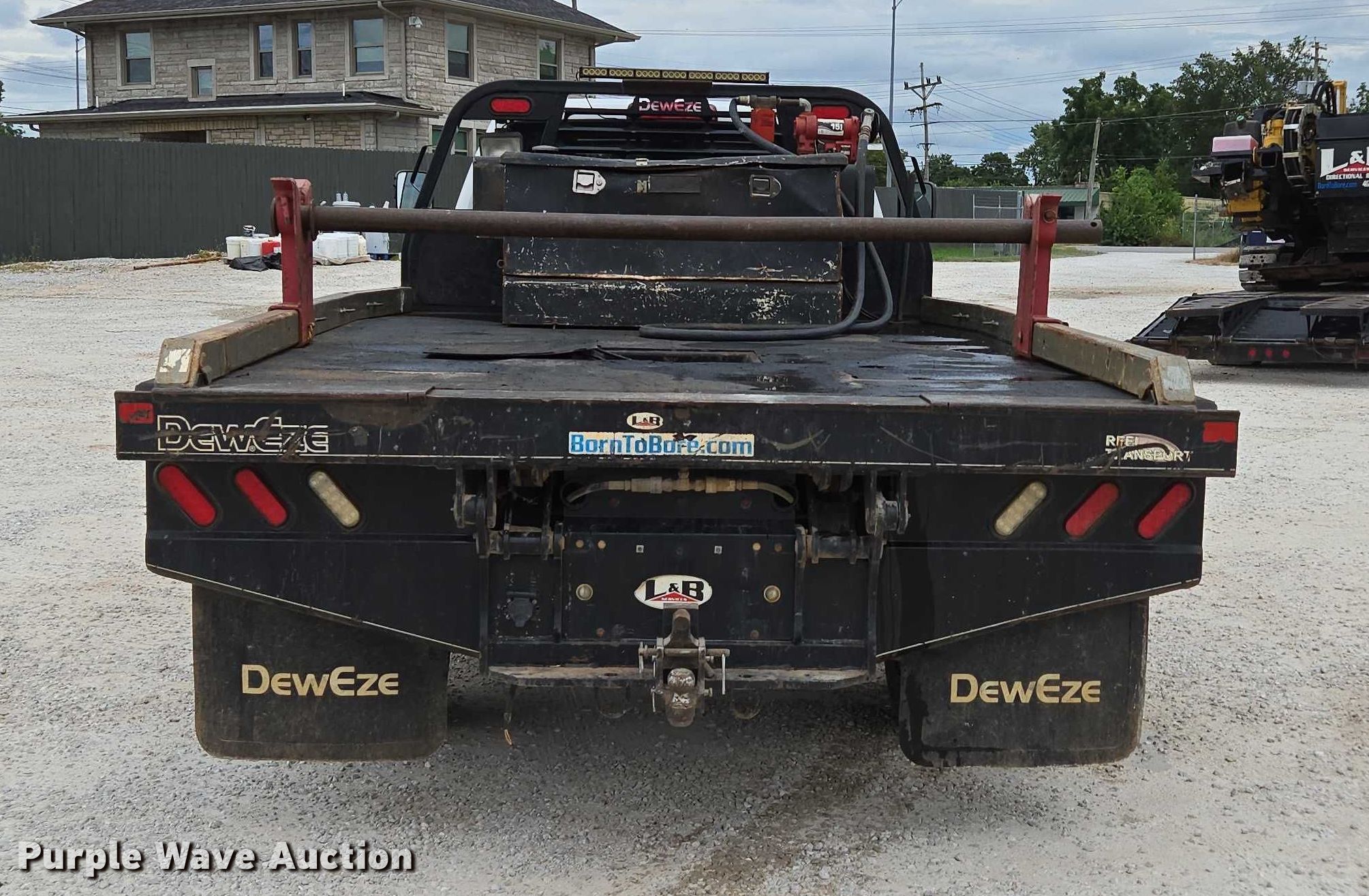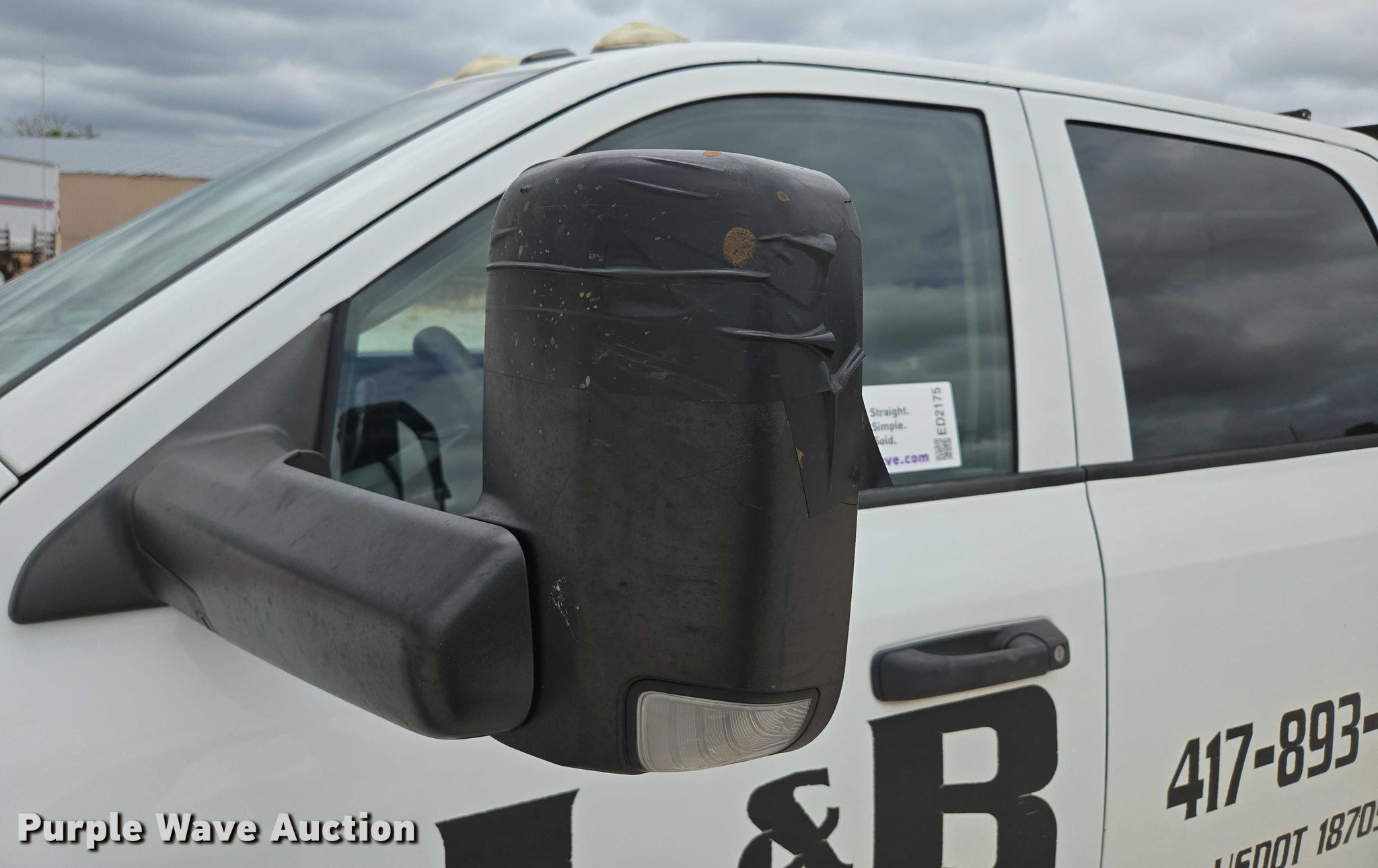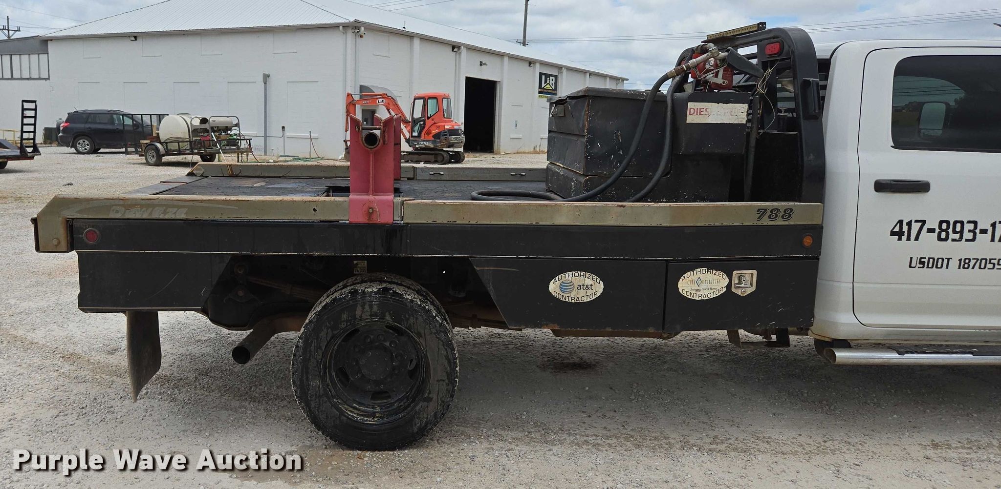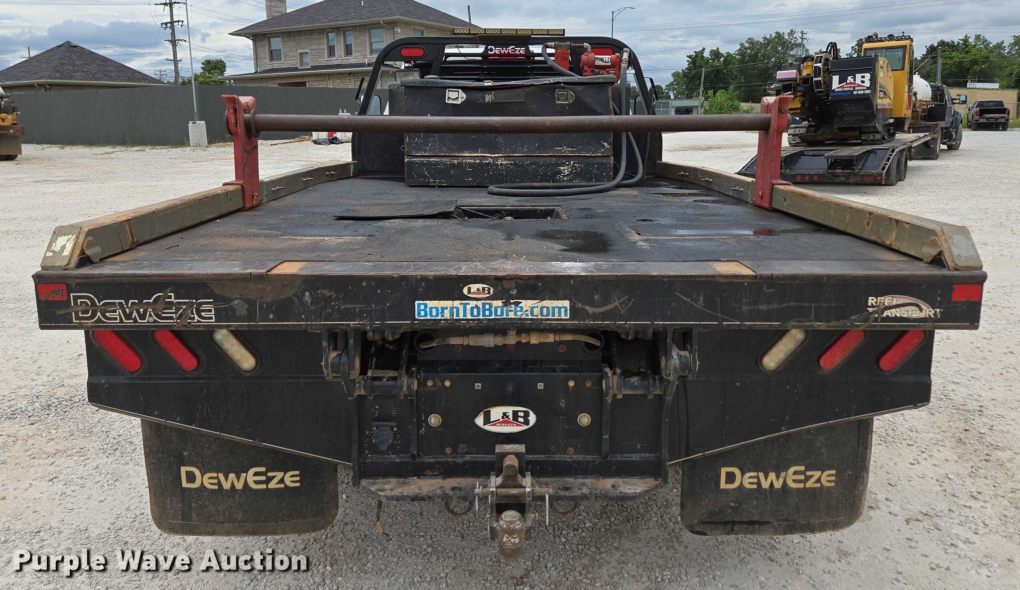 2015 Dodge Ram 4500 Crew Cab flatbed truck. Miles: 141,766 on odometer, Miles or hours may vary, unit still in use, VIN: 3C7WRLFL1FG589098, Unit #: 115. Engine Cummins, Displacement: 6.7L OHV, Cylinders: 6, Fuel type: Diesel. Transmission Automatic. Chassis Four wheel drive, Axles: Single, Suspension: Spring, Brakes: Hydraulic, GVWR: 16,500 lbs. Interior AC, Heat, Heated mirrors, Power windows, Power locks, Cruise control, Auxiliary controls, Brake controller. Features Bed Hydraulic reel transport bed, DewEze 788 R/T Flatbed, Serial: FB788R/T 15A09, Length: 12', Width: 97", Auxiliary fuel tank. Tires Size: 225/70R19.5. Notes DEF deleted, DPF deleted, EGR deleted, Windshield chipped or cracked, Hail damage. Missouri title. Title distribution may be delayed up to 14 days from verification of funds. L&B Services LLC. Springfield, MO 65802