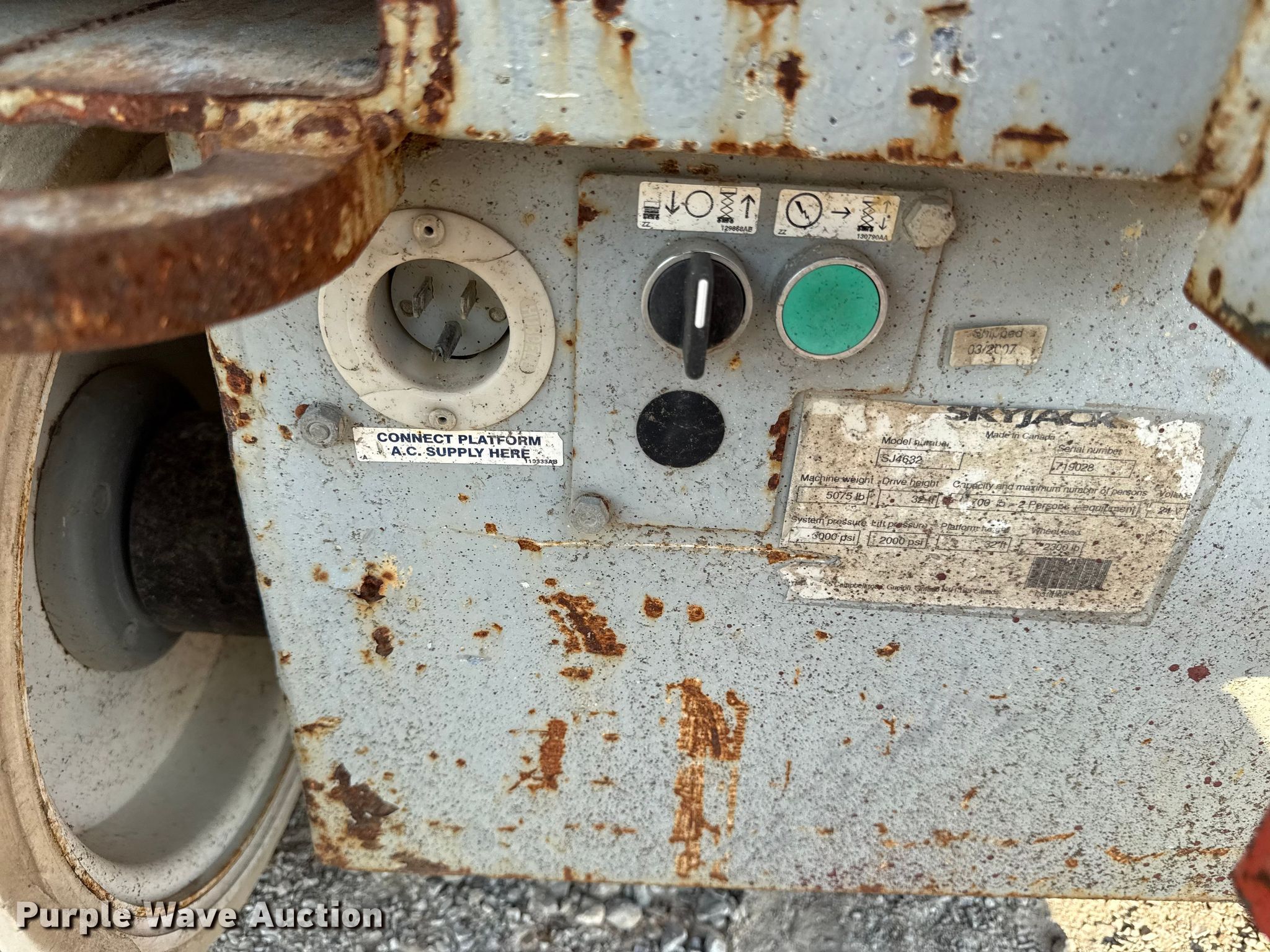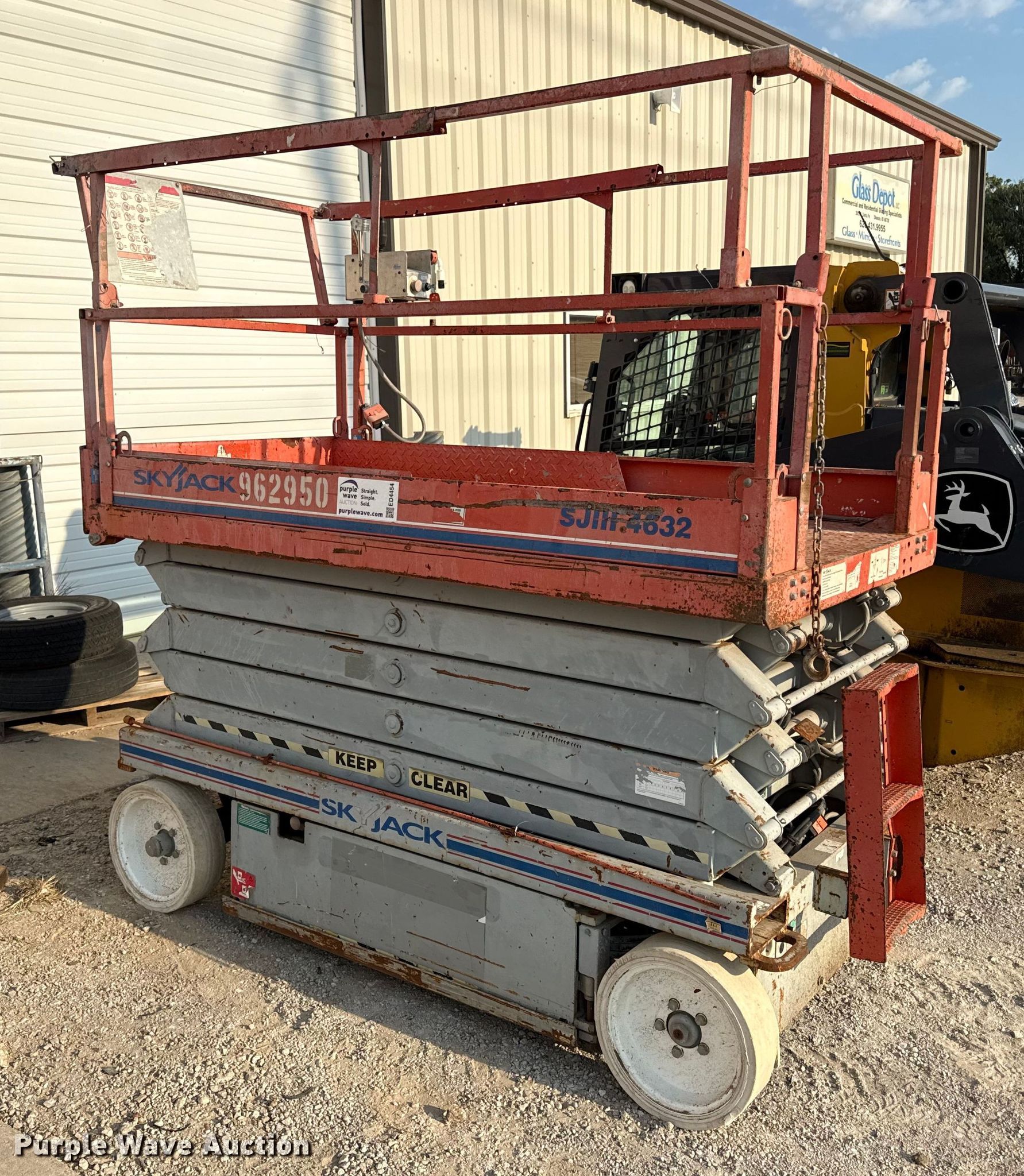 Purple Wave is selling a used Scissor or Vertical Lift in Kansas. This item is a Skyjack SJIII 4632 scissor lift with the following: Hours: 448 on meter, Serial: 719028