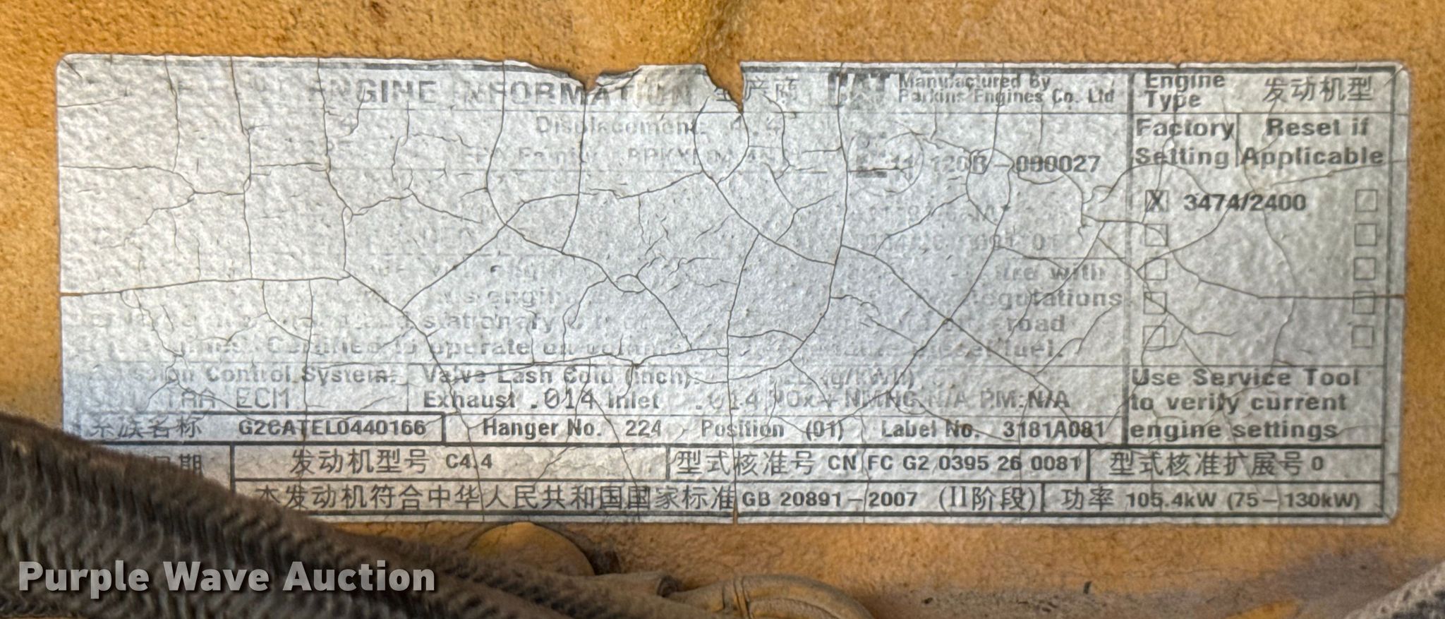 2011 Caterpillar TL1255 telehandler. Hours: 8,773 on meter, Serial: TBN00889, Unit #: 29052. Engine Caterpillar C4.4 Acert, Serial: 44412122, Displacement: 4.4L, Cylinders: 4, Fuel type: Diesel. Transmission Powershift, 4F - 4R, Four wheel drive. Operators station OROPS, Steering: Crab, Four wheel. Features Maximum lift capacity: 12,000 lbs, Maximum lift height: 55', Boom stages: 4, Fork length: 60", Auxiliary hydraulics, Hydraulic outriggers, Hydraulic leveling, Quick attach: Manual. Tires Front: 14.00-24, Solid. Notes Glass missing, Door missing, Jump start required during on-site data collection. Pulice Construction. Pflugerville, TX 78660