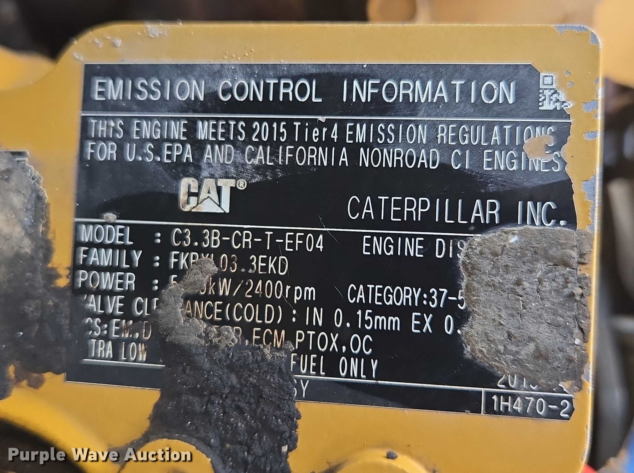 2015 Caterpillar 262D skid steer loader. Hours: 7,205 on meter, Serial: CAT0262DJDTB03599. Engine Caterpillar C3.3B, Displacement: 3.3L, Cylinders: 4, Fuel type: Diesel. Transmission Hydrostatic, Two speed travel. Operators station Enclosed cab, AC, Heat, Bucket control: Hand, Electronic Monitoring System panel. Features Auxiliary hydraulics, Auxiliary electrical outlet, Quick coupler: Hydraulic, Counter weights, Bucket Caterpillar, Width: 86.5", Cutting edge: Bolt-on. Tires Size: 12x16.5. Notes Warning indicator: After treatment regeneration frequency high, DPF system issues. Saint Joseph, MO 64507