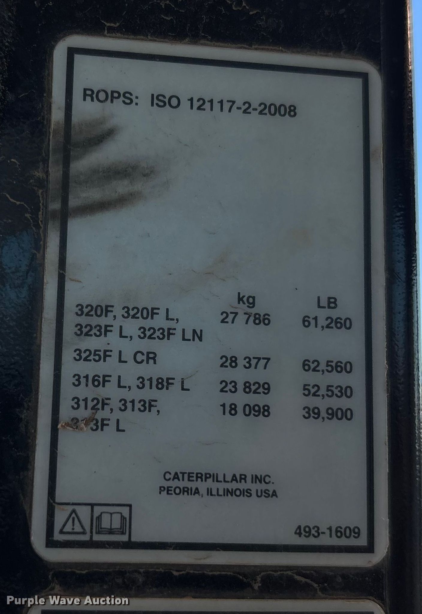 2018 Caterpillar 325FLCR excavator. Hours: 6,210 on meter, Serial: CAT0325FVXAA10460. Engine Caterpillar C4.4, Displacement: 4.4L, Cylinders: 4, Fuel type: Diesel. Transmission Hydrostatic, Two speed travel. Operators station Enclosed cab, AC, Heat, Backup camera. Features Standard, Counter weights, Boom Standard, Stick Stick length: 9' 7", Quick coupler: Hydraulic, Bucket Width: 34", Teeth: 5. Tracks Width: 31", Steel, Grouser pads: Triple. Notes Glass cracked. Marrs Construction Inventory Reduction - Open Inspection September 5, 2025. Phoenix, AZ 85085