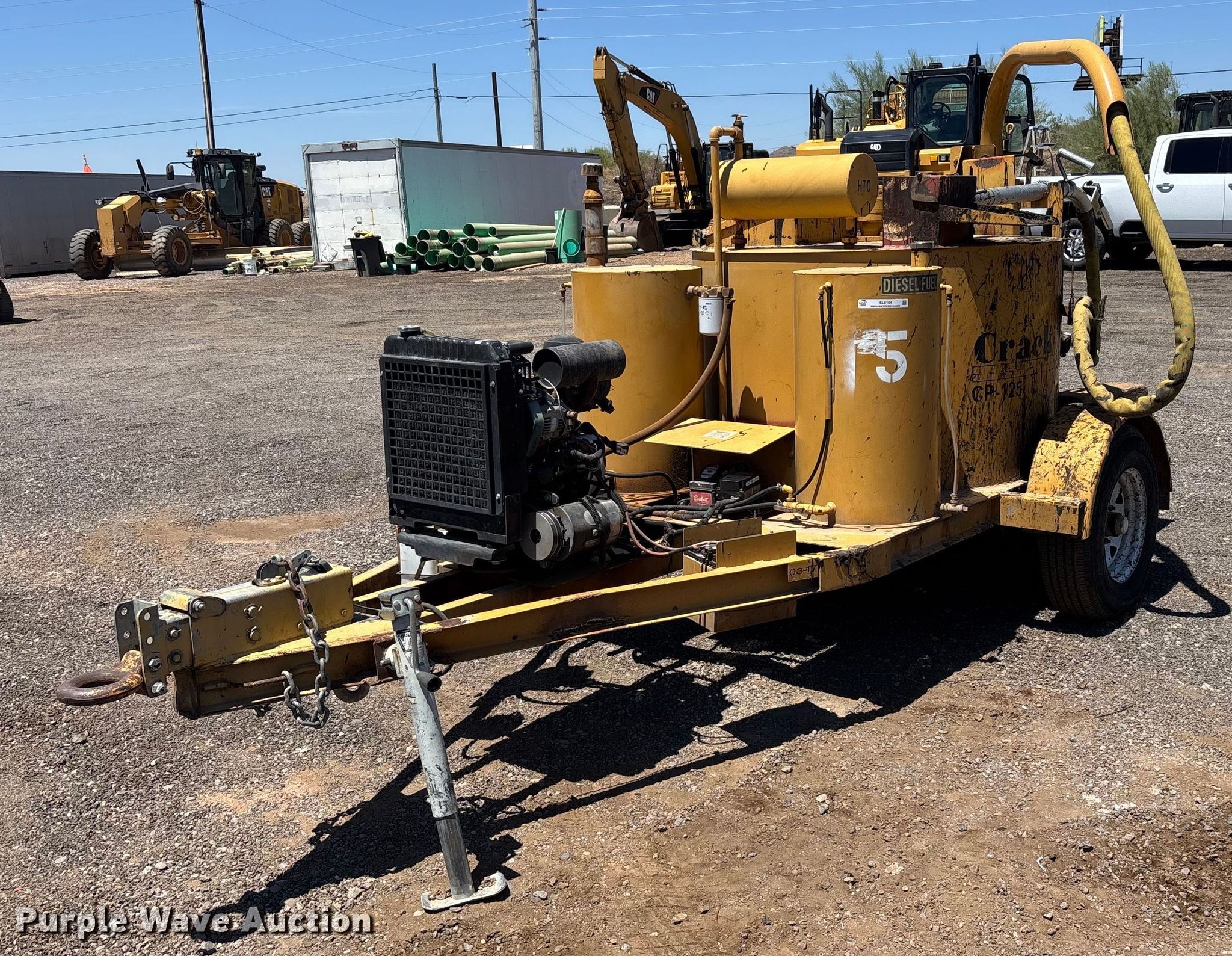 2017 Crack Pro CP-125 crack sealer. Hours: 2,076 on meter, VIN: 1S9P11514H0420334. Engine Cylinders: 2, Fuel type: Diesel. Features Trailer Hitch: Pintle, Landing gear: Single. Tires Size: 225/75R15. This is worksite support equipment and will not come with a title. Transfer of ownership documentation will be a bill of sale. Specialized Transport Services, LLC Inventory Reduction - Open Inspection September 5, 2025. Phoenix, AZ 85085