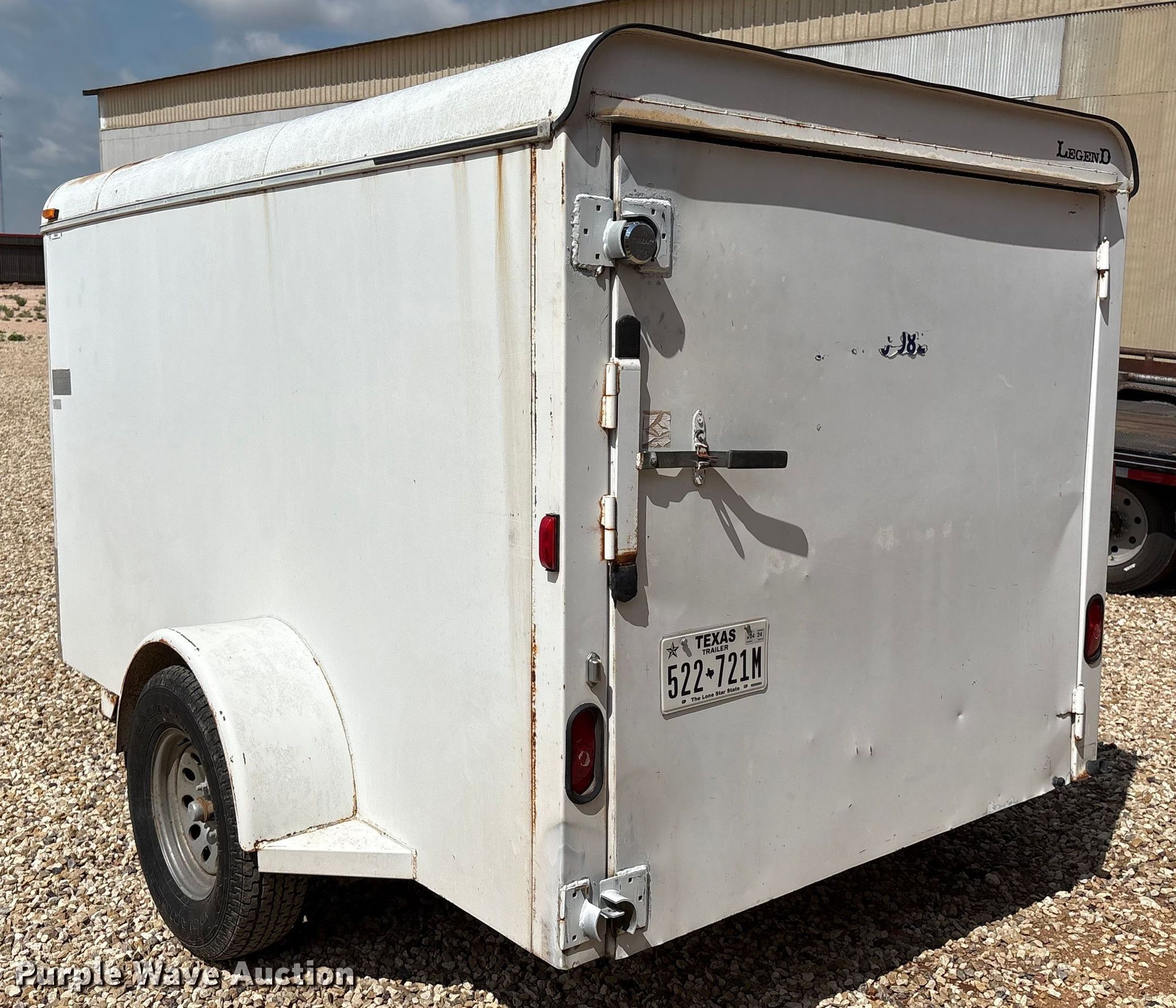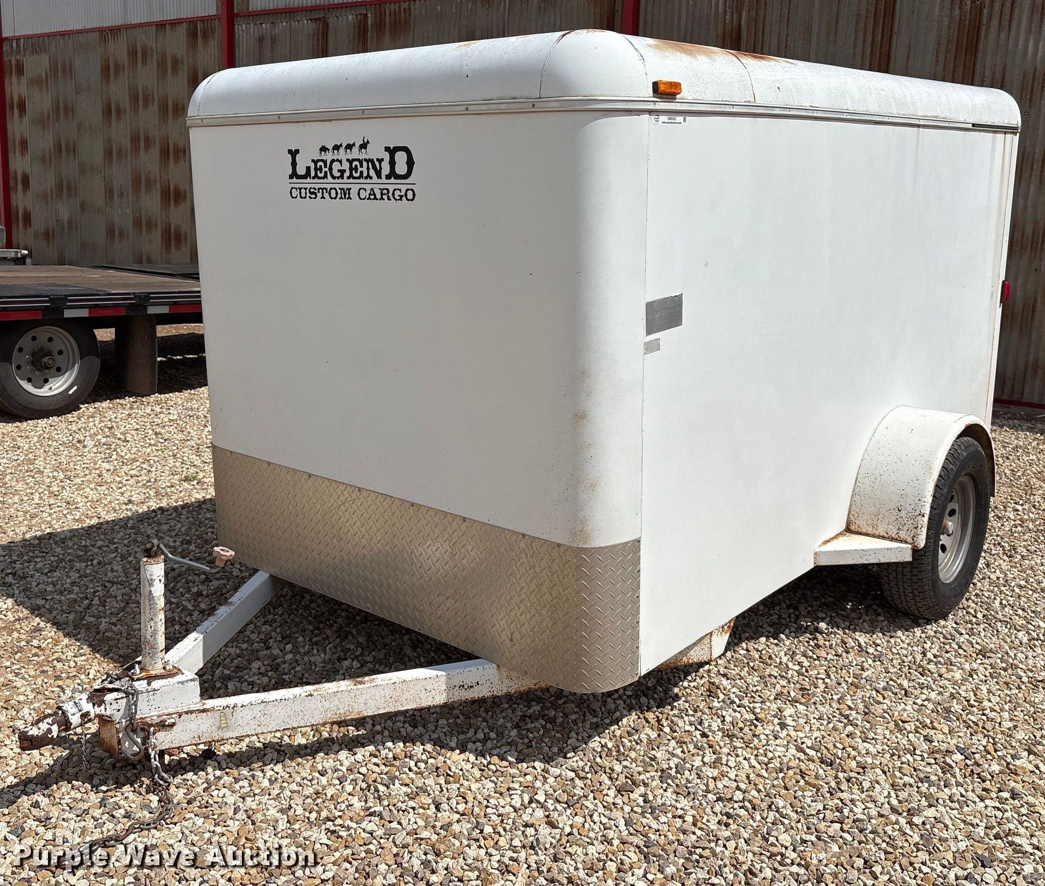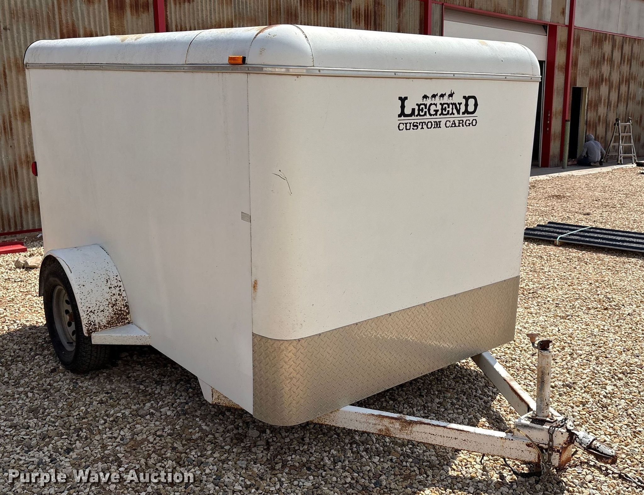 2002 Legend enclosed cargo trailer. VIN: 1L9RC10172W243568. Dimensions Overall Length: 9', Width: 7', Body Length: 6', Width: 5'. Features Deck type: Wood. Chassis Ball hitch: 2", Landing gear: Single, Suspension: Spring, GVWR: 2,900 lbs. Tires Steel wheels, Size: 235/75R15. Texas title. Title distribution may be delayed up to 30 days from verification of funds. Hargrave Manufacturing. Slaton, TX 79364