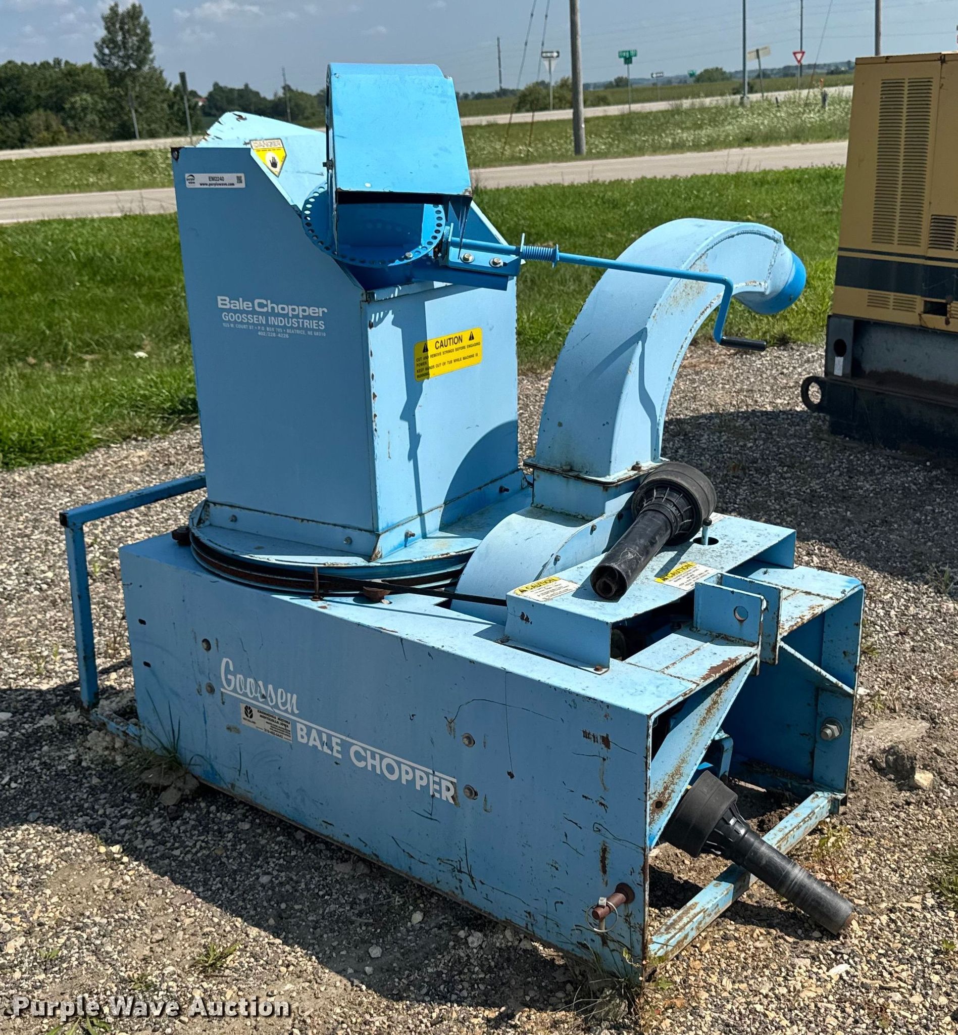 Purple Wave is selling a used Ag Equip. Other in Iowa. This item is a Goossen bale chopper with the following: PTO: 540, Hitch: Three point