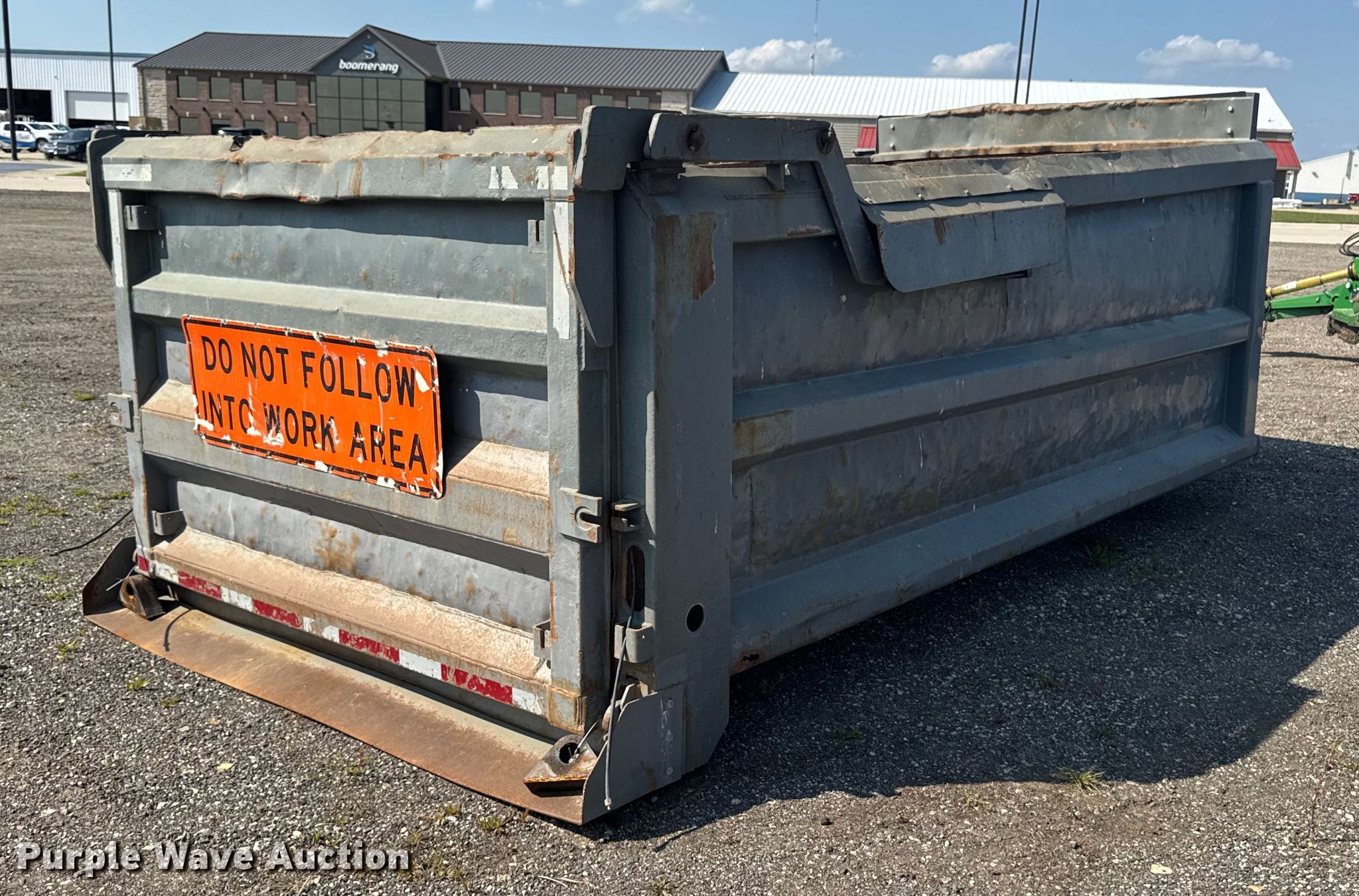 Dump bed. Dimensions: 15' x 96" x 58", Hydraulics missing. Boomerang Corp. Anamosa, IA 52205