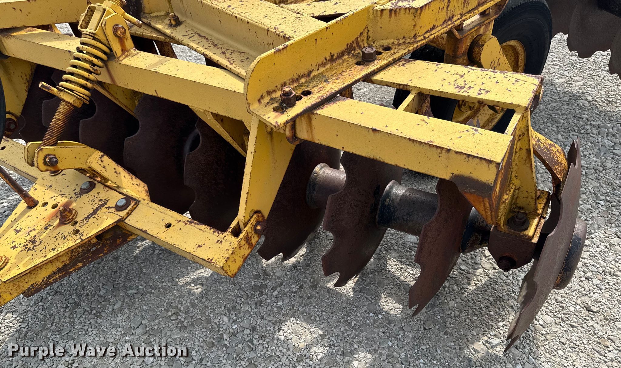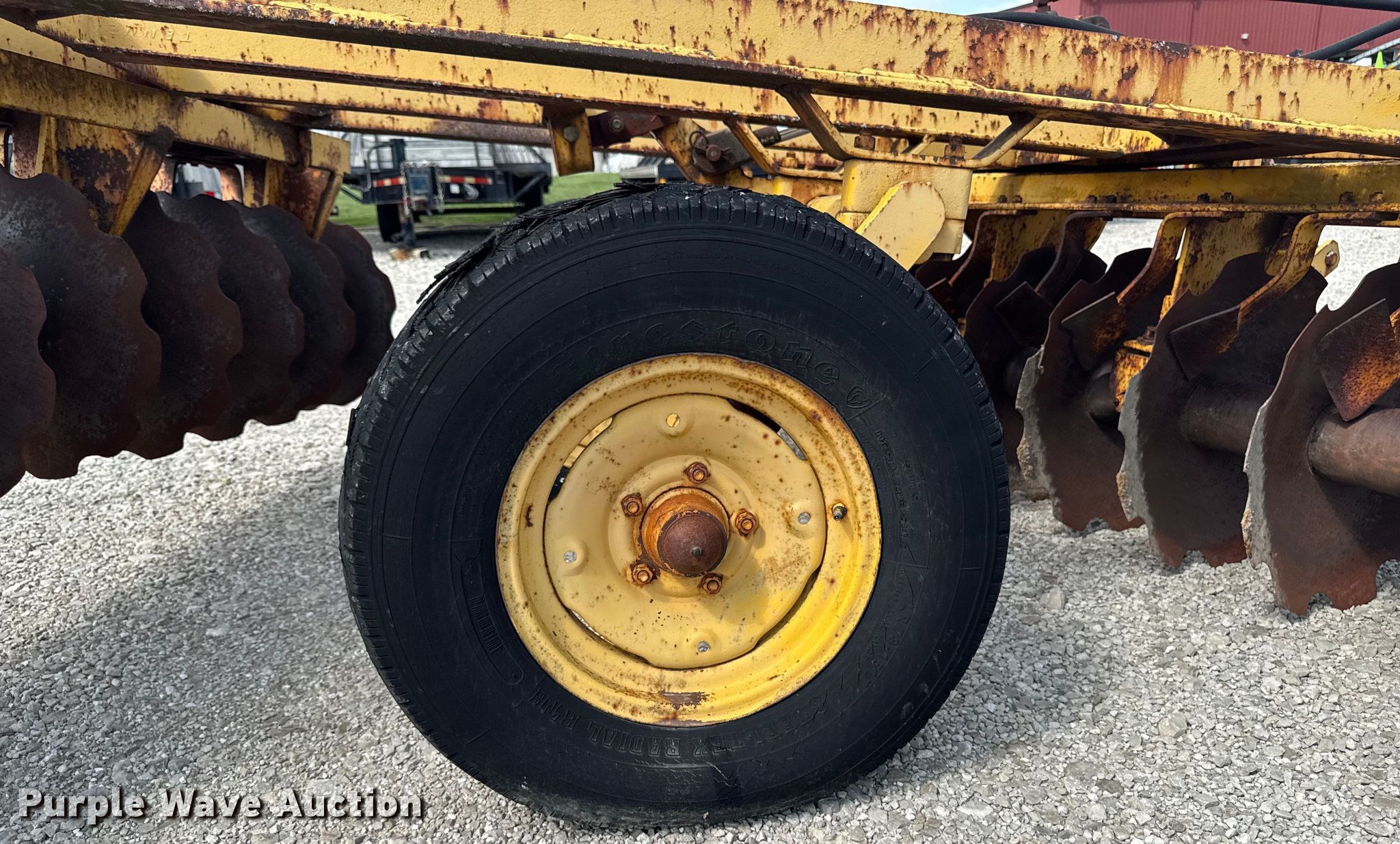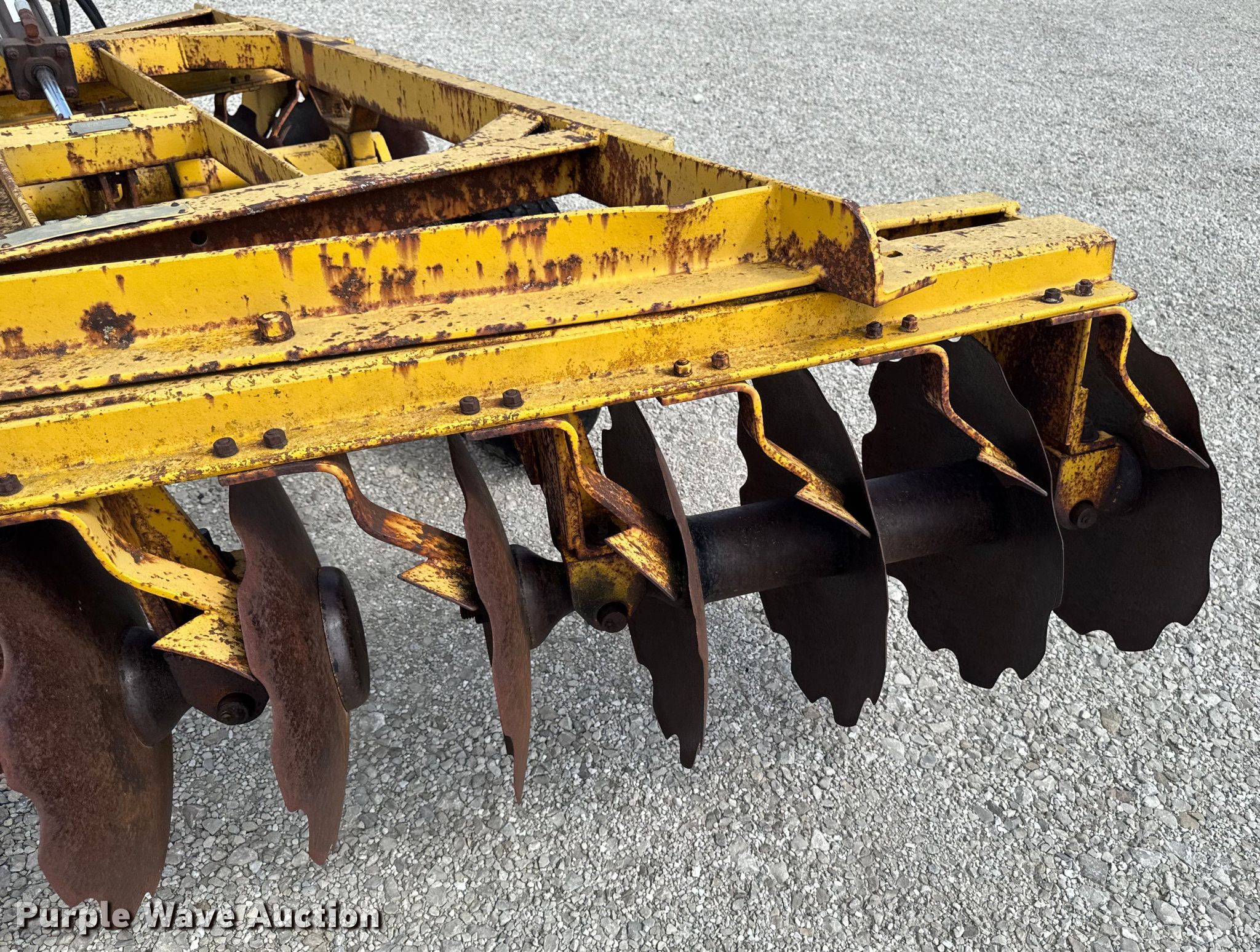 AMCO 2022-BG off-set disk. Overall width: 7', Serial: 807. Features Front blades Diameter: 22", Spacing: 10", Rear blades Diameter: 20", Spacing: 10", Disk scrapers, Operation Hydraulic lift, Leveler: Manual. Tires Tire size: LR78-15LT. Pella Concrete Contractors Inc. Pella, IA 50219